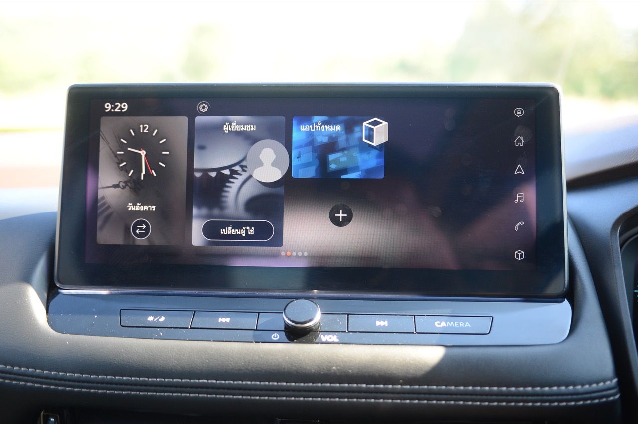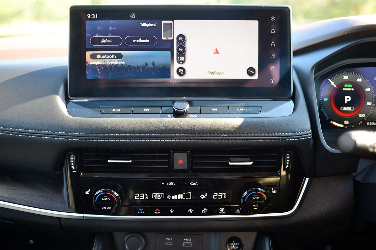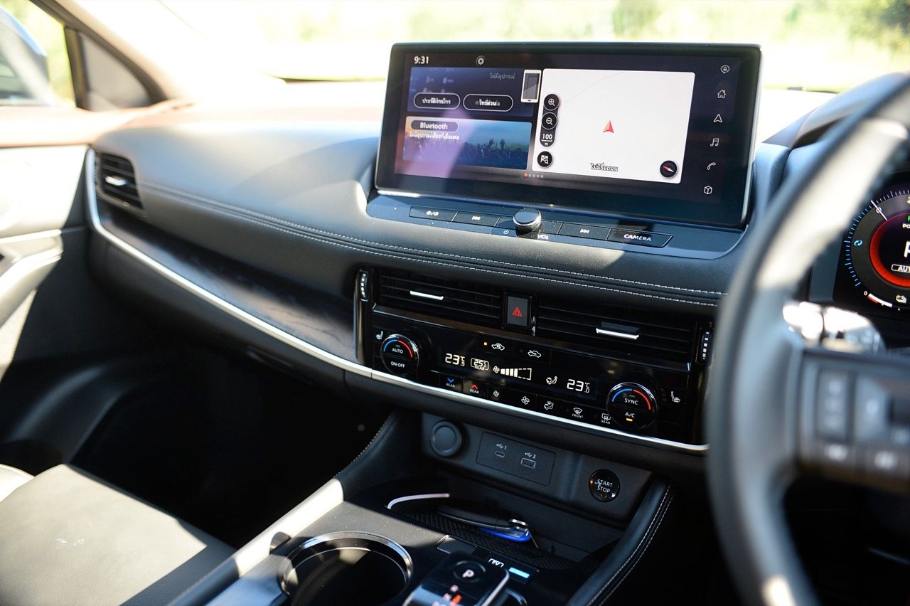 คุณภาพของหน้าจอ ความคมชัดของจอภาพยังคงเป็นรองรถยนต์ไฟฟ้าบางรุ่นของจีน จอภาพของ X-Trail ไม่คมหรือสดใสเท่ารถคู่แข่ง ในระดับราคาเดียวกัน แต่ New X-Trail มีพื้นที่เก็บของเพียบ เบาะหลังที่ปรับเปลี่ยนการพับได้ ทั้งเลื่อนและปรับเอน เมื่อเลือกใช้แบบ 6 ที่นั่ง นอกจากนี้ยังมีระบบพับเบาะแบบ 40/20/40 ที่ใช้งานได้สะดวก ทำให้การขนขอชิ้นยาวๆ เป็นเรื่องง่าย เบาะแถวสามมีพื้นที่วางขาไม่มากนัก เหมาะกับเด็ก หรือหมาแมวมากกว่าจะให้คนตัวสูงๆ ลงไปนั่ง