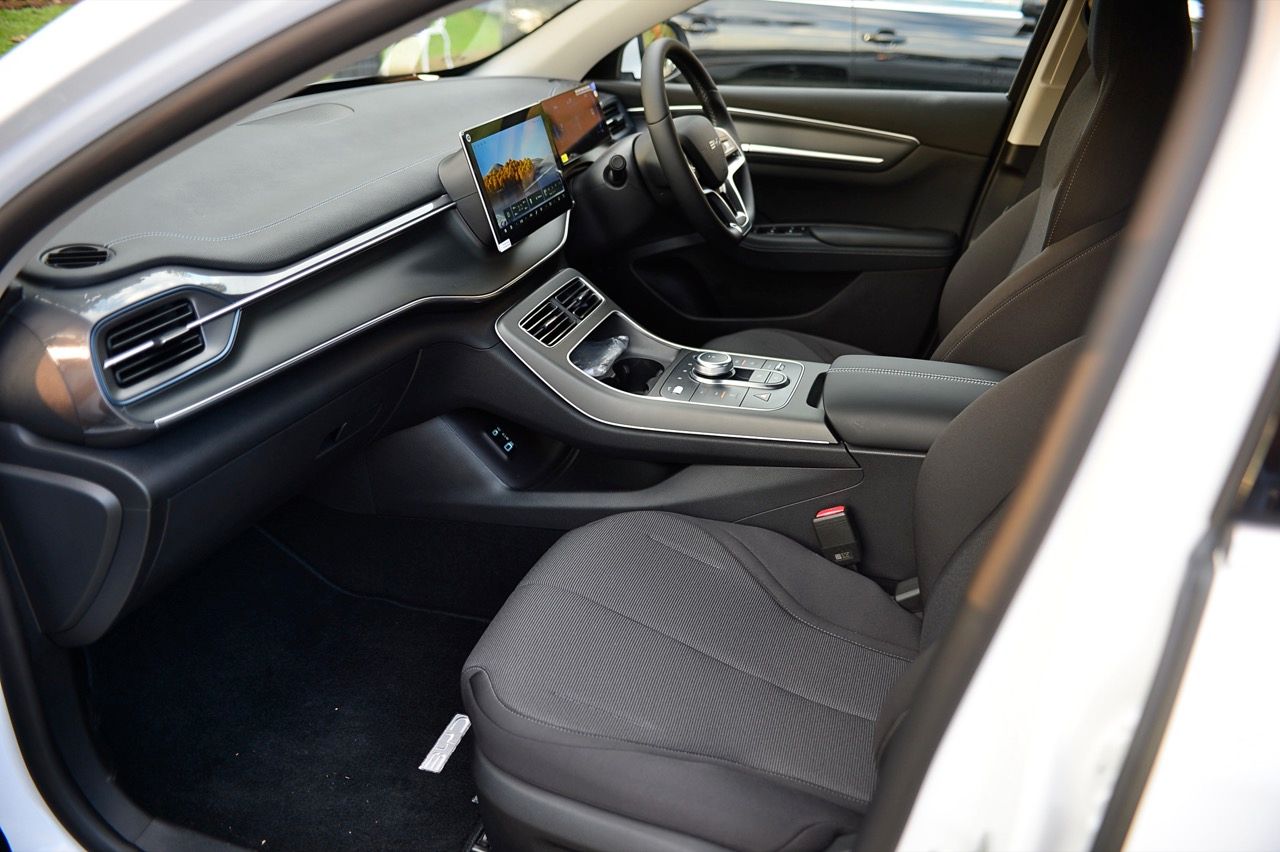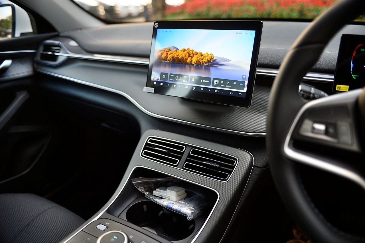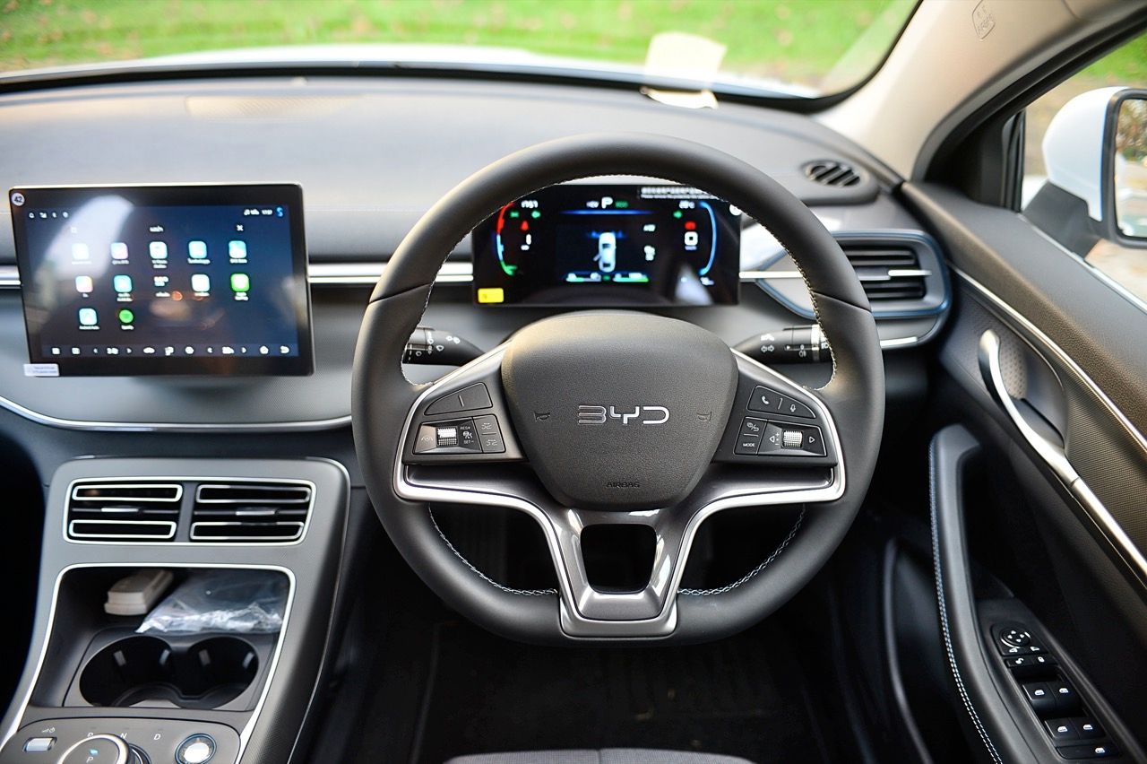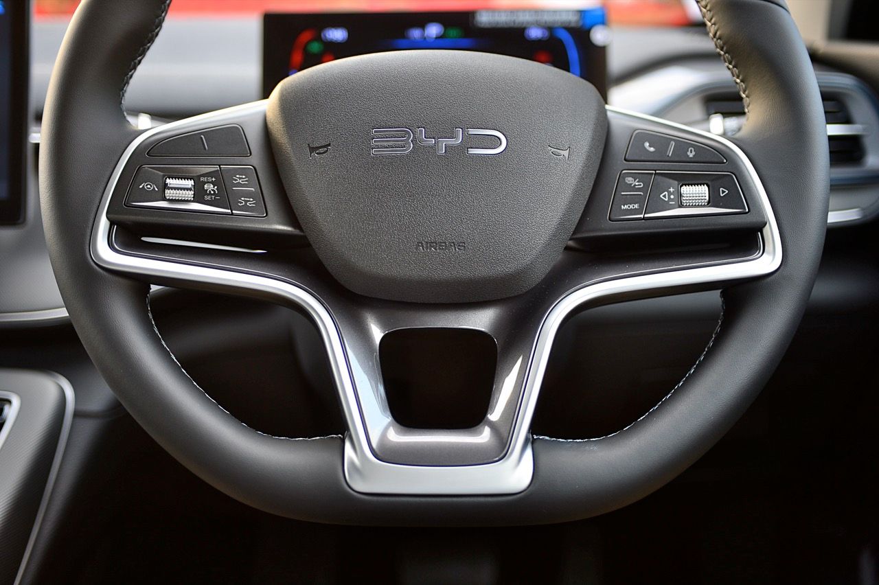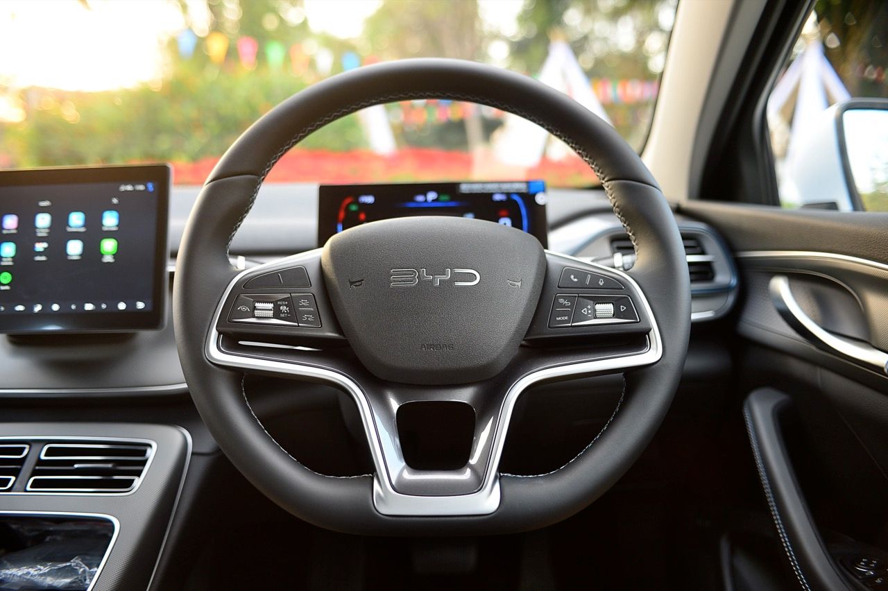 เบาะปรับมือของฝั่งคนขับปรับ 6 ทิศทาง ส่วนเบาะคนนั่งหน้าปรับมือเช่นเดียวกันแต่เป็นแบบสี่ทิศทางยกสูงไม่ได้ แดชบอร์ด คอนโซล ดูแล้ว BYD ใช้วัสดุที่เหนือกว่ารถคู่แข่งในบางจุด จอภาพ 10 นิ้วระบบสัมผัส เชื่อมต่อมือถือเร็ว เชื่อมแล้ว ตลอดเส้นทางการทดสอบ 2 วัน จากเชียงราย มายังกรุงเทพมหานคร ไม่มีปัญหาหลุดต้องเชื่อมต่อใหม่ หรือหน่วงจนชักช้าน่ารำคาญ เมื่อขึ้นรถ ระบบอินโฟรเทนเมนท์หลังการสตาร์ทจะใช้เวลาในการเชื่อมกับโทรศัพท์มือถือที่ต่อเอาไว้แล้วประมาณ 30 วินาที หรือนานกว่านั้นเล็กน้อย จอภาพระบบสัมผัส มีระบบควบคุมอุณหภูมิในห้องโดยสารอยู่ในนั้น รวมถึงการตั้งค่าต่างๆสำหรับการใช้งาน ทั้งหมด ออกแบบฟังก์ชันและเมนูให้ง่ายต่อการหา เข้าและออกได้อย่างรวดเร็วแทบจะไม่มีอาการหน่วงของจอภาพ