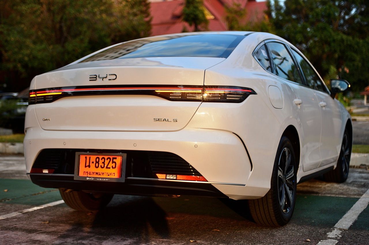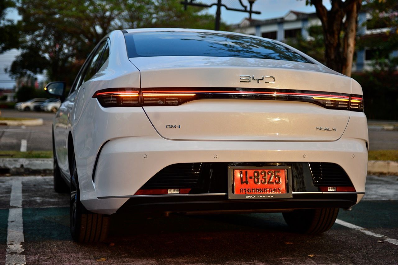 ประสิทธิภาพและความประหยัด อัตราเร่ง 0-100 กม./ชม. อยู่ที่ประมาณ 7.9 วินาที ให้ความรู้สึกฉับไวพอใช้ได้ ไม่กระโชกโฮกฮากเวลากดคันเร่งเต็มที่ SEAL 5 PHEV เน้นความประหยัดเป็นหลัก อัตราสิ้นเปลืองน้ำมันเฉลี่ยตามการเคลมของ BYD อยู่ที่ประมาณ 26 - 34 กม./ลิตร เมื่อน้ำมันเต็มถังพร้อมแบตเตอรี่เต็ม วิ่งได้ระยะทางรวมกว่า 1,000 - 1,100 กิโลเมตร ได้อย่างสบายๆ การทดสอบที่ไม่มีการแวะเติมเชื้อเพลิง และไฟ ใช้การวิ่งรวดเดียวจากเชียงราย มาพัก 1 คืนที่เพชรบูรณ์ แล้วขับลงกทม ในเช้าวันรุ่งขึ้น รถทดสอบที่ผมขับจากเชียงรายวกไปทางเพชรบูรณ์แล้วหักหัวลงกรุงเทพฯ ทำระยะทางทัังหมด รวม 1,134 กิโลเมตร แทบจะไม่เหลือเชื้อเพลิงในถัง หรือเหลือก็ประมาณไม่เกิน 2-3 ลิตร เทียบจากตัวเลขนั้นกับน้ำมัน 45 ลิตร ไฟเต็มแบตฯ วิ่งได้ไกลประมาณนั้น ถือว่า น่าใช้มากสำหหรับคนที่ต้องเดินทางไกลเป็นประจำและไม่ชอบการรอชาร์จไฟตามสถานีบริการ