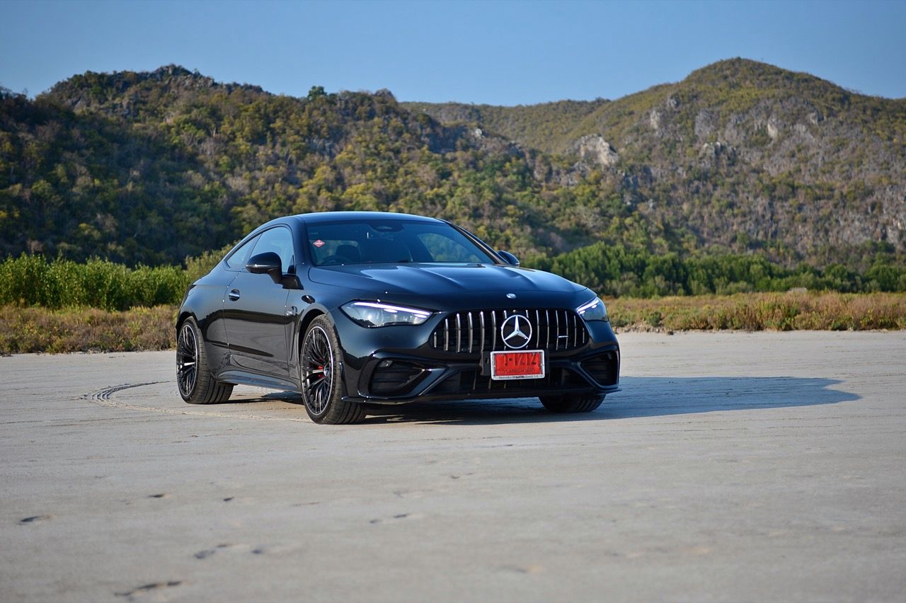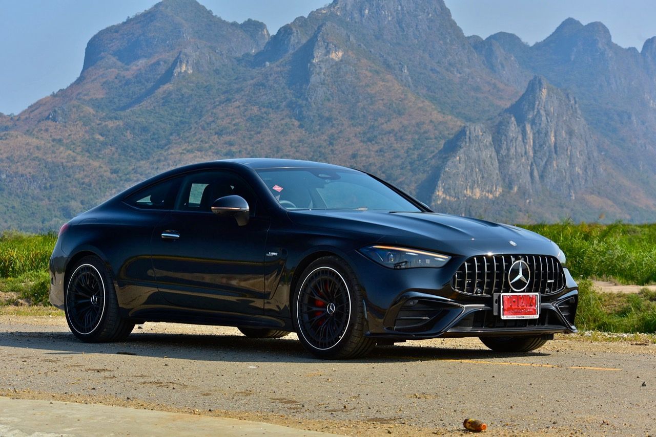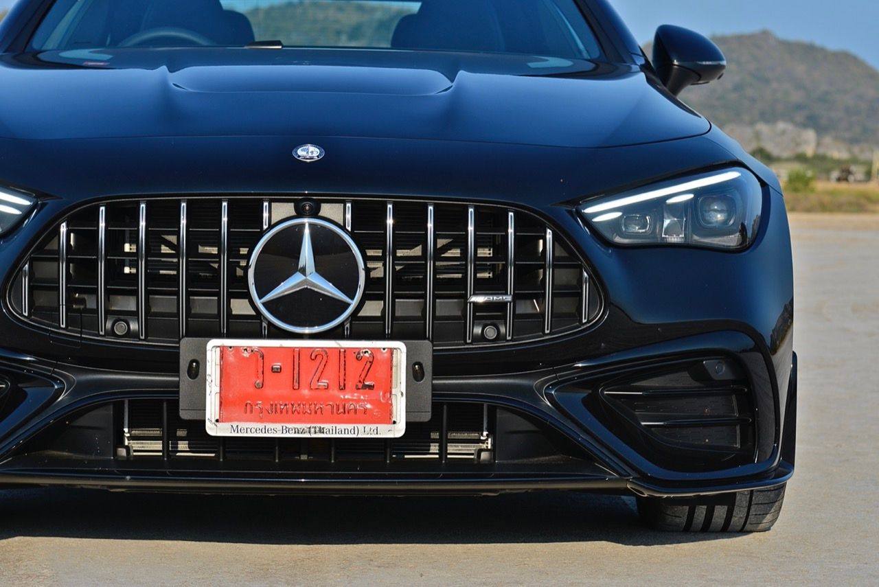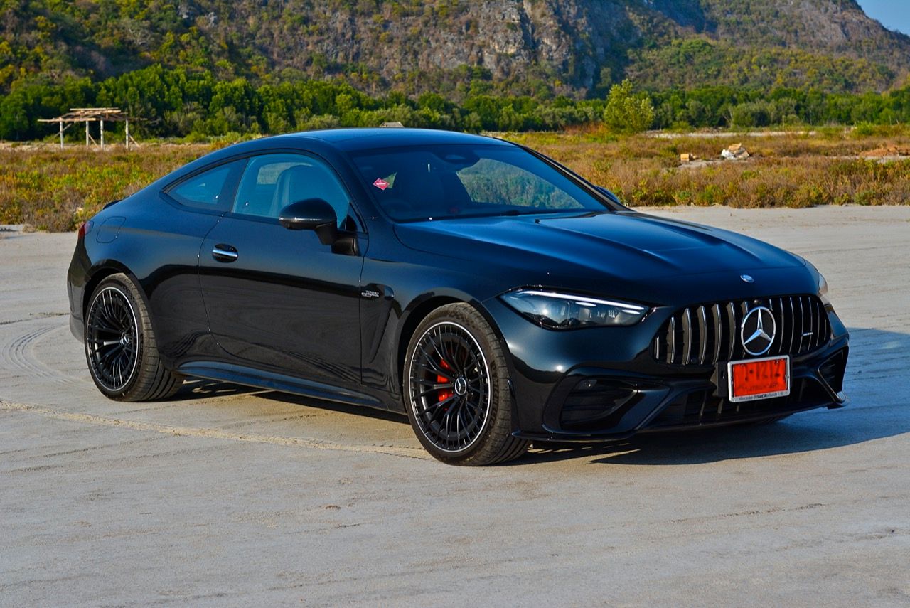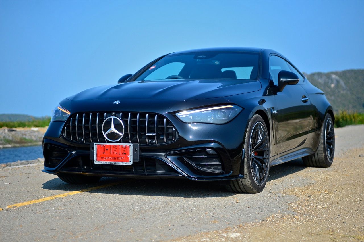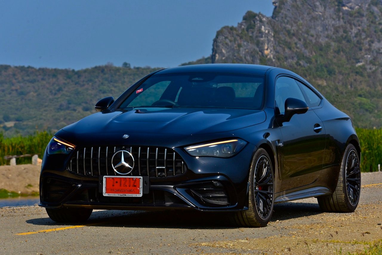 การเอาตรา AMG มาติด บ่งบอกถึงพละกำลัง Mercedes-AMG CLE 53 ตามทฤษฎีแล้วควรจะเป็นรถที่อยู่ตรงกลางระหว่างรุ่น 63 และ 43 ต้องให้ความรู้สึกสปอร์ต แต่ไม่ดุดันเท่า C 63 เป็นรถหรูสำหรับใช้งานทั่วไปที่เน้นความหล่อและพลังการทำความเร็ว แต่ตัวมันหนักกว่า CLE 300 ทำให้การขับในเมือง เครื่องสี่สูบ 2.0 ลิตร ของ CLE 300 ดูจะคล่องแคล่วมากกว่าเครื่องหกสูบ 3.0 ลิตร ของ AMG CLE 53 ซึ่งมาพร้อมกับของหนักๆอย่าง Mild Hybrid 48V เมื่อมองอย่างตั้งใจ แค่รูปลักษณ์ภายนอกก็บอกสายตาและสมองของคุณแล้วว่า นี่คือ CLE 53 ใหม่ที่เข้ามาแทน E53 กับ CLS53 มันนำเอาพื้นฐานของ CLE Coupe รถสองประตูสุดหรูที่ Mercedes ทำออกมาได้ดี มาเพิ่มความดุดัน ขยับฐานล้อให้กว้างขึ้น (ด้านหน้าเพิ่มขึ้น 58 มม. ด้านหลัง 75 มม.) ยางหลังขนาด 295 ในล้อ 21 ทำให้ซุ้มล้อดูใหญ่ราวกับรถแข่ง ท่าทางโดยรวมของ CLE 53 แทบจะไม่ต่างจาก C63 AMG Coupe รุ่นเก่า นี่คือรถที่ดูเร้าใจ โดยเฉพาะตัวถังสีดำ