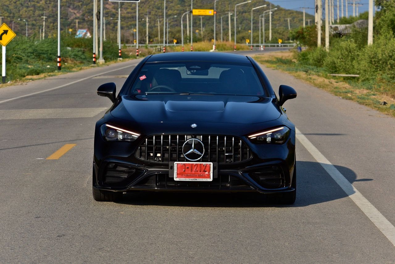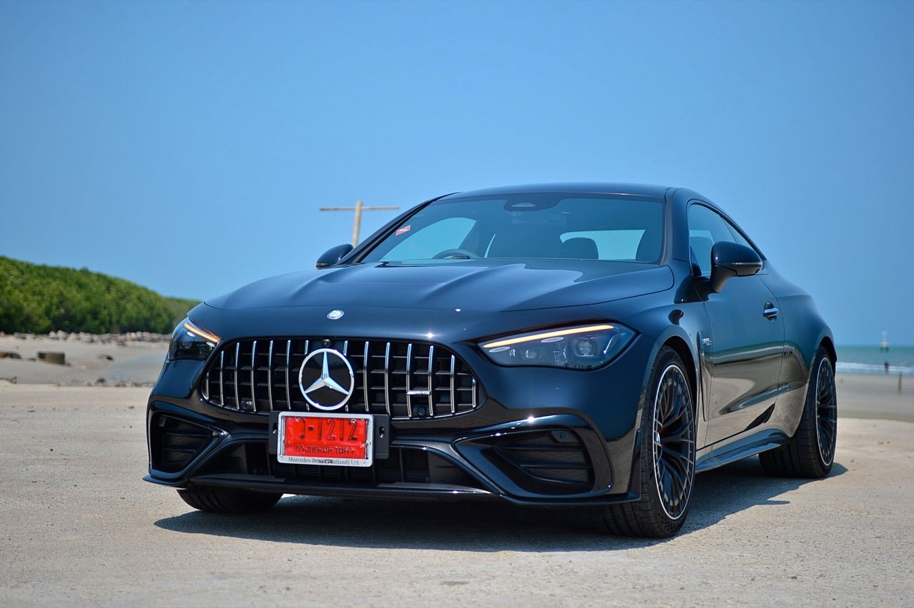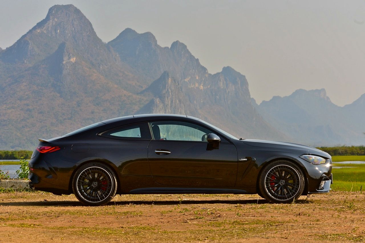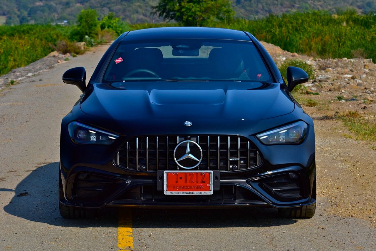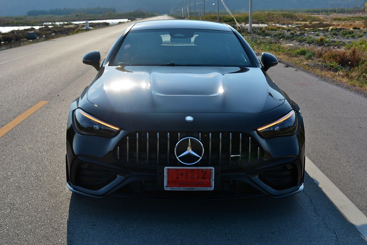 การเอาตรา AMG มาติด บ่งบอกถึงพละกำลัง Mercedes-AMG CLE 53 ตามทฤษฎีแล้วควรจะเป็นรถที่อยู่ตรงกลางระหว่างรุ่น 63 และ 43 ต้องให้ความรู้สึกสปอร์ต แต่ไม่ดุดันเท่า C 63 เป็นรถหรูสำหรับใช้งานทั่วไปที่เน้นความหล่อและพลังการทำความเร็ว แต่ตัวมันหนักกว่า CLE 300 ทำให้การขับในเมือง เครื่องสี่สูบ 2.0 ลิตร ของ CLE 300 ดูจะคล่องแคล่วมากกว่าเครื่องหกสูบ 3.0 ลิตร ของ AMG CLE 53 ซึ่งมาพร้อมกับของหนักๆอย่าง Mild Hybrid 48V เมื่อมองอย่างตั้งใจ แค่รูปลักษณ์ภายนอกก็บอกสายตาและสมองของคุณแล้วว่า นี่คือ CLE 53 ใหม่ที่เข้ามาแทน E53 กับ CLS53 มันนำเอาพื้นฐานของ CLE Coupe รถสองประตูสุดหรูที่ Mercedes ทำออกมาได้ดี มาเพิ่มความดุดัน ขยับฐานล้อให้กว้างขึ้น (ด้านหน้าเพิ่มขึ้น 58 มม. ด้านหลัง 75 มม.) ยางหลังขนาด 295 ในล้อ 21 ทำให้ซุ้มล้อดูใหญ่ราวกับรถแข่ง ท่าทางโดยรวมของ CLE 53 แทบจะไม่ต่างจาก C63 AMG Coupe รุ่นเก่า นี่คือรถที่ดูเร้าใจ โดยเฉพาะตัวถังสีดำ