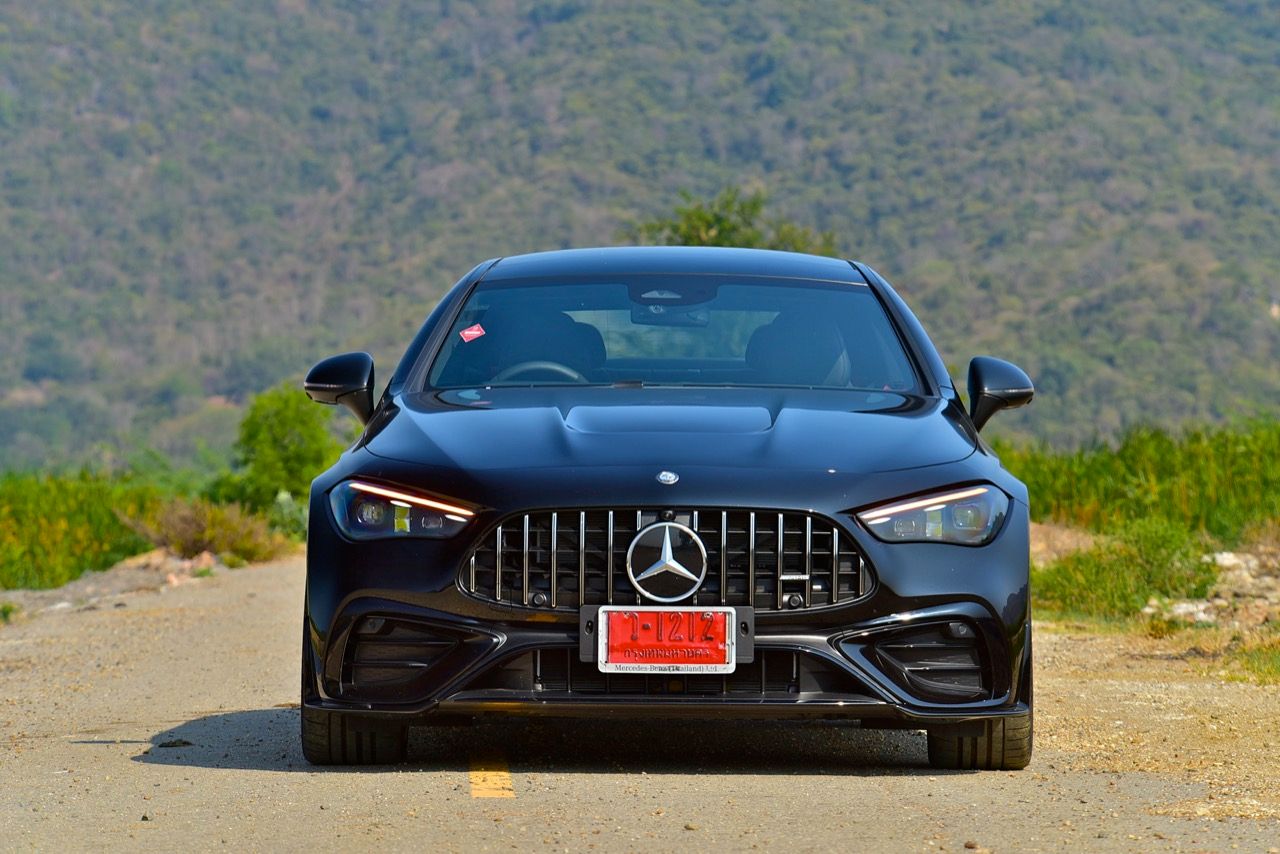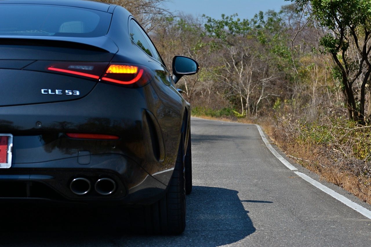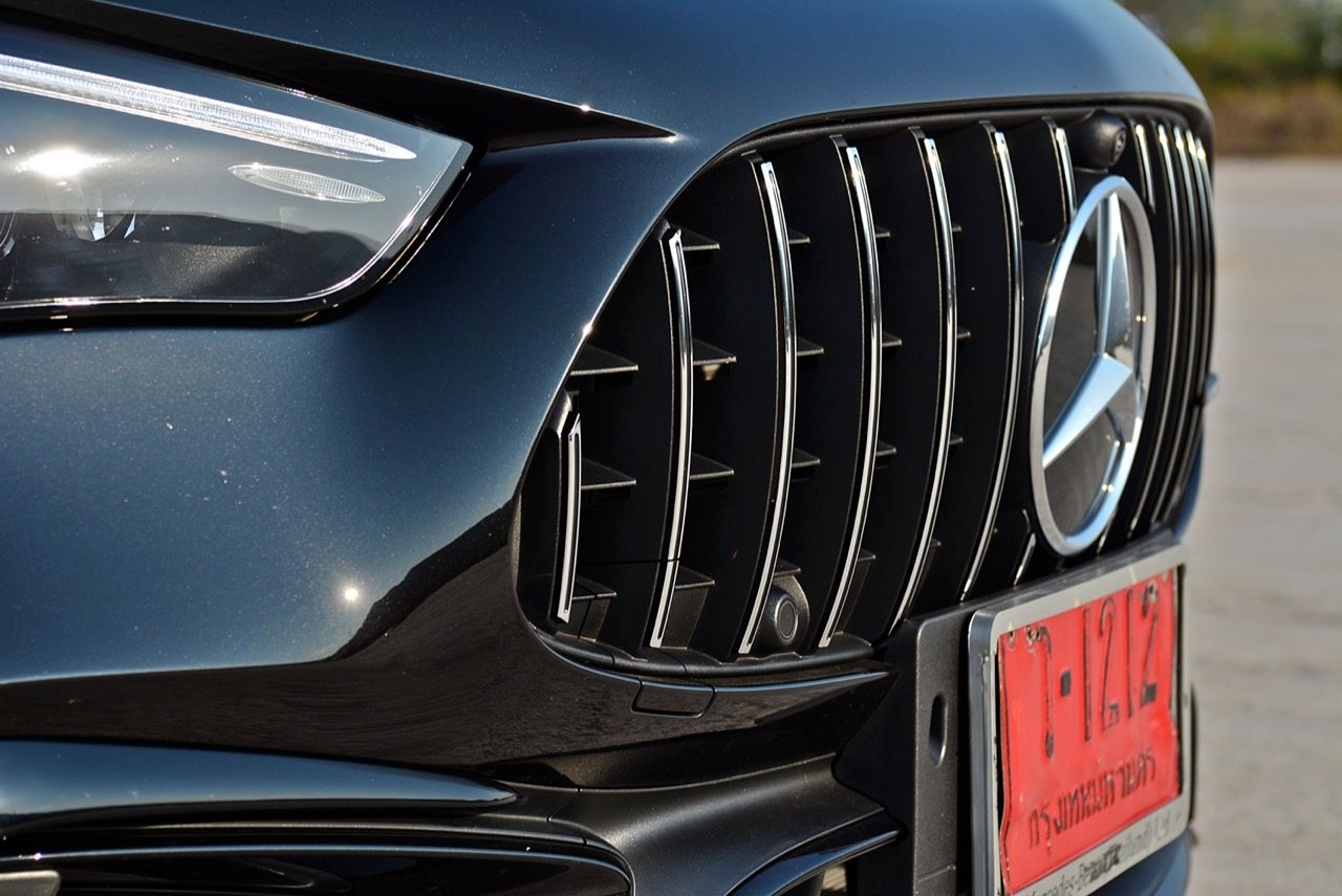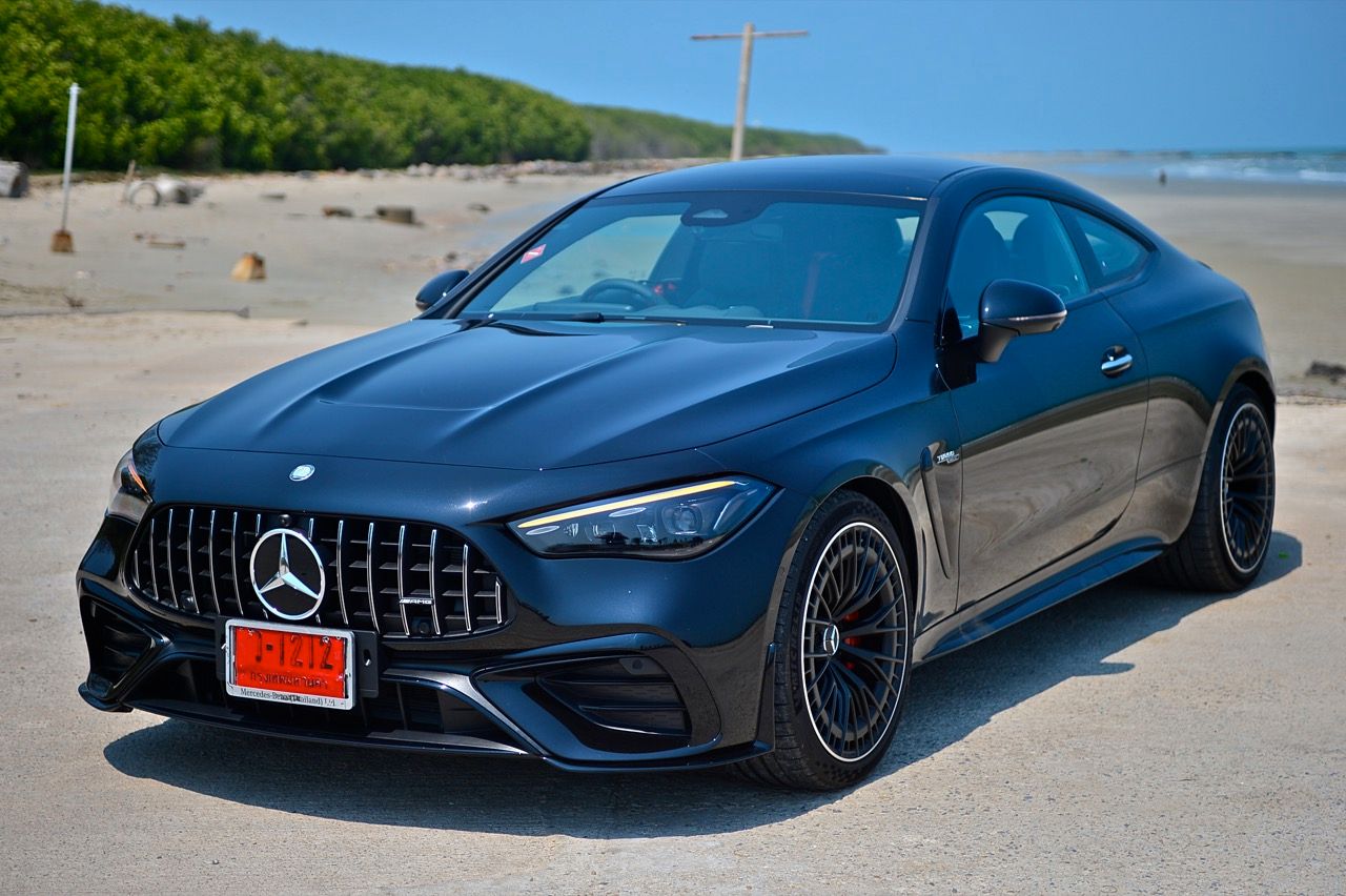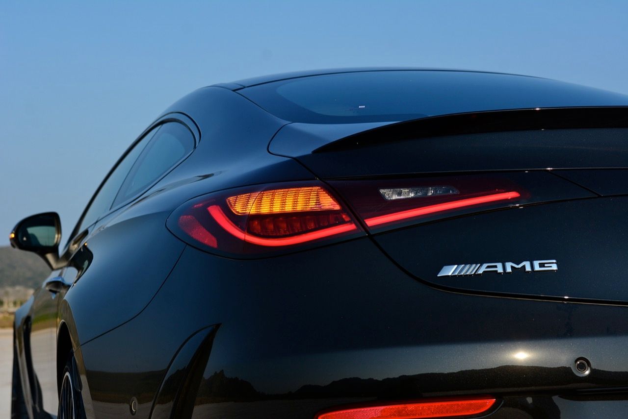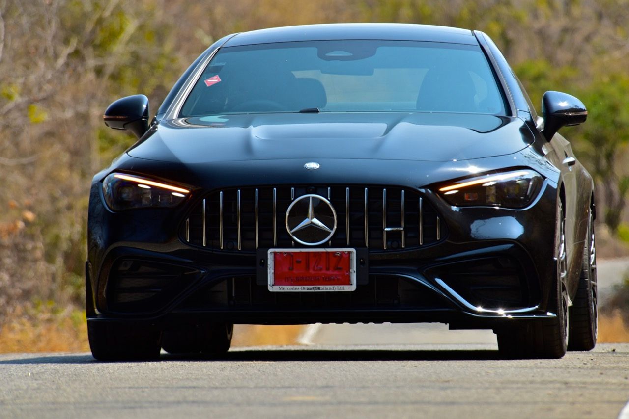 การเอาตรา AMG มาติด บ่งบอกถึงพละกำลัง Mercedes-AMG CLE 53 ตามทฤษฎีแล้วควรจะเป็นรถที่อยู่ตรงกลางระหว่างรุ่น 63 และ 43 ต้องให้ความรู้สึกสปอร์ต แต่ไม่ดุดันเท่า C 63 เป็นรถหรูสำหรับใช้งานทั่วไปที่เน้นความหล่อและพลังการทำความเร็ว แต่ตัวมันหนักกว่า CLE 300 ทำให้การขับในเมือง เครื่องสี่สูบ 2.0 ลิตร ของ CLE 300 ดูจะคล่องแคล่วมากกว่าเครื่องหกสูบ 3.0 ลิตร ของ AMG CLE 53 ซึ่งมาพร้อมกับของหนักๆอย่าง Mild Hybrid 48V เมื่อมองอย่างตั้งใจ แค่รูปลักษณ์ภายนอกก็บอกสายตาและสมองของคุณแล้วว่า นี่คือ CLE 53 ใหม่ที่เข้ามาแทน E53 กับ CLS53 มันนำเอาพื้นฐานของ CLE Coupe รถสองประตูสุดหรูที่ Mercedes ทำออกมาได้ดี มาเพิ่มความดุดัน ขยับฐานล้อให้กว้างขึ้น (ด้านหน้าเพิ่มขึ้น 58 มม. ด้านหลัง 75 มม.) ยางหลังขนาด 295 ในล้อ 21 ทำให้ซุ้มล้อดูใหญ่ราวกับรถแข่ง ท่าทางโดยรวมของ CLE 53 แทบจะไม่ต่างจาก C63 AMG Coupe รุ่นเก่า นี่คือรถที่ดูเร้าใจ โดยเฉพาะตัวถังสีดำ