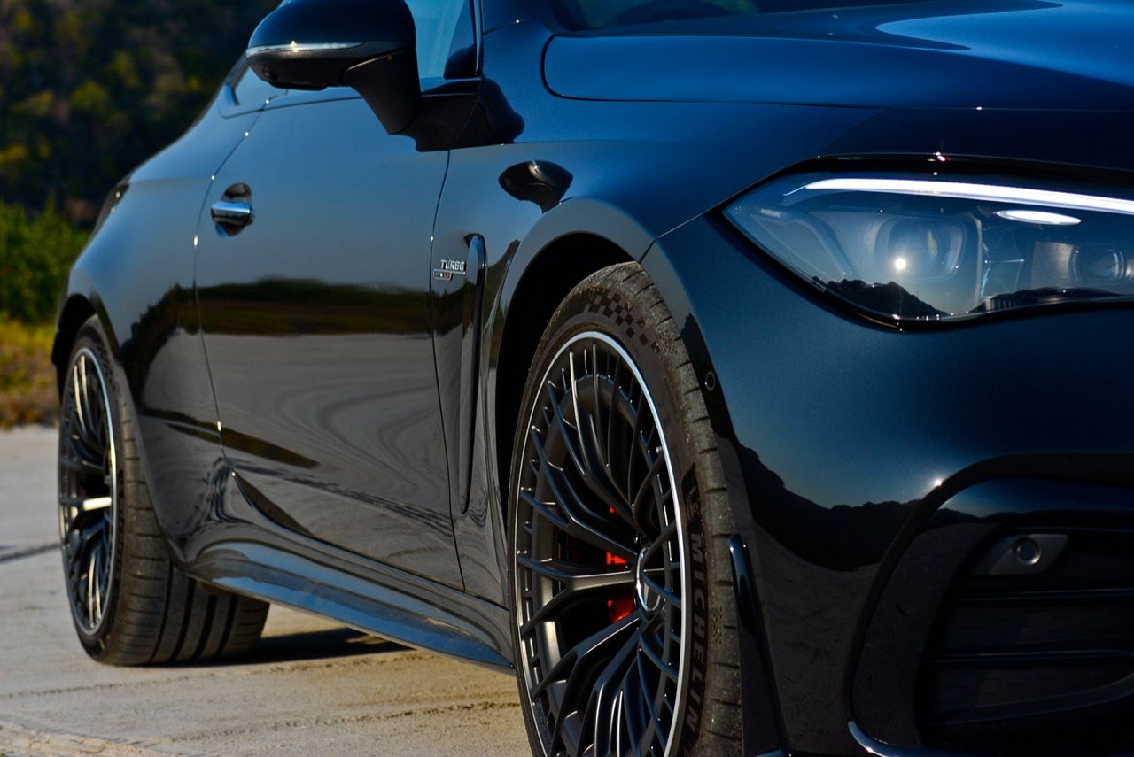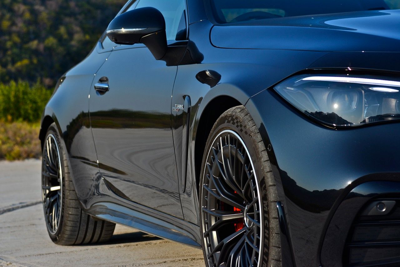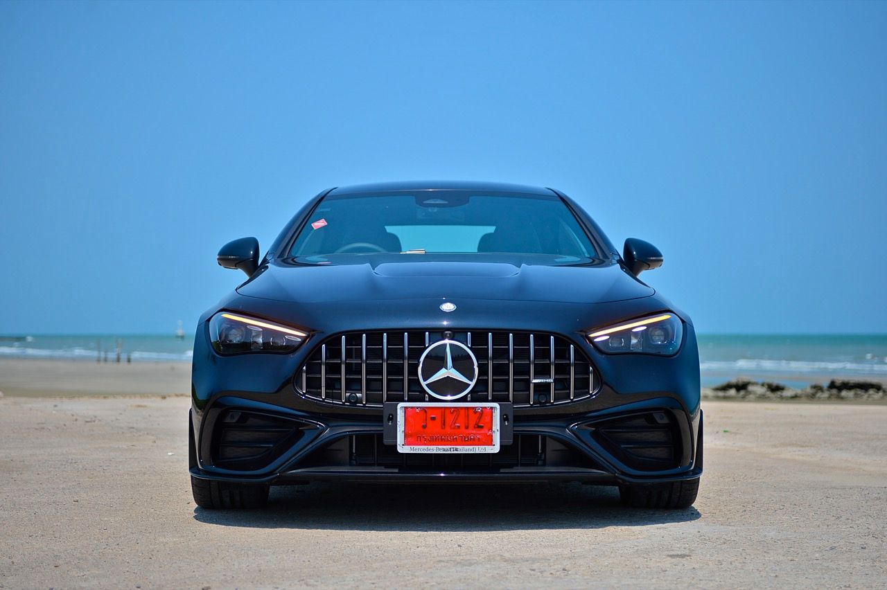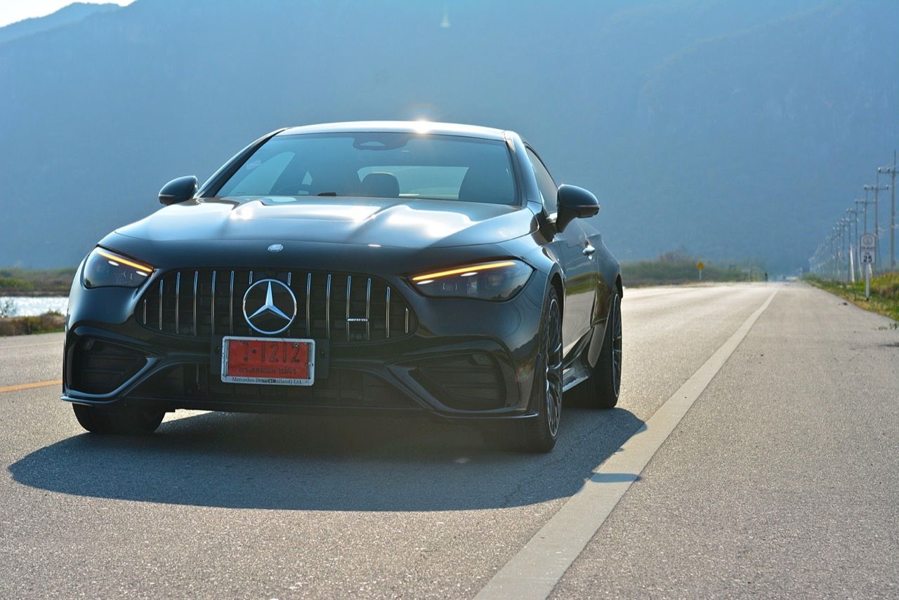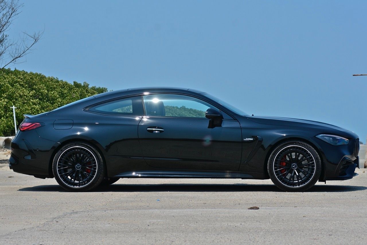 การเอาตรา AMG มาติด บ่งบอกถึงพละกำลัง Mercedes-AMG CLE 53 ตามทฤษฎีแล้วควรจะเป็นรถที่อยู่ตรงกลางระหว่างรุ่น 63 และ 43 ต้องให้ความรู้สึกสปอร์ต แต่ไม่ดุดันเท่า C 63 เป็นรถหรูสำหรับใช้งานทั่วไปที่เน้นความหล่อและพลังการทำความเร็ว แต่ตัวมันหนักกว่า CLE 300 ทำให้การขับในเมือง เครื่องสี่สูบ 2.0 ลิตร ของ CLE 300 ดูจะคล่องแคล่วมากกว่าเครื่องหกสูบ 3.0 ลิตร ของ AMG CLE 53 ซึ่งมาพร้อมกับของหนักๆอย่าง Mild Hybrid 48V เมื่อมองอย่างตั้งใจ แค่รูปลักษณ์ภายนอกก็บอกสายตาและสมองของคุณแล้วว่า นี่คือ CLE 53 ใหม่ที่เข้ามาแทน E53 กับ CLS53 มันนำเอาพื้นฐานของ CLE Coupe รถสองประตูสุดหรูที่ Mercedes ทำออกมาได้ดี มาเพิ่มความดุดัน ขยับฐานล้อให้กว้างขึ้น (ด้านหน้าเพิ่มขึ้น 58 มม. ด้านหลัง 75 มม.) ยางหลังขนาด 295 ในล้อ 21 ทำให้ซุ้มล้อดูใหญ่ราวกับรถแข่ง ท่าทางโดยรวมของ CLE 53 แทบจะไม่ต่างจาก C63 AMG Coupe รุ่นเก่า นี่คือรถที่ดูเร้าใจ โดยเฉพาะตัวถังสีดำ