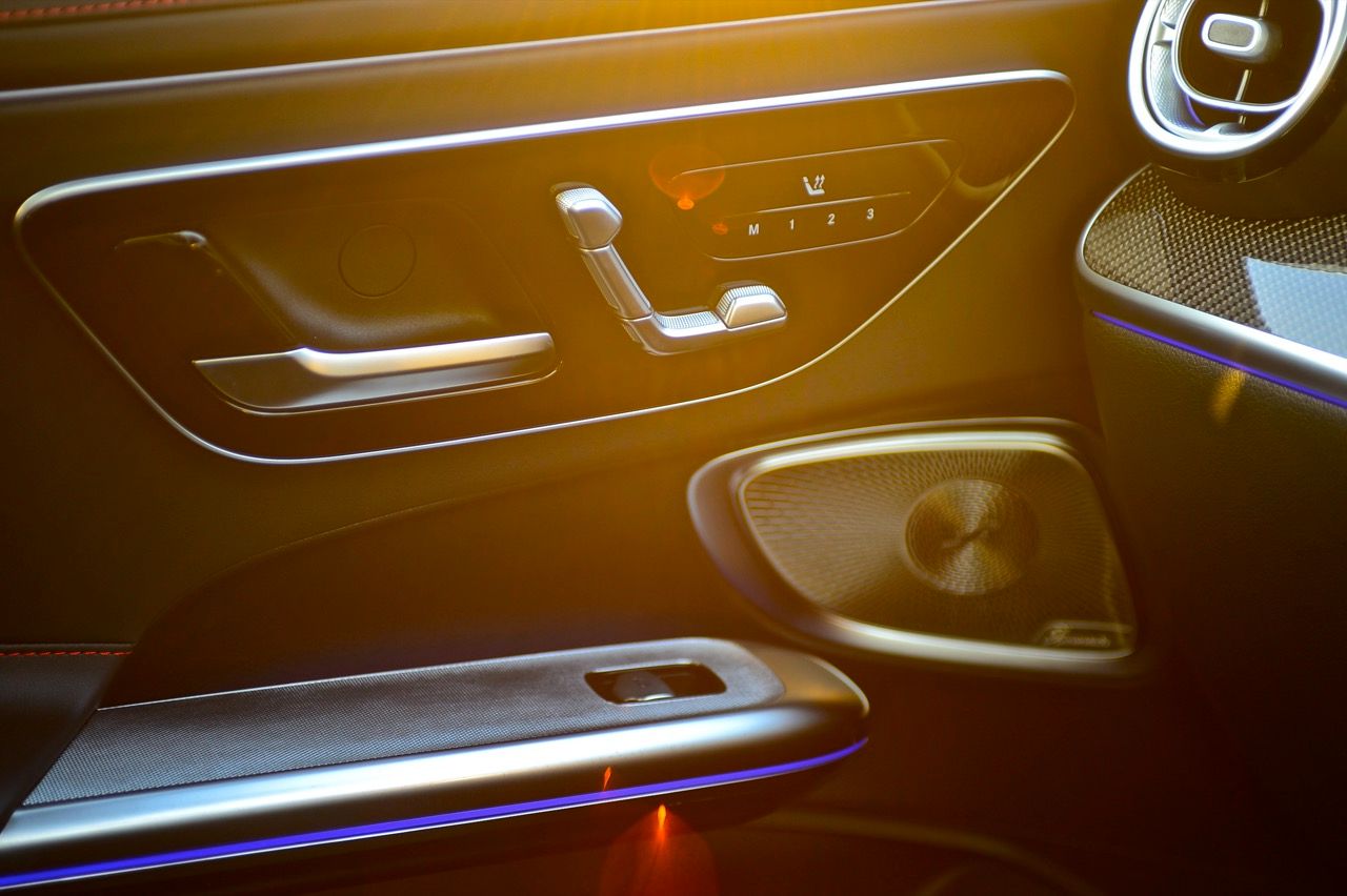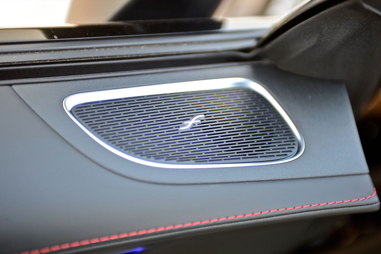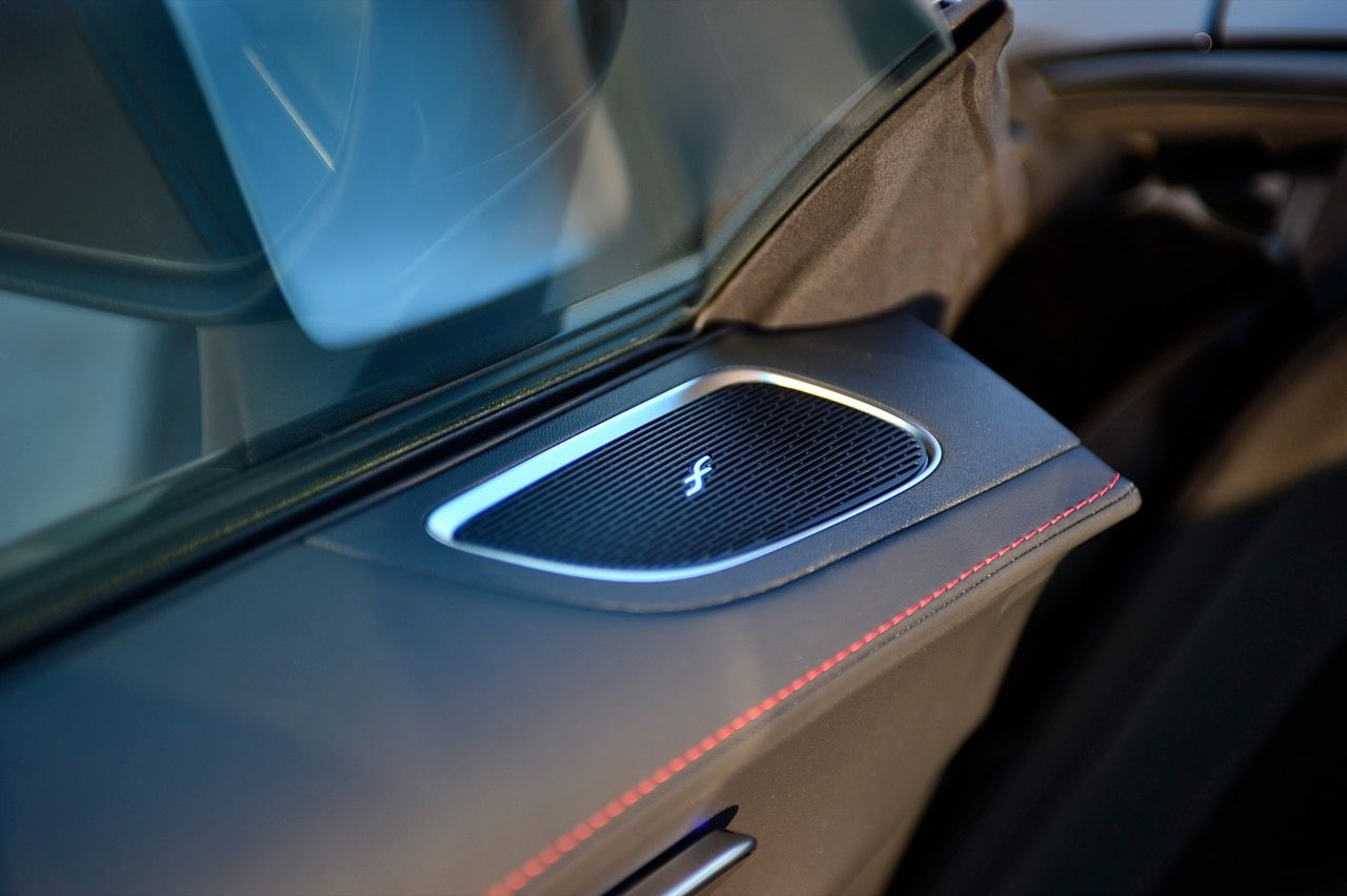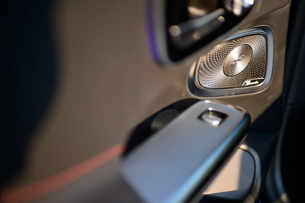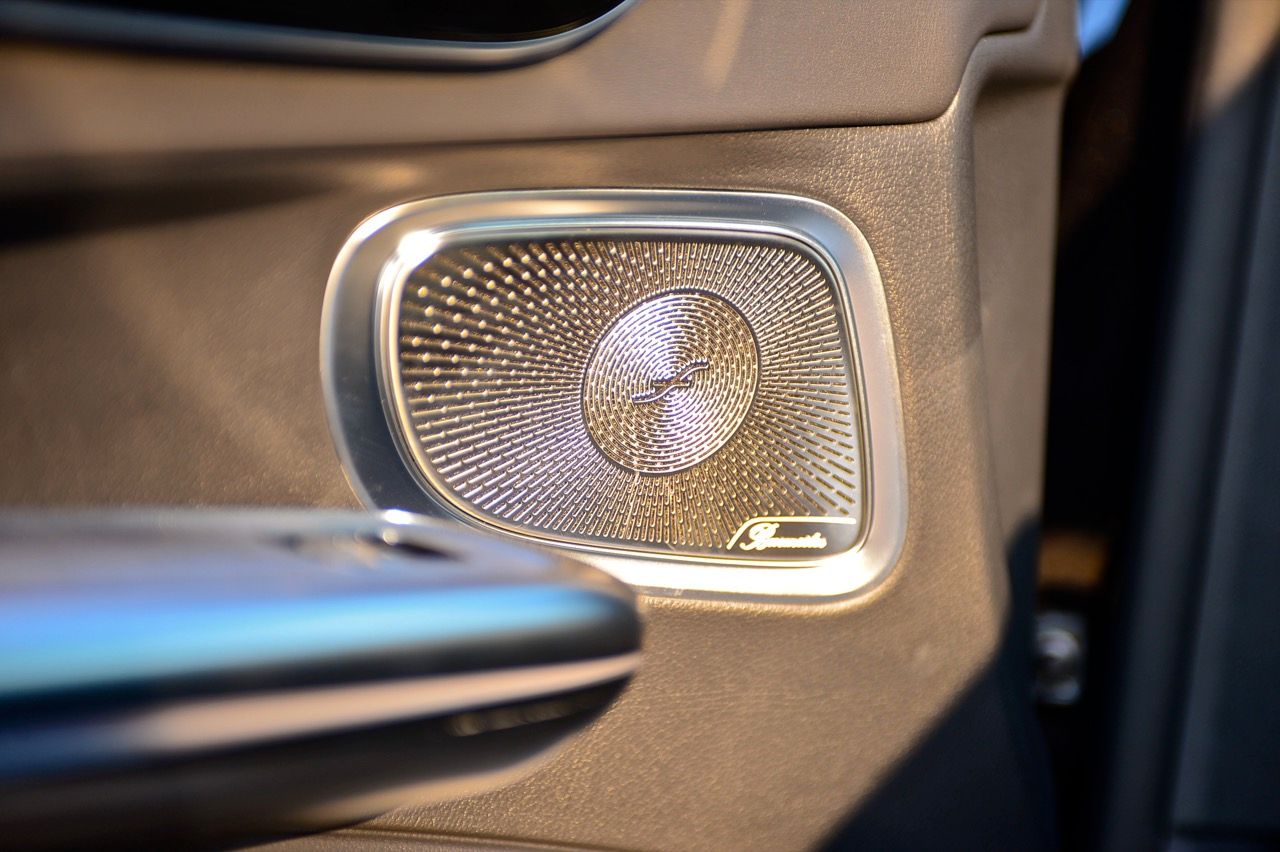 คอนโซลและแผงประตู (Console & Door Panels) แผงคอนโซลหน้า ตกแต่งด้วยวัสดุลาย Carbon Fiber หรือ Metal Weave ตัดกับวัสดุบุนุ่มและหนังชั้นดี แผงประตู มีการเล่นระดับของเส้นสายที่สอดรับกับคอนโซลหน้า พร้อมไฟ Ambient Light 64 เฉดสีที่ฝังอยู่ตามขอบประตูและช่องวางแขน กรวยลำโพงมาพร้อมระบบเสียง Burmester® 3D Surround Sound โดยมีลำโพงฝังอยู่ที่พนักพิงศีรษะของเบาะหน้าด้วย เพื่อมิติเสียงที่โอบล้อม