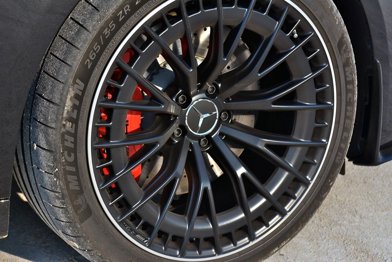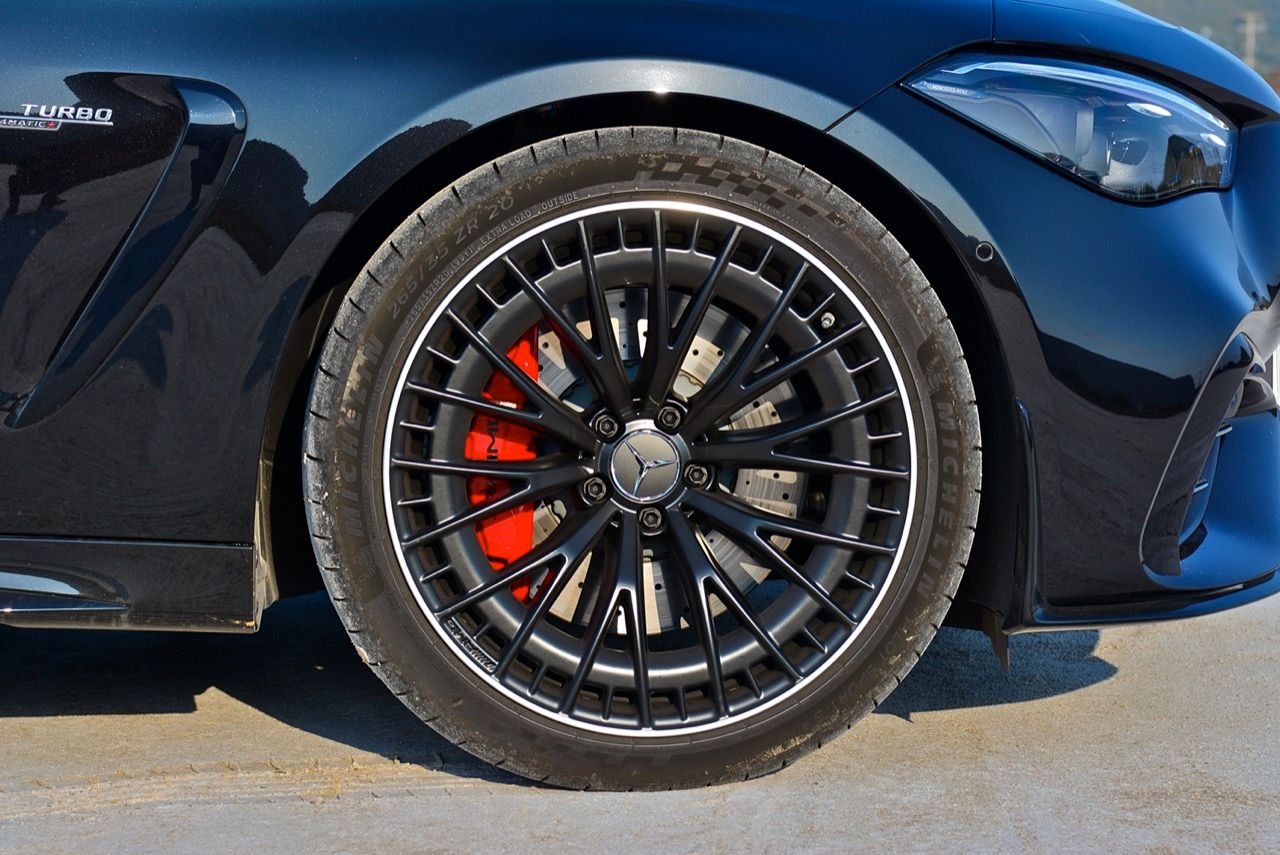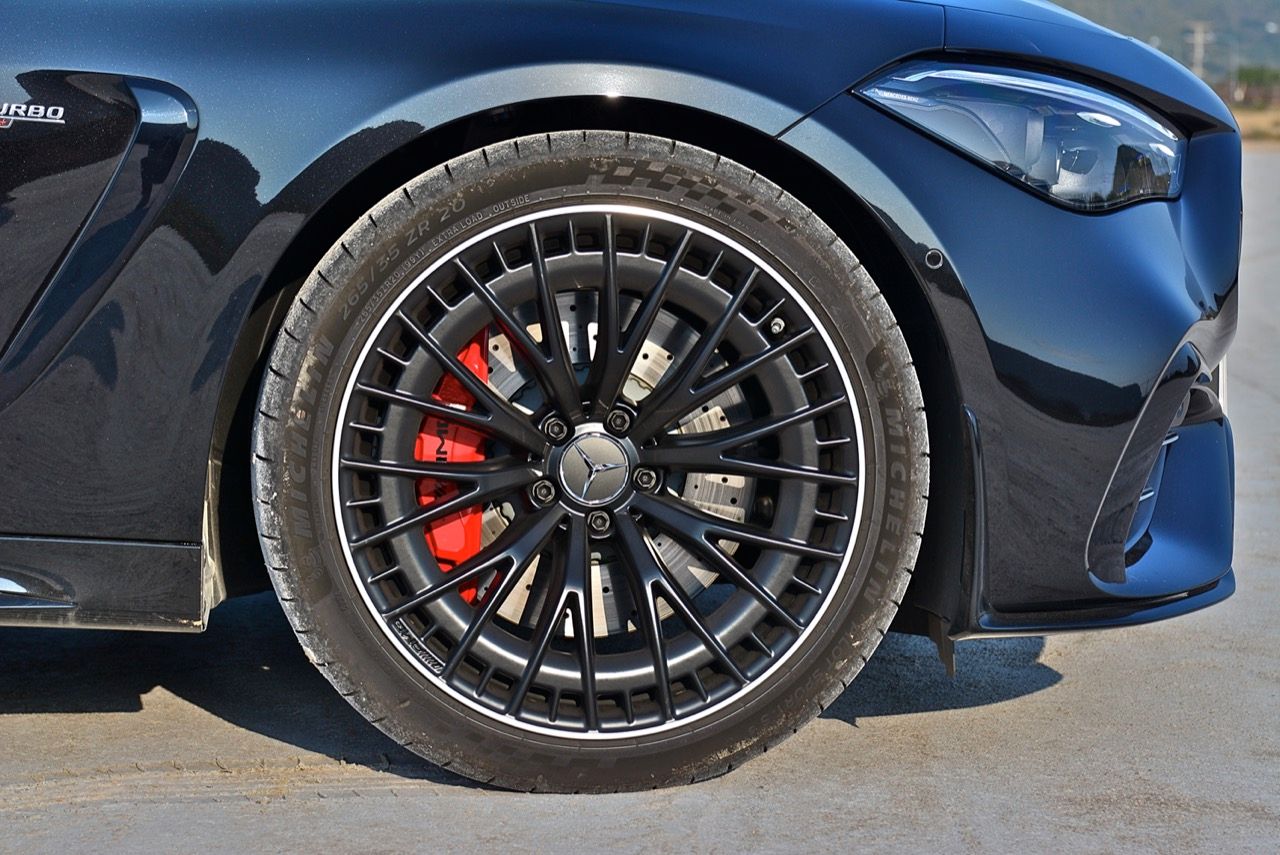 Mercedes-AMG CLE 53 4MATIC+ สเปกมาตรฐาน มาพร้อมกับล้อและยางที่มีขนาด "หน้าแคบ-หลังกว้าง" (Staggered Setup) ล้อ AMG ลายโหด หน้า-หลัง 20 นิ้ว เพื่อรองรับแรงบิดมหาศาลและการขับเคลื่อน 4 ล้อแบบเน้นล้อหลัง รายละเอียดขนาดล้อและยางมาตรฐาน ขนาดล้อและยาง (Standard Setup)มาพร้อมกับล้อ AMG Light-alloy wheels ขนาด 20 นิ้วที่ด้านหน้าและหลัง ล้อหน้า ขนาดล้อ 9.5J x 20 ET28 ขนาดยางหน้า 265/35 ZR20 ล้อหลัง ขนาดล้อ 10.5J x 21 ET53 ขนาดยางหลัง 295/30 ZR20 จุดเด่นของเซตล้อและยางใน CLE 53 เริ่มจากควบอวบบวมของโป่งแบบ Wide Track Design เนื่องจาก CLE 53 มีการขยายซุ้มล้อ (Wide Body) ให้กว้างกว่า CLE รุ่นปกติ (หน้ากว้างขึ้น 58 มม. และหลัง 75 มม.) ทำให้สามารถใส่ล้อที่มีหน้ากว้างและยางซีรีส์ต่ำระดับนี้ได้ เพื่อการยึดเกาะถนน (Mechanical Grip) ที่ดีเยี่ยม สำหรับยี่ห้อยาง หรือ Tire Brand ยางจากโรงงาน ติดตั้งยางกลุ่ม Ultra High Performance (UHP) เช่น Michelin Pilot Sport 5S หรือ Pirelli P Zero ซึ่งออกแบบมาเพื่อรองรับความเร็วสูงสุดที่ถูกจำกัดไว้ที่ 250 - 270 กม./ชม. Aerodynamic Wheels ล้อ AMG หลายลายถูกออกแบบมาให้มีขอบ Aero-rim เพื่อช่วยลดแรงต้านอากาศและช่วยระบายความร้อนให้กับระบบเบรก AMG Performance ขนาดใหญ่ (จานหน้า 370 มม. / หลัง 360 มม.) ล้อ 20 นิ้ว AMG A236 C236 rims ลายยอดนิยมที่เป็นล้อฟอร์จ (Forged Wheels) มีน้ำหนักเบาแต่แข็งแรงสูง ช่วยลดน้ำหนักใต้สปริง (Unsprung Weight) ทำให้ช่วงล่างตอบสนองได้คมขึ้น แต่ยางมีซีรีส์ที่ค่อนข้างบางมา หน้า 35 หลัง 30 ทำให้ต้องใช้ความระวังมากกว่าปกติ การขับบนถนนที่มีหลุมบ่อในกรุงเทพฯ หรือเส้นทางต่างจังหวัดในช่วงเทศกาล ต้องใช้ความระมัดระวังเป็นพิเศษเพื่อป้องกันล้อดุ้งหรือยางบวม