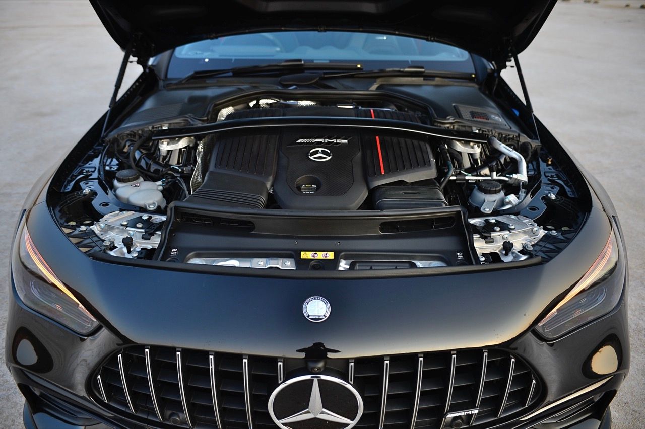 ใน C63 Coupe รุ่นเก่าที่ผมเคยขับแค่แวบเดียวแค่สองรอบในสนามช้างซึ่งเป็นการขับยังไม่ถึง 10 กิโลเมตร ด้วยความเร็วสูง เจ้า C-Coupe เวอร์ชันทรงพลังสุดนั้น มีเครื่องยนต์ V8 ขนาดใหญ่ที่ดุดัน แต่ CLE 53 ผู้พี่ที่กำลังถูกปลดระวาง พยายามรักษาธรรมเนียมของรถรหัส 53 ด้วยการใช้เครื่องยนต์ 6 สูบเรียง เป็นเรื่องน่ายินดีเมื่อ C63 รุ่นใหม่ใช้เครื่องยนต์ระบบปลั๊กอินไฮบริด 4 สูบที่น่าทึ่งอยู่แล้ว เมื่อเปิดฝากระโปรงหน้าอันแข็งแกร่งของ AMG CLE 53 แล้วพบกับเครื่องยนต์เทอร์โบ 3.0 ลิตร มาพร้อมกับชิ้นส่วนที่แข็งแรงขึ้นและซอฟต์แวร์ใหม่ ให้กำลังสูงสุด 443 แรงม้าและแรงบิดสูงสุด 560-600 นิวตันเมตร เมื่อโอเวอร์บูสต์ทำงาน นั่นคือแรงบิดมโหฬารในรถสปอร์ตคันเล็กที่หนักพอๆกับกระบะขับเคลื่อนสี่ล้อ! ดูแล้วย้อนแย้งพิกลอยู่เหมือนกัน