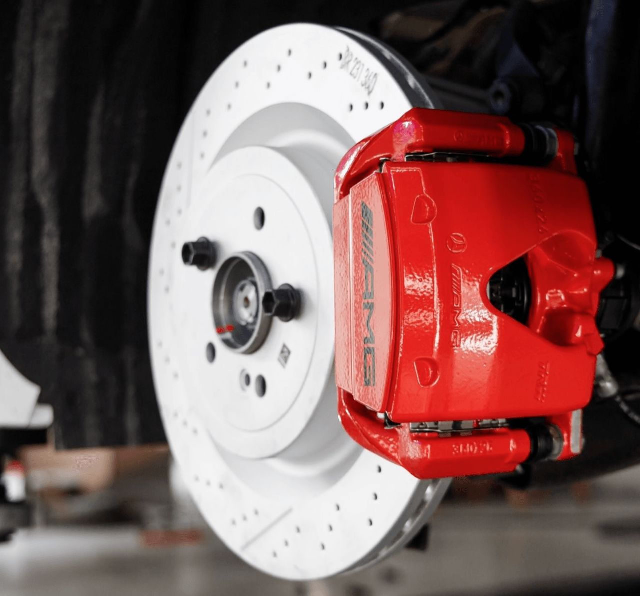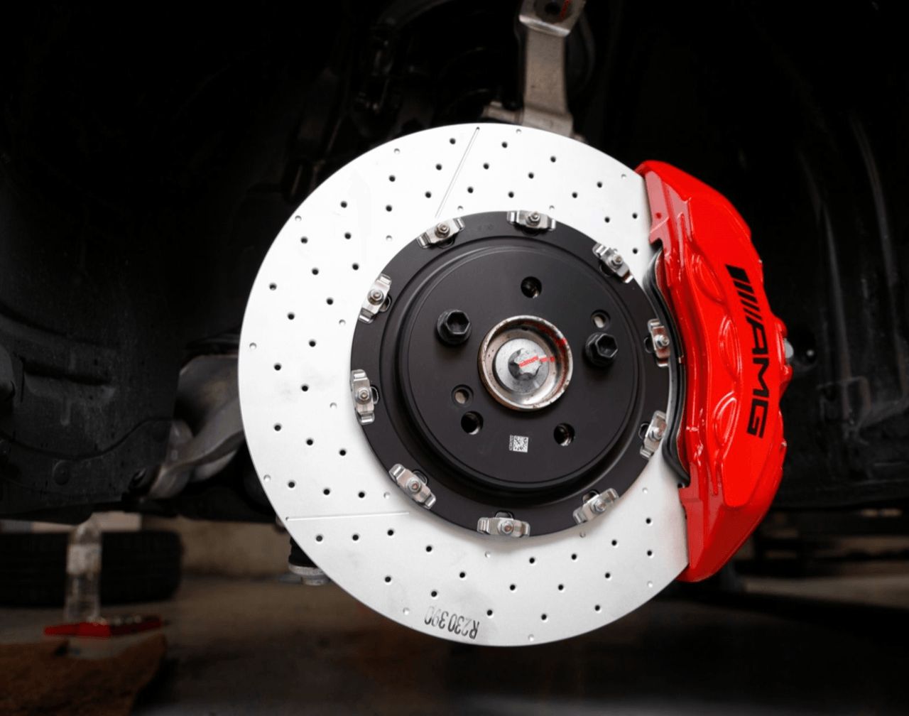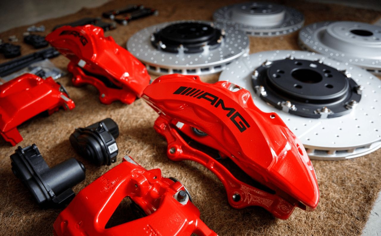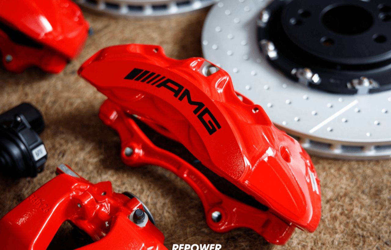 ชุดเบรก AMG Performance (Brake System) สามารถสังเกตความแตกต่างของระบบเบรกใน CLE 53 ได้ง่ายๆ จากภายนอก จากสเปกจานเบรกด้านหน้า จานเบรกแบบมีรูระบายความร้อน (Perforated) และครีบระบายความร้อนภายใน ขนาด 370 x 36 มม. ด้านหลัง จานเบรกขนาด 360 x 26 มม. คาลิปเปอร์เบรก (Caliper Options) สีของคาลิปเปอร์ไม่ได้บอกแค่ความสวยงาม แต่บอกถึงแพ็กเกจที่ติดตั้งมากับรถ คาลิปเปอร์ สีเงิน Silver Calipers เป็นสเปกมาตรฐาน มาพร้อมตัวอักษร "AMG" สีดำ ส่วน AMG CLE 53 4MATIC + ที่ขายในไทย ใช้คาลิปเปอร์สีแดง Red Calipers มาพร้อมกับ AMG DYNAMIC PLUS Package ตัวคาลิปเปอร์เป็นแบบ 4-piston (4 พอต) ที่ด้านหน้า พร้อมตัวอักษร "AMG" สีดำ สีแดง สื่อถึงสมรรถนะสูงสุด โหมดการขับขี่ที่ดุดันอย่าง Race Mode หรือ Drift Mode