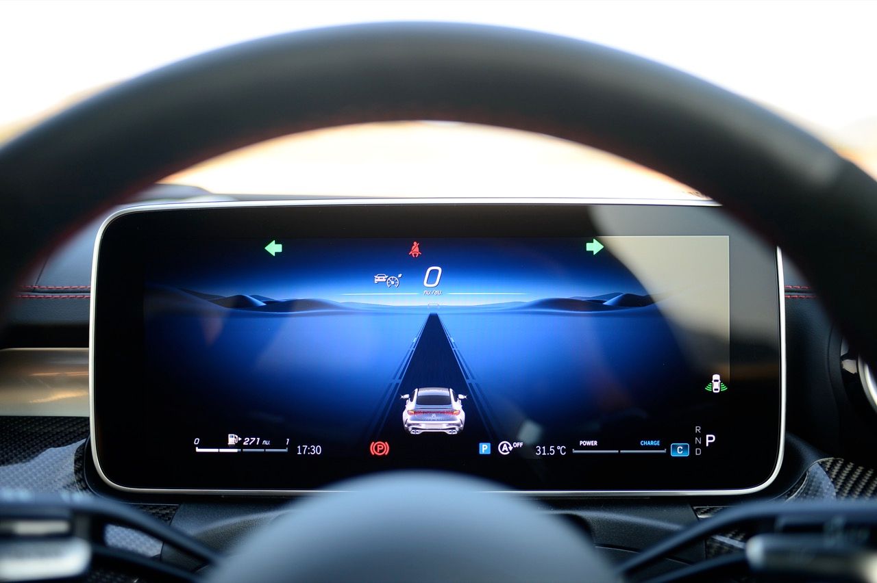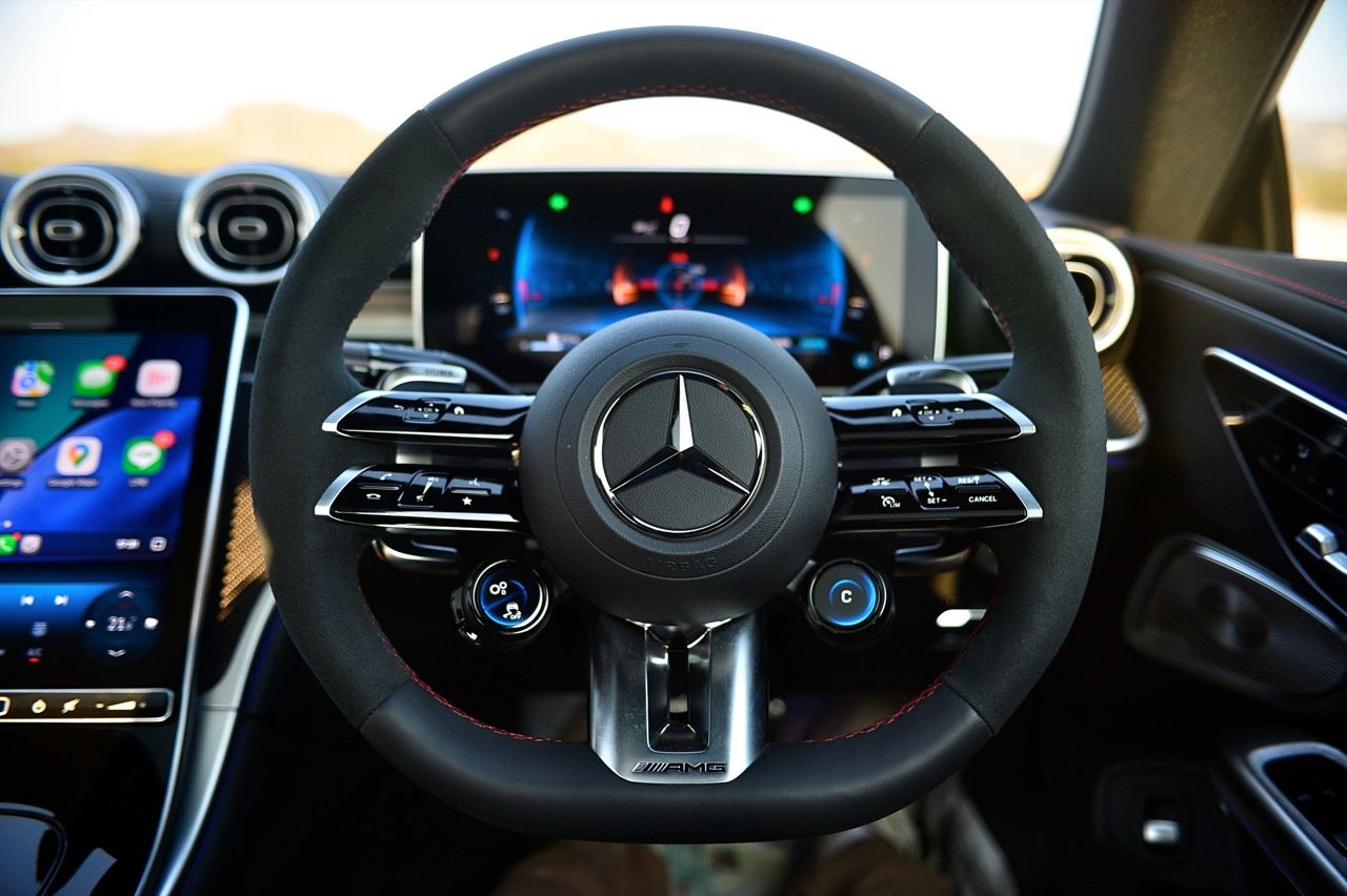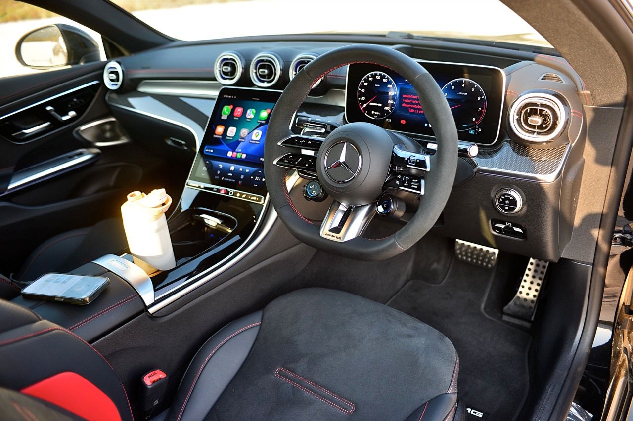 เมื่อขับมาทั้งวัน ความพึงพอใจใน 53 รุ่นล่าสุดนั้นมีความลึกซึ้งมากกว่ารถสปอร์ตทั่วไป พวงมาลัยเบาและใช้งานง่าย ซึ่งขัดกับพวงมาลัยที่ดูใหญ่และสปอร์ต ระบบบังคับเลี้ยวสี่ล้อผสานรวมอย่างลงตัว ช่วยลดน้ำหนักของรถลงเล็กน้อยในขณะเข้าโค้ง โดยไม่ทำให้คุณเสียการทรงตัวอย่างรุนแรงที่จุดสูงสุดของโค้ง ปุ่มหมุนปรับโหมดการขับขี่ต่างๆ กลายเป็นเอกลักษณ์ของ AMG และมีบทบาทสำคัญในการเลือกโหมดการขับขี่ที่หลากหลายได้อย่างลงตัว นอกจากนี้ยังช่วยให้คุณไม่ต้องจ้องมองหน้าจอสัมผัสขนาด 11.9 นิ้วที่อาจทำให้เสียสมาธิ ฟังก์ชันหลักๆ นั้นใช้งานง่าย รวมถึงการปิดใช้งานระบบความปลอดภัยต่างๆ ได้อย่างรวดเร็ว และบรรยากาศภายในโดยรวมก็ยอดเยี่ยม ทุกอย่างให้ความรู้สึกและกลิ่นอายความหรูหราสมกับราคา 5.3 ล้านบาท