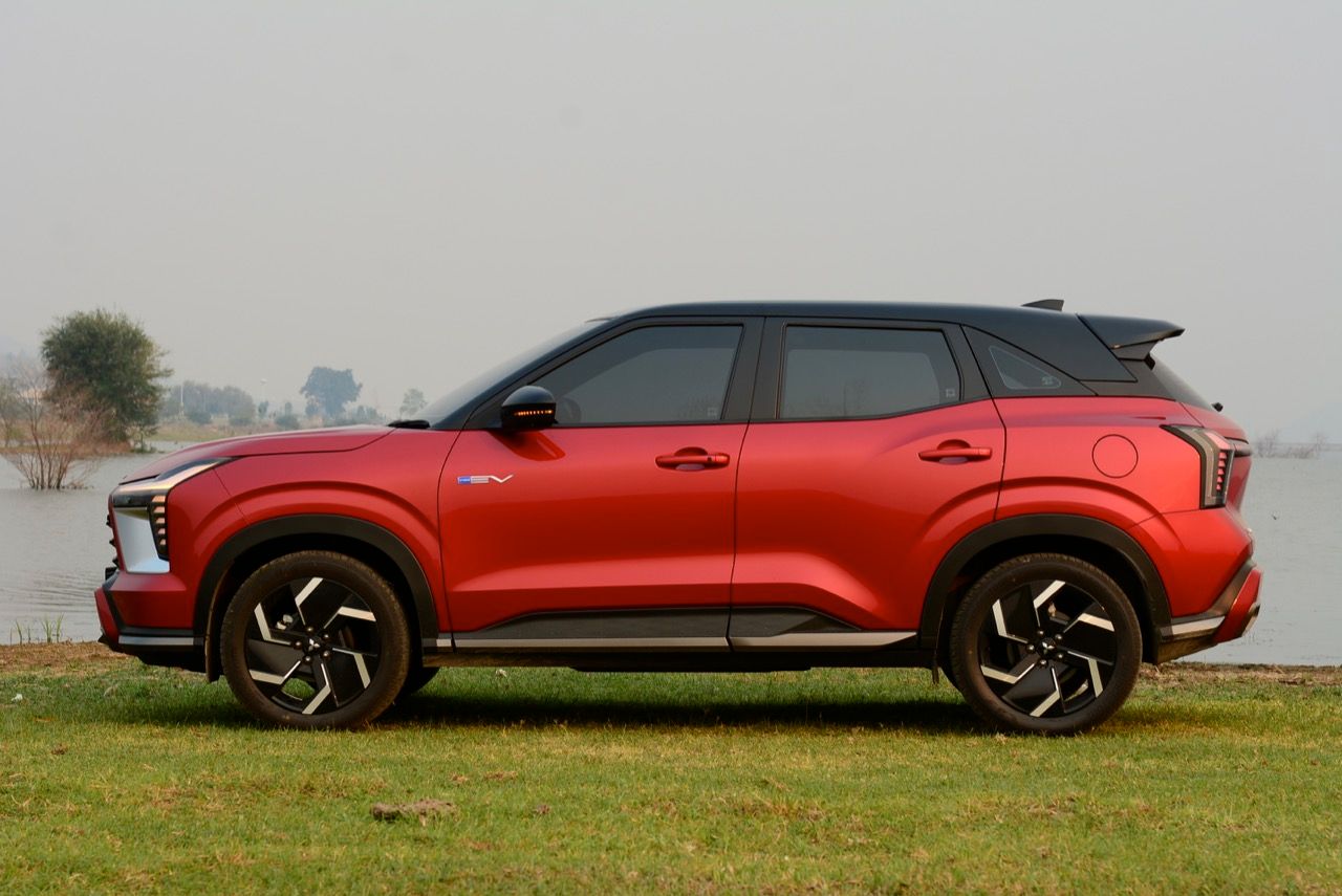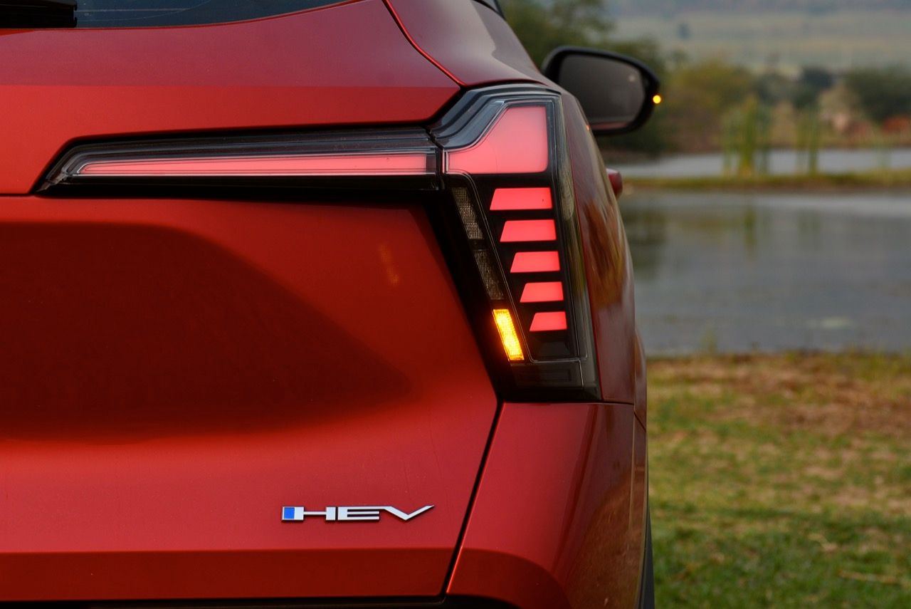 ด้านข้างของตัวถัง เน้นมิติของซุ้มล้อด้วยพลาสติกกันกระแทกสีดำ บังโคลนหน้า-หลังที่ยกขอบให้นูนขึ้นมา เส้นด้านข้างของตัวรถอยู่ชายล่างของบานประตู เชื่อมโยงกับพลาสติกกันกระแทกที่ติดตั้งอยู่บริเวณส่วนล่างของประตูทั้งหน้า-หลัง มือจับที่เปิดประตูสีเดียวกับตัวถัง เสาอากาศครีบปลาฉลาม สัญลักษณ์ Hybrid EV ที่ส่วนบนของบานประตูหน้า ล้ออัลลอยลายกงจักรสีดำสลับเงิน ขนาดขอบ 18 นิ้ว ยาง bridgestone alenza ไซล์ 225/50R18 95V มิติตัวถัง ยาว 4,390 มิลลิเมตร กว้าง 1,810 มิลลิเมตร สูง 1,660 มิลลิเมตร ความยาวฐานล้อ 2,650 มิลลิเมตร น้ำหนัก 1,245 กิโลกรัม ถือว่าเบาใช้ได้เพราะชุดไฮบริดมีแค่แบตเตอรี่เล็กๆ เท่านั้น สำหรับความสูงจากพื้นถึงใต้ท้องรถ อยู่ที่ 183 มิลลิเมตร ออกแนวครอสโอเวอร์ขับลุยน้ำท่วมขัง 30 Cm. หรือ ขับบนทางลูกรังแบบชิลๆ