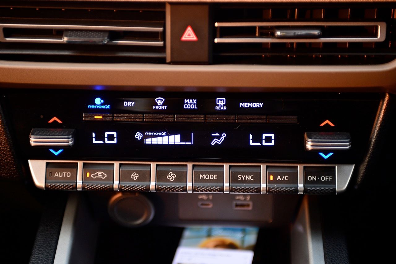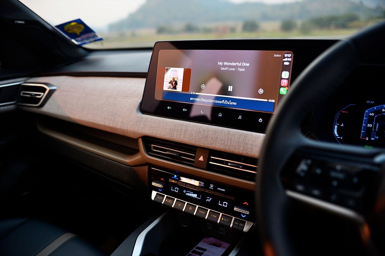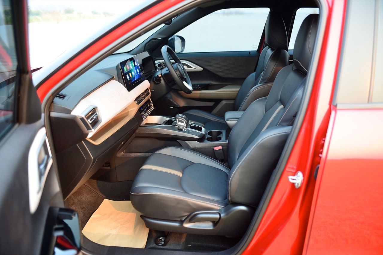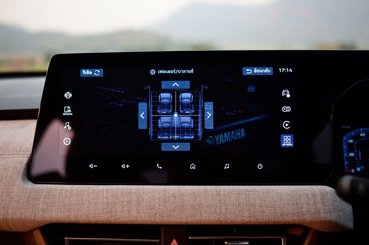 ภายในกว้างพอสมควรกับขนาดตัวถังที่ไม่ได้ใหญ่โตอะไรนัก พื้นที่เก็บของหลากหลาย รุ่นท็อป Ultimate X มาพร้อมระบบเสียง Dynamic Sound Yamaha Premium ลำโพง 8 ตำแหน่ง ห้องโดยสาร สีดำ Black / สีน้ำตาล Mocha วัสดุตกแต่งภายใน White Melange Fabric เบาะหุ้มหนังลดความร้อน Anti-Temperature Rise เบาะนั่งด้านหลัง แยกอิสระ 60 : 40 เบาะนั่งด้านหลัง ปรับเอนได้ 8 ระดับ มาตรวัด Full Digital ขนาด 8 นิ้ว หน้าจอกลาง Touchscreen ขนาด 12.3 นิ้ว รองรับ Apple CarPlay / Android Auto แบบไร้สาย ที่ชาร์จโทรศัพท์ไร้สาย Wireless Charger ระบบปรับอากาศแบบอัตโนมัติ แยกอิสระซ้าย-ขวา Dual Zone ระบบปรับสมดุลอากาศ Nanoe X ช่องแอร์สำหรับผู้โดยสารตอนหลัง กล่องเก็บของสามารถแช่เครื่องดื่มเย็น Cool Box ไฟสร้างบรรยากาศในห้องโดยสาร Ambient Light เรียกว่าเยอะใช้ได้เลยทีเดียว