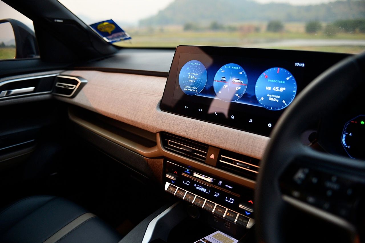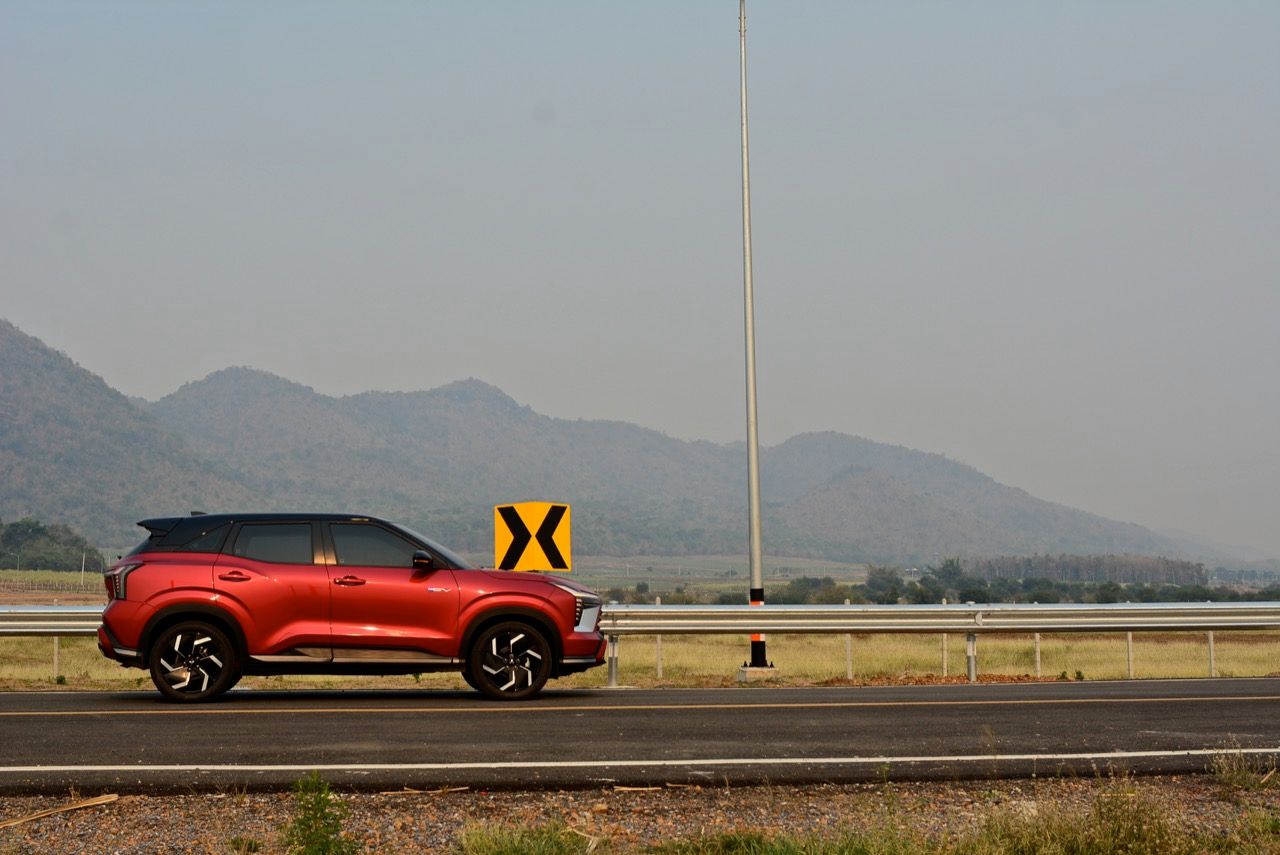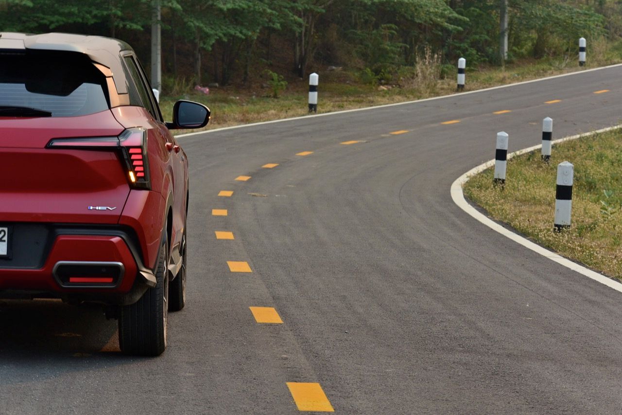 Xforce HEV ULTIMATE X ขับทางไกลดีเลย โดยเฉพาะการทรงตัวที่ความเร็วสูง การรักษาสมดุลในโค้งมุมแคบ ถ่ายเทน้ำหนัก การทำงานของ AYC ระบบควบคุมการขับเคลื่อน และสมดุลขณะเข้าโค้ง ไม่เปิดโอกาสให้รถเสียหลักและจะเข้ามาแทรกแซงทันทีที่รถเริ่มเสียอาการ ไม่ว่าจะเป็นการขับเข้าโค้งด้วยความเร็วเกินบนทางฝุ่น การดึงรถกลับเข้าสู่เส้นทางในโค้งมุมแคบ โหมด Wet ใช้งานได้ดีเมื่อฝนตก เหมาะกับสถานการณ์ขับขี่ขณะที่มีน้ำขังอยู่บนผิวถนน ระบบ Adaptive Cruise Control ช่วยลดอาการเมื่อยล้าเมื่อขับทางไกล หยุดและเคลื่อนตัวตามรถคันข้างหน้า แต่ก็ต้องมีการกดสวิชท์ re-Set ทุกครั้งที่คันหน้าเคลื่อนตัว