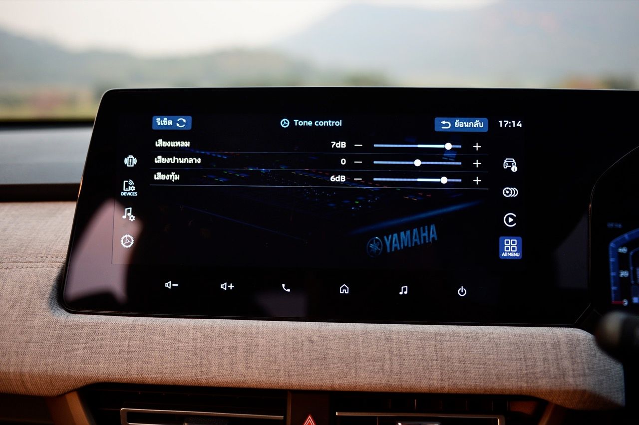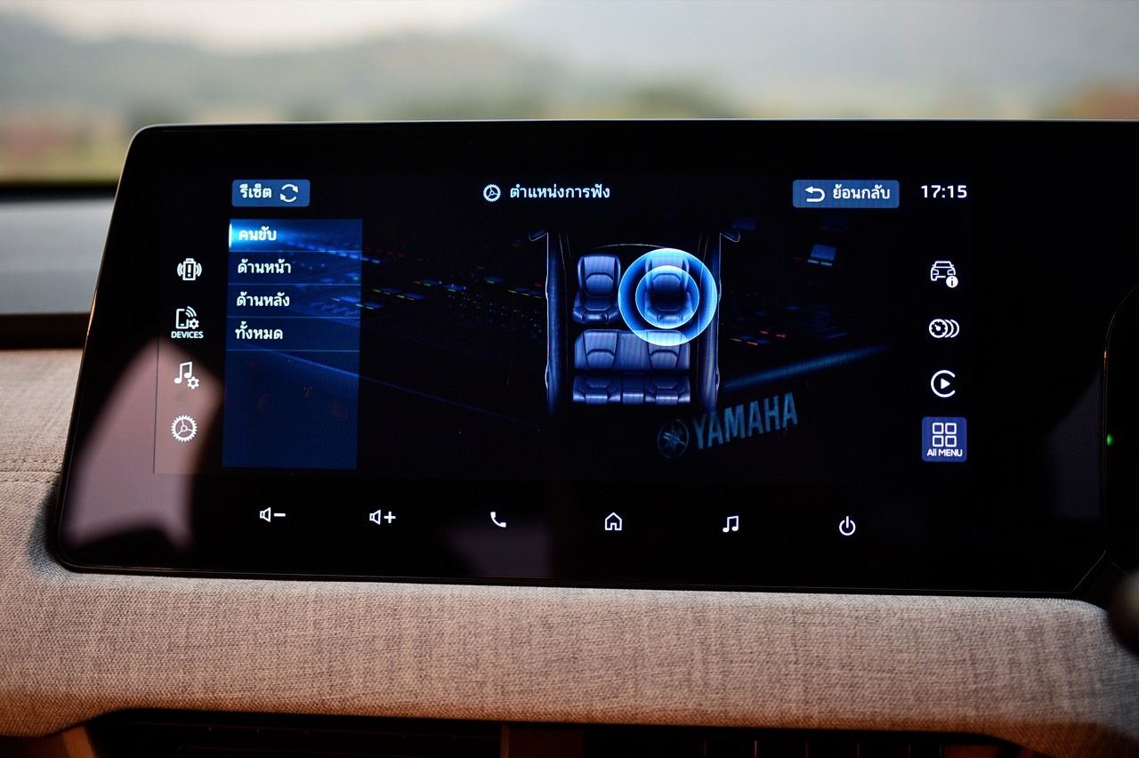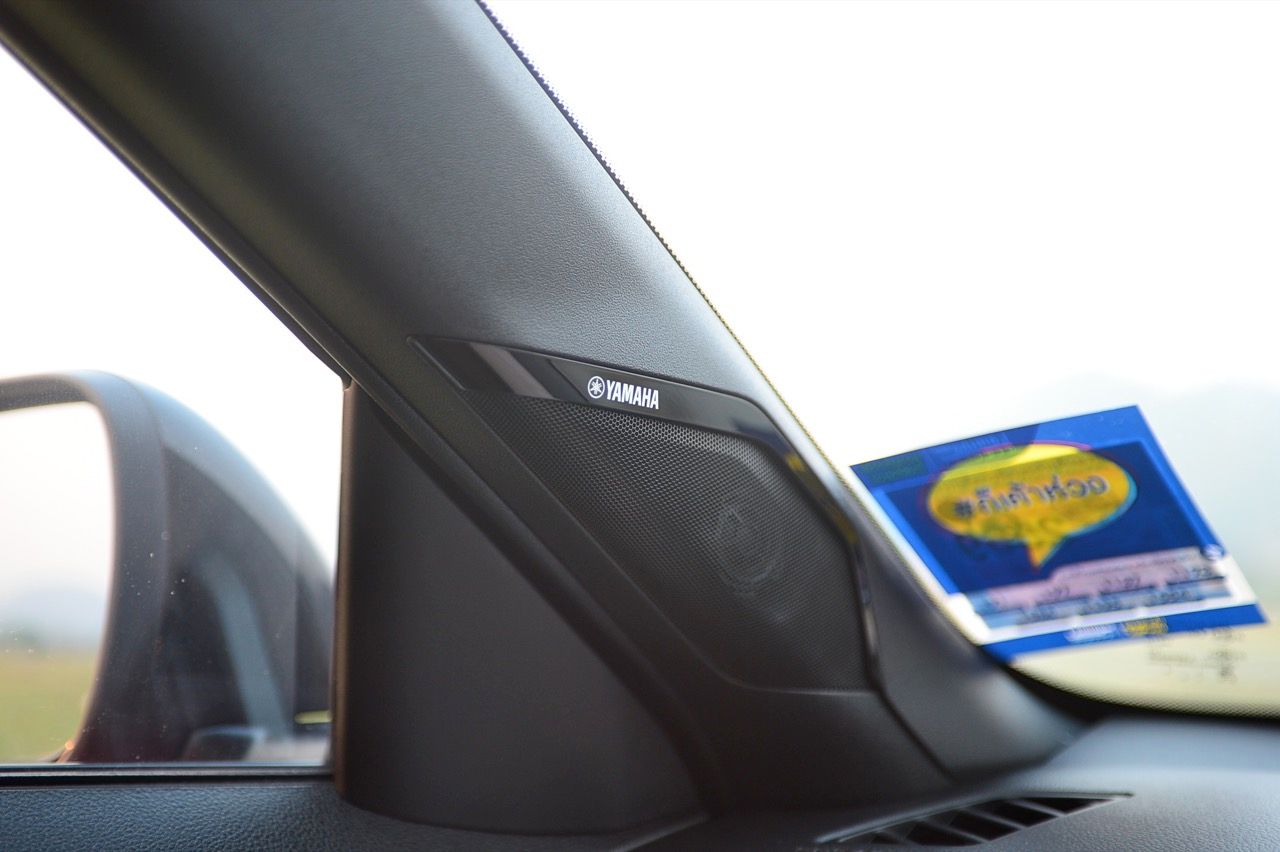 อีกตำแหน่งที่ Mitsubishi นำเสนอได้ดี ก็คือ เครื่องเสียง Yamaha ซึ่งถือเป็นแบรนด์เครื่องเสียงชั้นนำของญี่ปุ่นที่ผมใช้อยู่ในบ้าน (Yamaha DSP A1 AV) Xforce ติดตั้งเครื่องเสียง dynamic sound yamaha premium sound system พร้อมลำโพง 8 ตำแหน่ง การติดตั้งชุดลำโพงที่มีกำลังขับสูง ทำให้แผงประตู คอนโซล และชิ้นส่วนอื่นๆ ถูกปรับให้ต้องรองรับพลังเบสที่ออกมาจากลำโพงและอาจสร้าง resonance หรือเสียงรบกวนซึ่งกลายเป็นแรงสั่นสะเทือนที่ไม่พึงประสงค์เมื่อเล่นเพลงดังๆ ทวิตเตอร์คู่หน้า อยู่ในเสา A ส่วนชายล่างของบานประตูทั้งสี่ก็มีลำโพง Yamaha ฝังอยู่เพื่อสร้างมิติ ความชัดและลึกของดนตรี dynamic sound yamaha premium มาพร้อมโปรแกรมการปรับแต่งเสียง 4 แบบ เพื่อให้มีความสมดุลกับประเภทของเพลงที่เล่น เมื่อลองฟังดู ก็ต้องบอกว่า ลำโพงที่ให้เสียงเป็นธรรมชาติของ Yamaha ใน Xforce เหมาะกับเพลงคลาสสิก เพลง Jazz หรือดนตรีบรรเลงที่ใช้เครื่องดนตรีธรรมชาติมากที่สุด ส่วนเพลงวัยรุ่นว้าวุ่นสมัยใหม่ถ้าชอบก็เล่นได้เลย