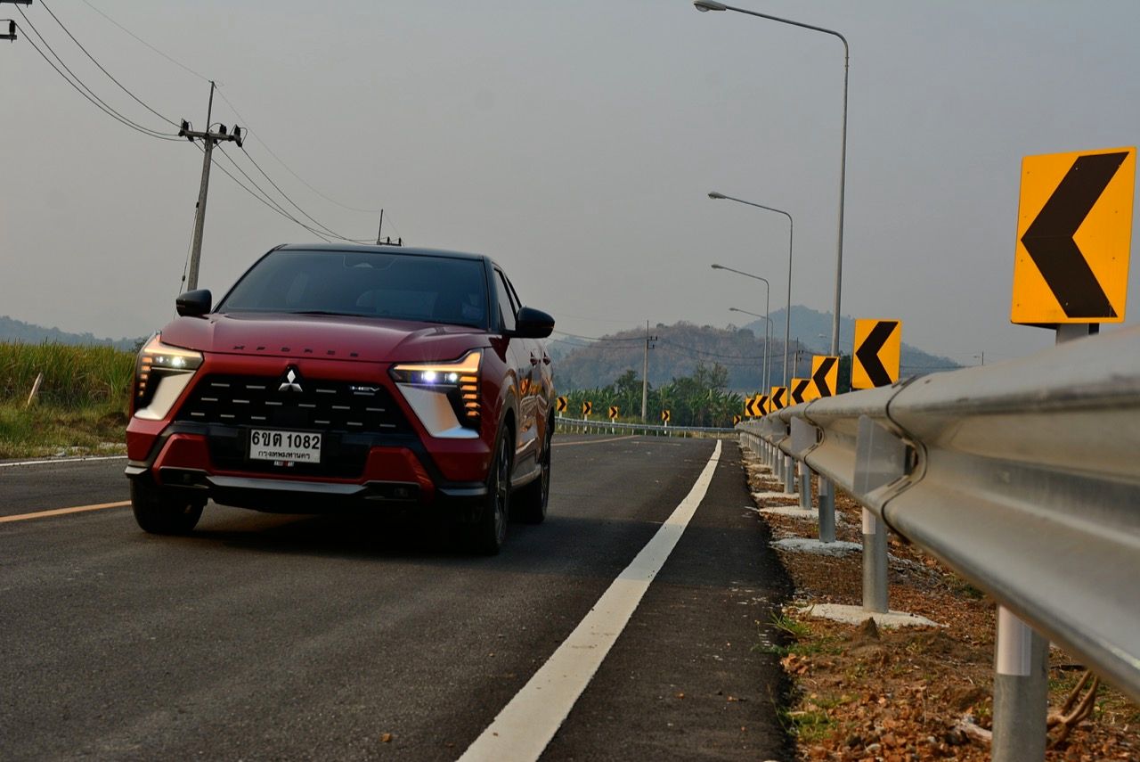 MITSUBISHI e:MOTION ระบบขับเคลื่อนไฮบริด Generation ล่าสุด มีการปรับให้เครื่องยนต์ไฮบริดตอบสนองได้ดี โดยเฉพาะอัตราเร่งถือว่าใช้ได้ รวมถึงอัตราสิ้นเปลืองเชื้อเพลิงที่ทำได้ค่อนข้างดีเลยทีเดียวแม้บางช่วงจะลองทดสอบการทรงตัวที่ความเร็วสูงแต่อัตราสิ้นเปลืองยังทำได้ระดับ 16.8-17.2 กิโลเมตรต่อลิตร Mitsubishi เคลมตัวเลขประหยัดน้ำมันของ Xforce เฉลี่ยอยู่ที่ 24.4 กิโลเมตร/ลิตร เมื่อลองขับบนถนนจริง แบบใช้ความเร็วตามกฏหมายกำหนด ทำได้ 17 กิโลเมตรต่อลิตร บนเส้นทางที่อุดมไปด้วยเนินสลับโค้งยาวลัดเลาะไปตามหุบเขาแถวอ่างเก็บน้ำห้วยแม่ตะกึง กาญจนบุรี