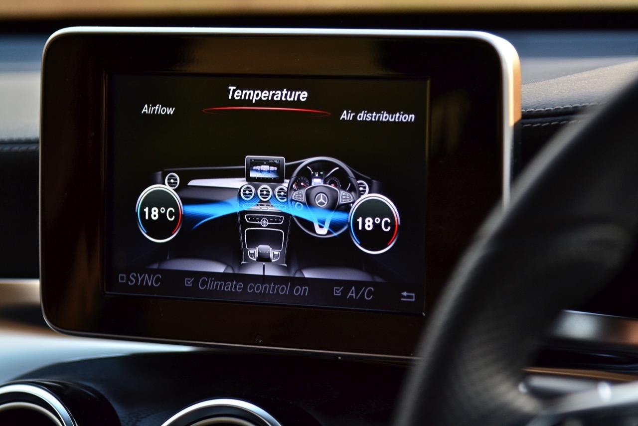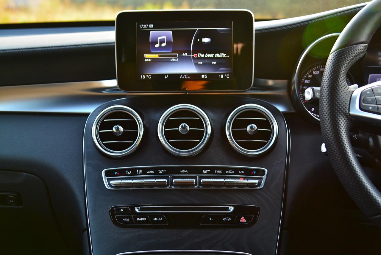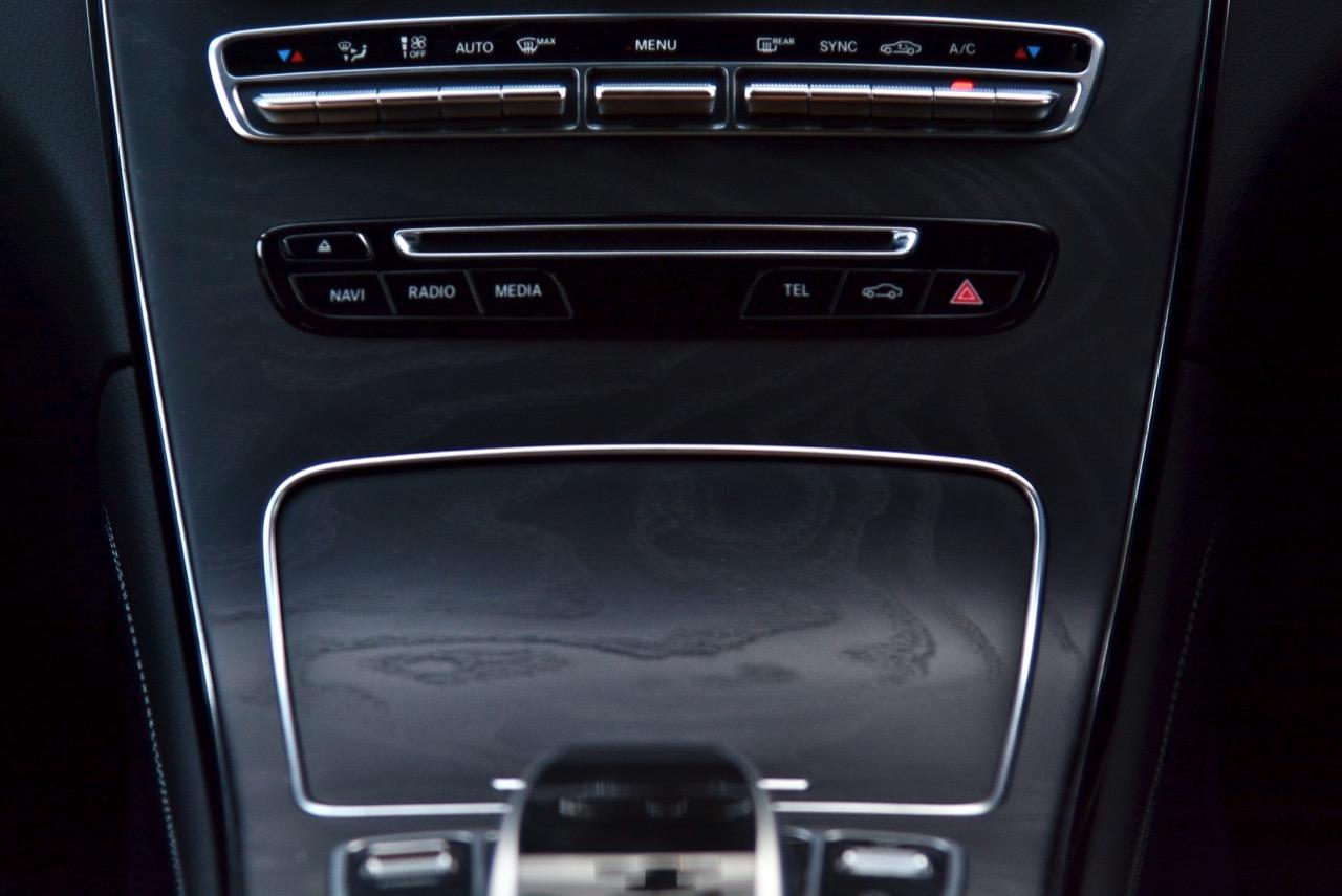 ต่ำลงมาจากจอมอนิเตอร์ระบบสัมผัสเป็นช่องแอร์ทรงกลม 3 วง กับแผงควบคุมอุณหภูมิแบบใหม่ที่ใช้งานได้ง่ายขึ้น ระบบสัมผัสแบบทัชแพดครอบคลุมการใช้งานโดยสามารถเขียนตัวอักษรหรือตัวเลข ระบบ Comand Online สื่อสารกับโลกภายนอกด้วยอินเทอร์เน็ต ตำแหน่งศูนย์กลางของการแสดงผลแบบบูรณาการด้วยแผงควบคุมระบบปรับอากาศ ซึ่งจะถูกโยงขึ้นไปแสดงผลที่หน้าจอสำหรับการปรับตั้งระบบแอร์ในห้องโดยสาร ฟังก์ชั่นอันหลากหลายของการปรับตั้งที่ทำออกมาให้มีความน่าใช้งานผสมกับความง่ายในการเข้า-ออกจากเมนู จอภาพและกราฟิกที่สร้างความคมชัดด้วยรูปแบบที่น่าสนใจ ทำให้ภายในของ Mercedes Benz GLC Coupe มีความโดดเด่นกว่ารถคู่แข่งแบบเห็นๆ