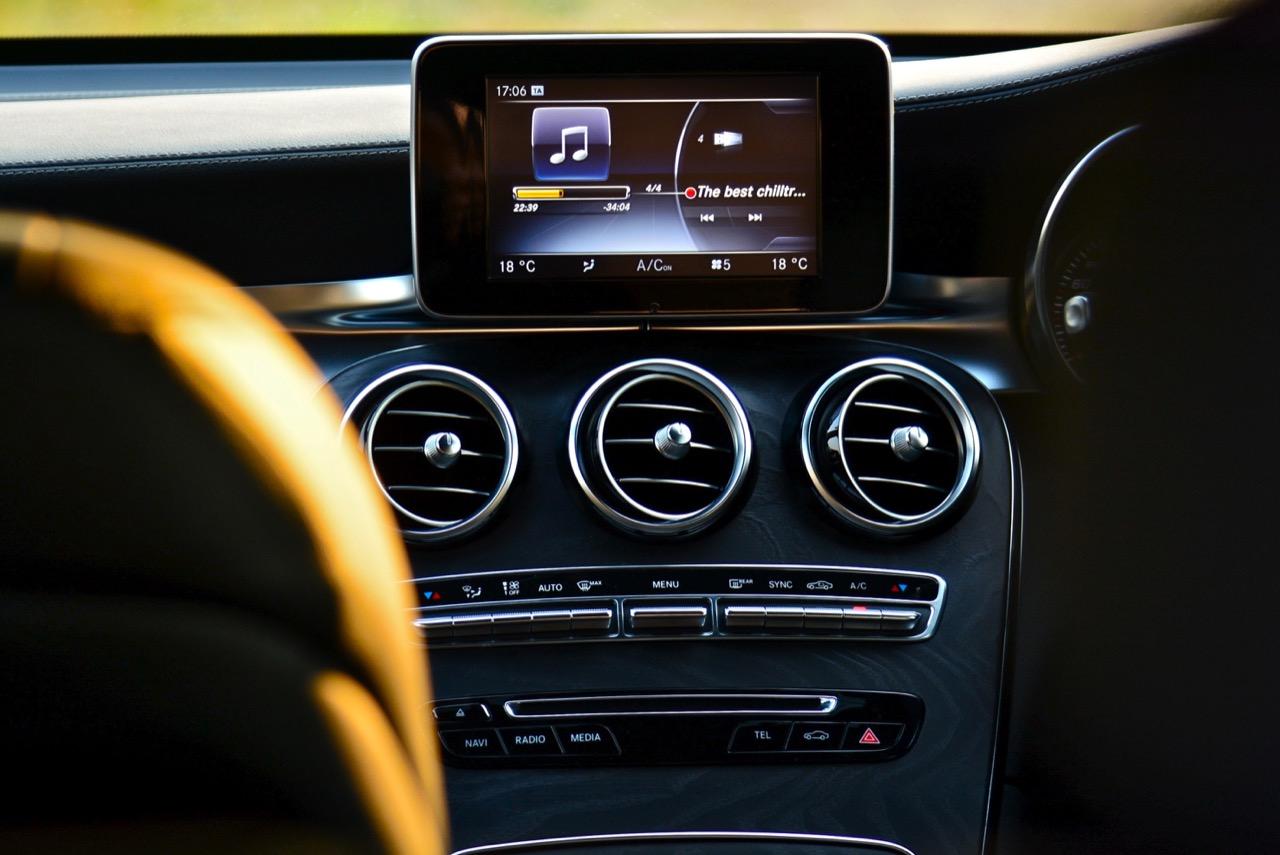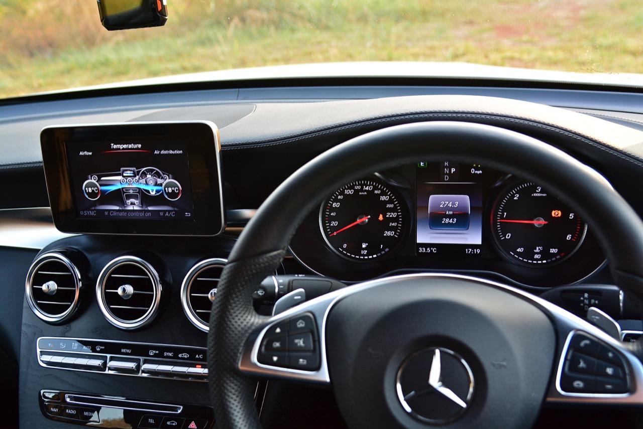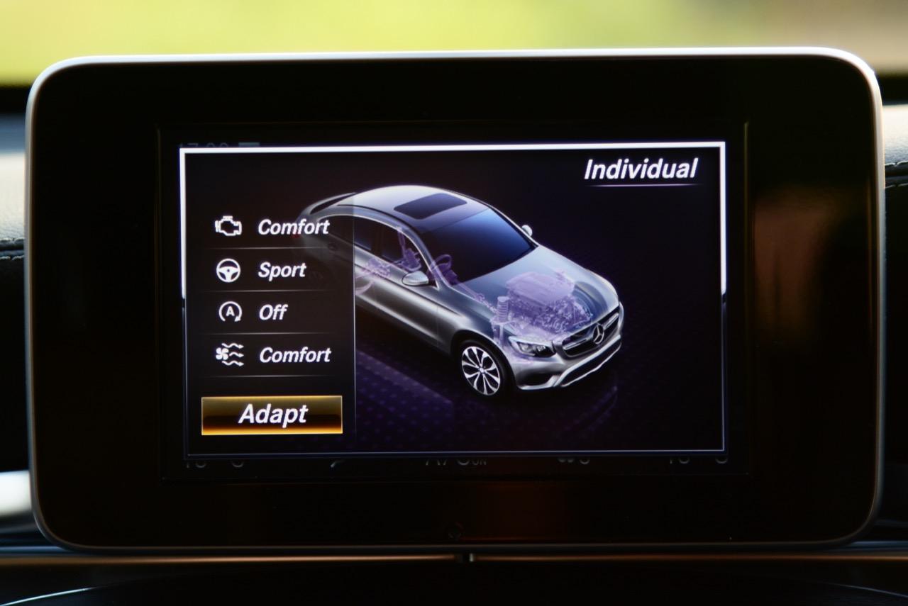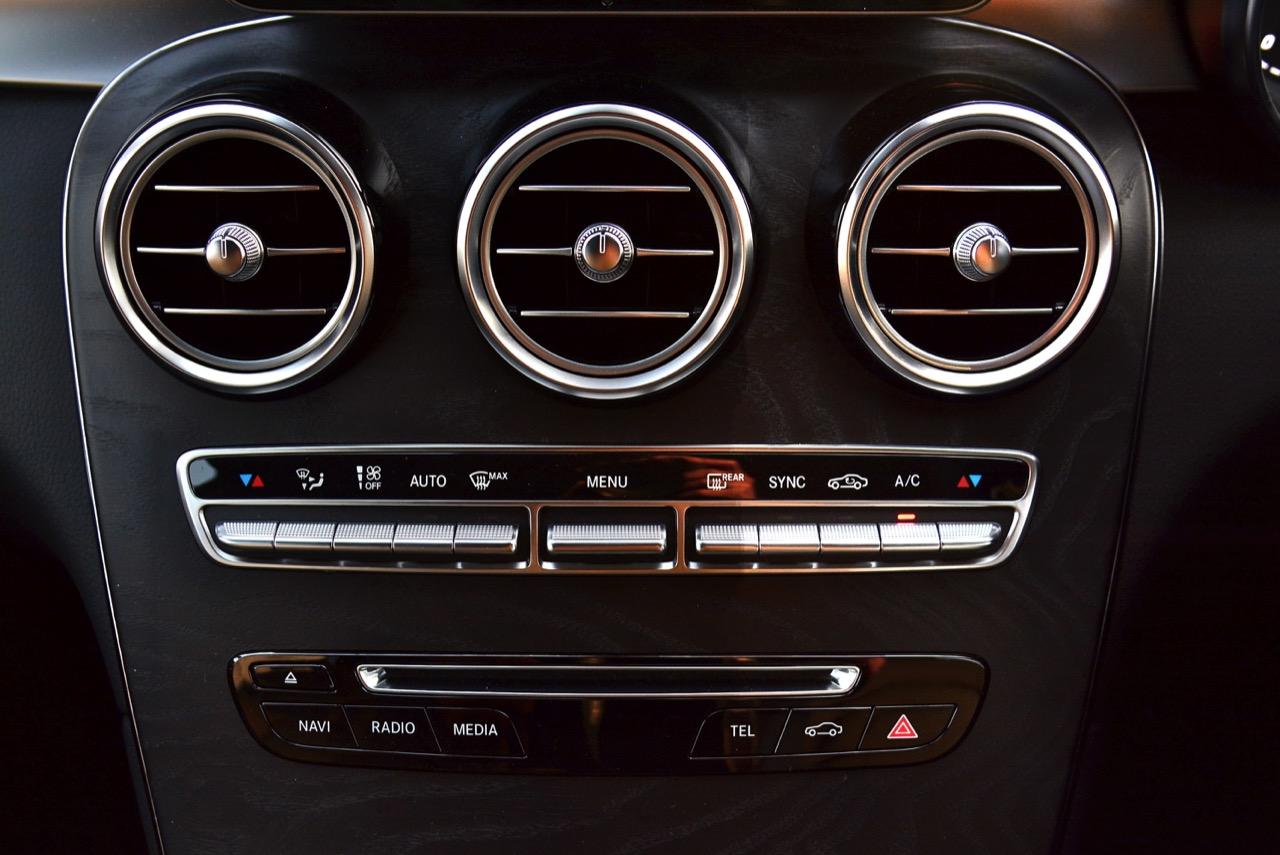 ต่ำลงมาจากจอมอนิเตอร์ระบบสัมผัสเป็นช่องแอร์ทรงกลม 3 วง กับแผงควบคุมอุณหภูมิแบบใหม่ที่ใช้งานได้ง่ายขึ้น ระบบสัมผัสแบบทัชแพดครอบคลุมการใช้งานโดยสามารถเขียนตัวอักษรหรือตัวเลข ระบบ Comand Online สื่อสารกับโลกภายนอกด้วยอินเทอร์เน็ต ตำแหน่งศูนย์กลางของการแสดงผลแบบบูรณาการด้วยแผงควบคุมระบบปรับอากาศ ซึ่งจะถูกโยงขึ้นไปแสดงผลที่หน้าจอสำหรับการปรับตั้งระบบแอร์ในห้องโดยสาร ฟังก์ชั่นอันหลากหลายของการปรับตั้งที่ทำออกมาให้มีความน่าใช้งานผสมกับความง่ายในการเข้า-ออกจากเมนู จอภาพและกราฟิกที่สร้างความคมชัดด้วยรูปแบบที่น่าสนใจ ทำให้ภายในของ Mercedes Benz GLC Coupe มีความโดดเด่นกว่ารถคู่แข่งแบบเห็นๆ