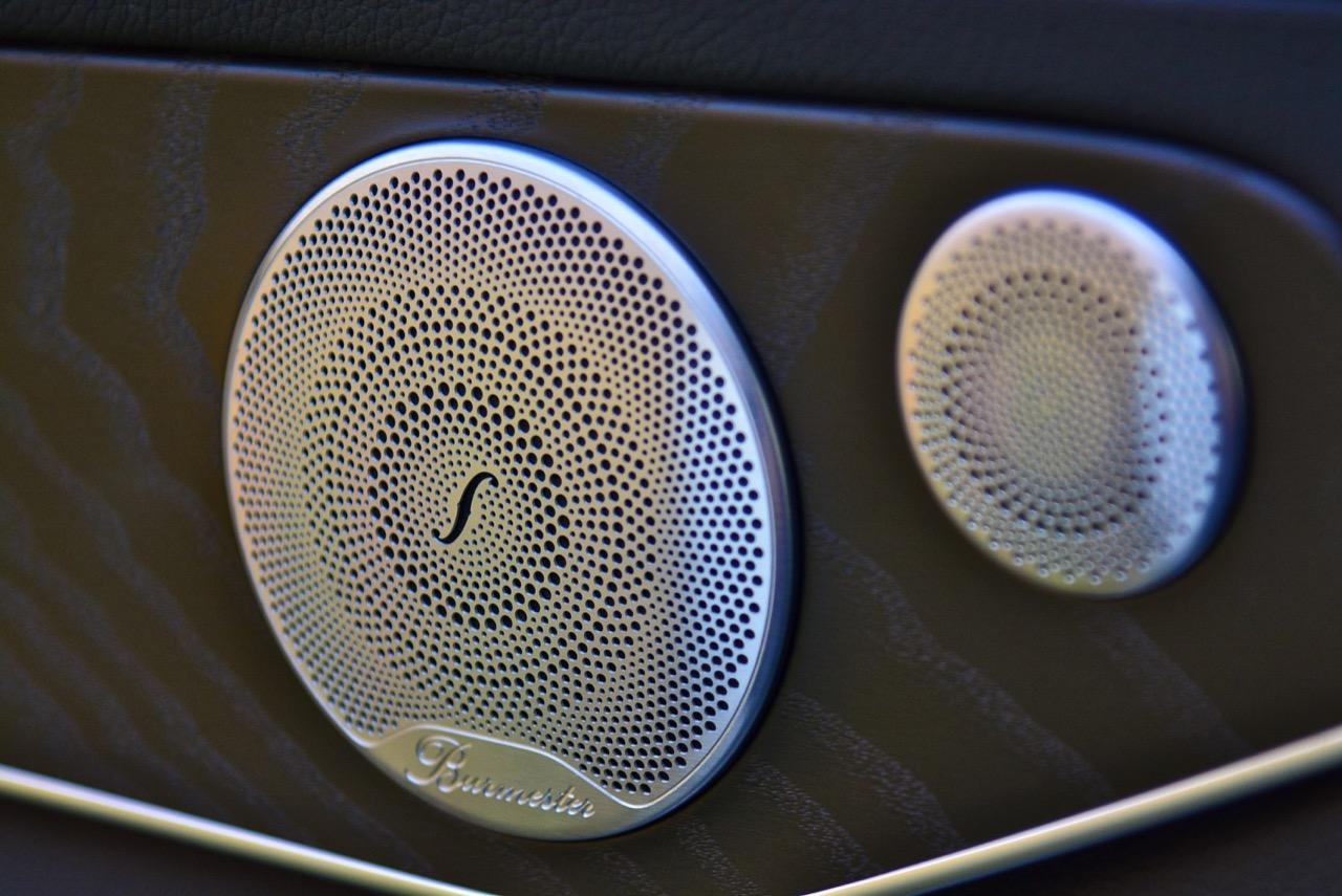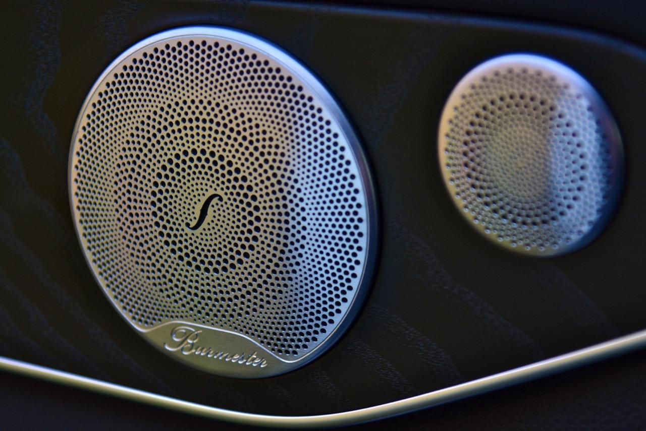 เครื่องเสียงติดรถยี่ห้อ Burmester High-End Surround Sound System พร้อมลำโพงคุณภาพสูงปรี้ด 12 ดอก จัดวางในตำแหน่งที่ได้รับการปรับตั้งและคำนวณมิติของเสียงมาเป็นอย่างดี แม้จะไม่กังวานใสกิ๊งเหมือน E220d AMG แต่ความคมชัดและมิติที่ดีของเสียงเพลงที่เล่นผ่านชุดเครื่องเสียงกับลำโพงคุณภาพสูงจะมอบความบันเทิงให้กับเจ้าของที่ชอบขับชอบฟังชนิดจุใจ