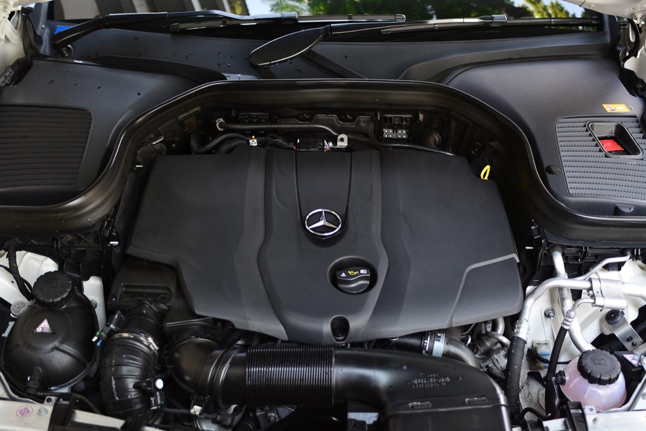เครื่องยนต์ของ GLC 250d Coupe รุ่น Dynamic Plus เป็นเครื่องดีเซลคอมมอลเรลไดเรคอินเจคชั่นแบบแถวเรียง 4 สูบ วางตามยาวขับเคลื่อน 4 ล้อ ระบบอัดอากาศแบบเทอร์โบแปรผันพร้อมอินเตอร์คูลเลอร์ช่วยลดอุณหภูมิของไอดีก่อนเข้าสู่ห้องเผาไหม้ เพื่อประสิทธิภาพสูงสุดในการจุดระเบิด เครื่องดีเซลตัวนี้มีความจุ 2,143 ซีซี ฝาสูบแบบ DOHC 4 วาล์วต่อสูบ อัตราส่วนกำลังอัด 16.2:1 จ่ายเชื้อเพลิงด้วยระบบยิงตรงคอมมอลเรลไดเรคอินเจคชั่น ให้กำลังสูงสุด 150 กิโลวัตต์ หรือ 204 แรงม้า ที่ 3,800 รอบต่อนาที ดูเหมือนแรงม้าจะธรรมดาเกินไปเมื่อเทียบกับราคาค่าตัว 4.5 ล้านบาท แต่ขอให้ดูที่แรงบิด 500 นิวตันเมตร ซึ่งมาในรอบต่ำแค่ 1,600-1,800 รอบต่อนาที ระบบส่งกำลังใช้เกียร์ขับ 4 แบบ 9G-Tronic Plus อัตราเร่งจาก 0-100 กิโลเมตรใน 7.6 วินาที ความเร็วสูงสุด 220 กิโลเมตรต่อชั่วโมง