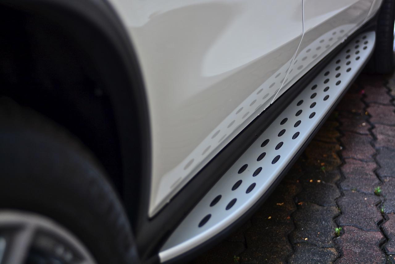 ทรงด้านข้างของ GLC 250d Coupe นั้นโดนใจลูกค้าไฮโซจำนวนมากจากการดีไซน์ให้มีส่วนผสมระหว่างรถแฮตช์แบ็คกับรถสปอร์ตที่เหนี่ยวนำเอาพื้นที่ใช้สอยภายในห้องโดยสารเป็นจุดขาย แนวหลังคาที่ค่อยๆ ลาดเทไปยังส่วนท้ายคล้ายกับรถคูเป้ กรอบกระจกกรุด้วยงานอัลลอยสีเงินยกระดับความสง่างาม กระจกมองข้างมีเลนส์ไฟเลี้ยวหลอด LED ตามสมัยนิยม เสาหน้าบางและมีระดับความลาดเอียงสอดคล้องกับแนวหลังคาที่เทลาดไปยังส่วนท้ายด้วยความกลมกลืน เสาท้ายมีกระจกบานหลังทรงโค้งที่ค่อนข้างบดบังมุมมองส่วนท้ายของตัวรถจากการออกแบบให้มันเป็นรถที่มีท้ายแบบแฮตช์แบ็ค ทั้งๆ ที่ทำตัวเป็นรถ SUV ขับเคลื่อน 4 ล้อ