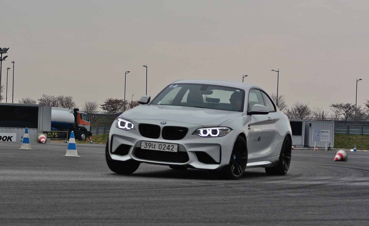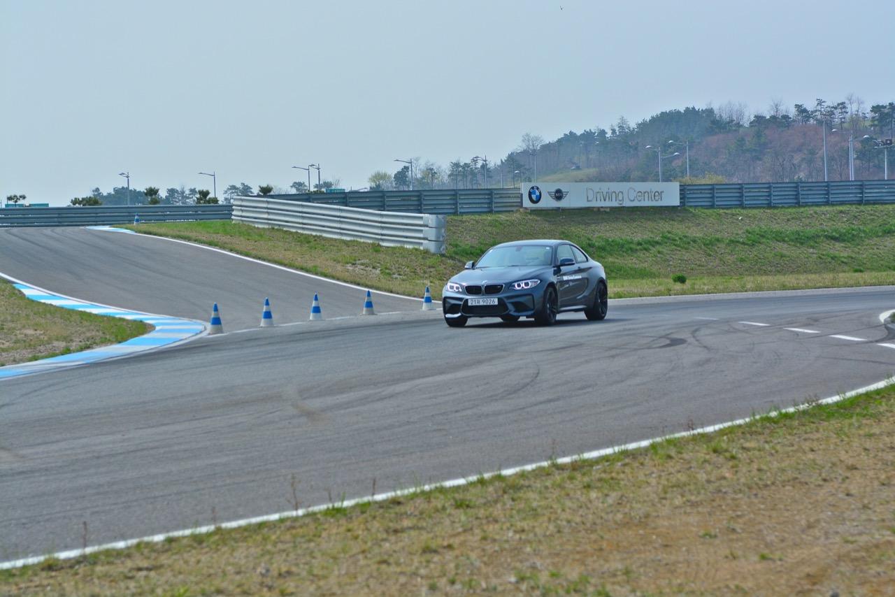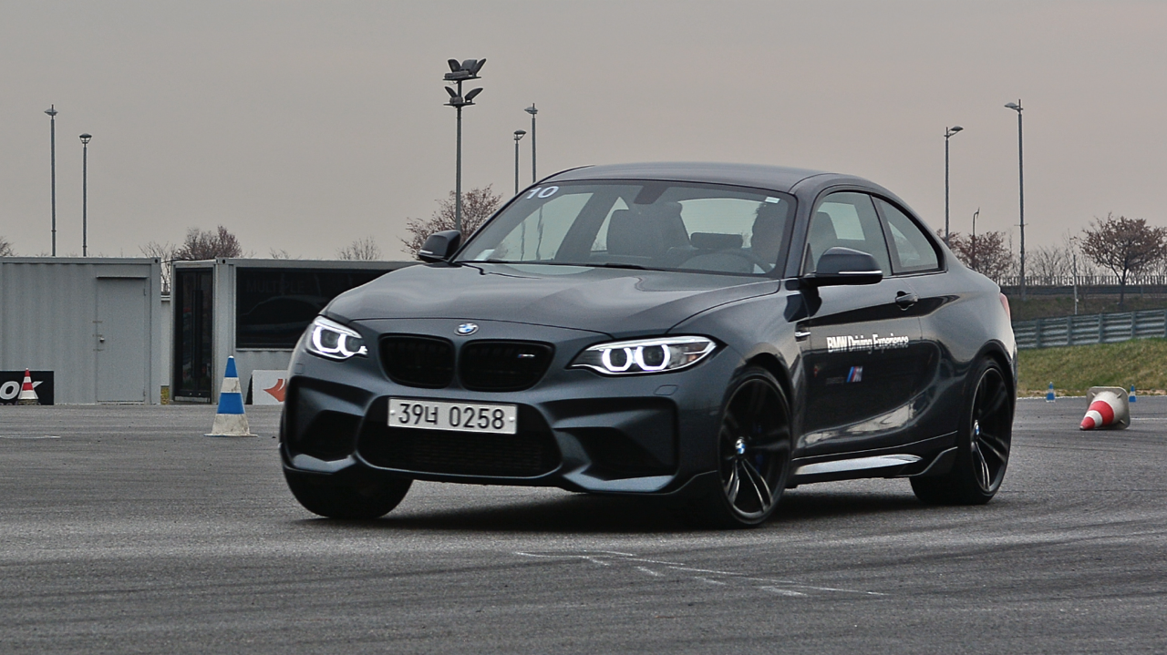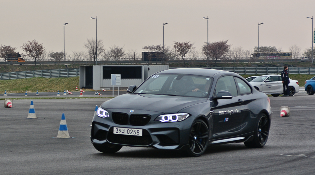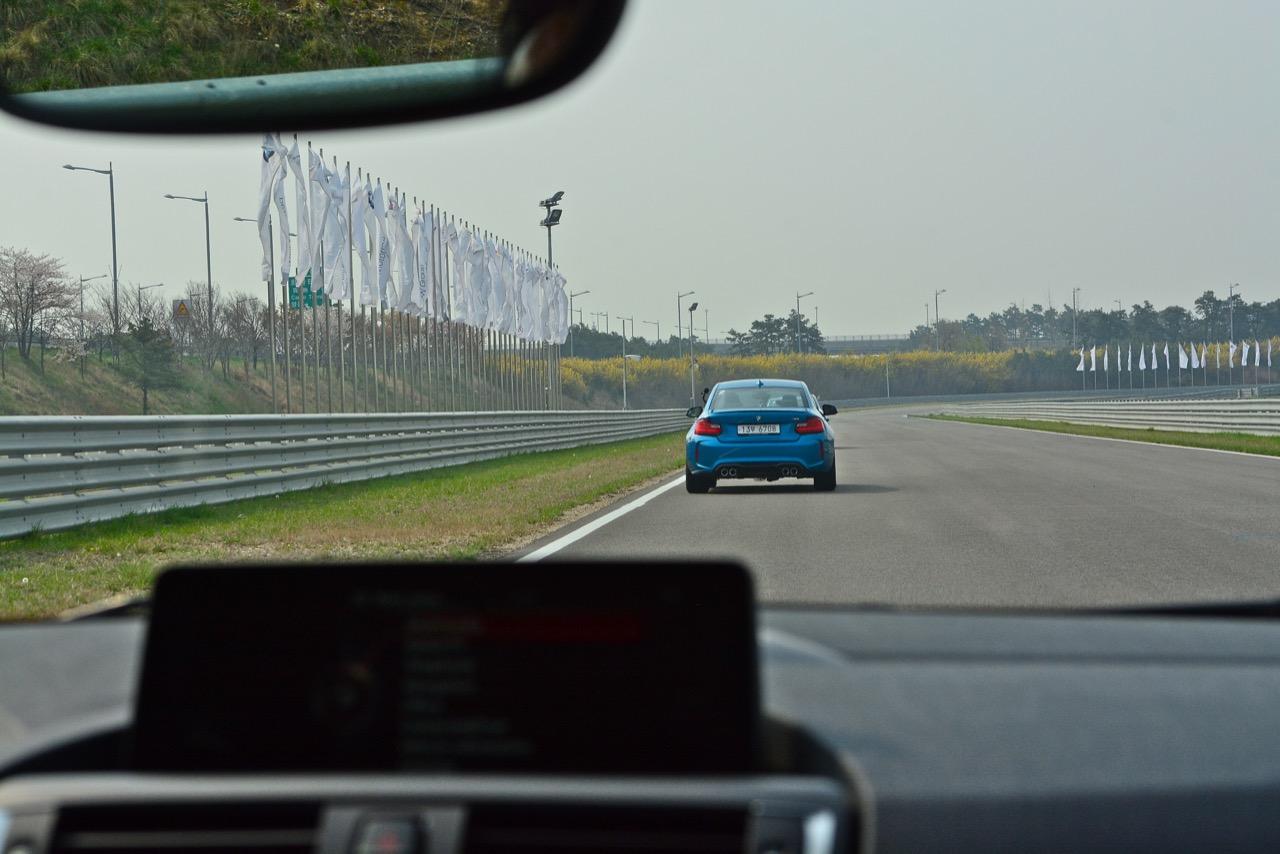 ผมเดินไปที่รถ M2 สีเทา เปิดประตูแล้วขึ้นไปนั่งในตำแหน่งคนขับ กดปุ่มสตาร์ตเครื่องยนต์ ปรับระยะเบาะและพวงมาลัยให้สอดรับกับการขับในสนามทดสอบ ปรับโหมดไปที่ Sport Mode โยกคันเกียร์ M-DCT แล้วยกเท้าออกจากแป้นเบรกหมุนพวงมาลัย M servotronic โดยขับตาม M2 คันนำ ซึ่งเป็นรถ instructor อย่างว่านอนสอนง่าย BMW Driving Center Incheon สนามทดสอบมูลค่า 75.5 ล้านเหรียญของ BMW Group มีความยาวแค่ 2.6 กิโลเมตร แต่อุดมไปด้วยโค้งวกไปวนมาราวกับทางในสวนสนุกขนาดยักษ์ สนามแห่งนี้จำลองโค้งโหดๆ ในสนามแข่งทั่วโลก ซึ่งมีทั้งโค้งรูปตัวเอส และโค้งยูเทิร์นยาวเหยียดกับรันออฟที่น้อยนิดไม่เหลือเผื่อที่ทางสำหรับการกระทำที่ผิดพลาด