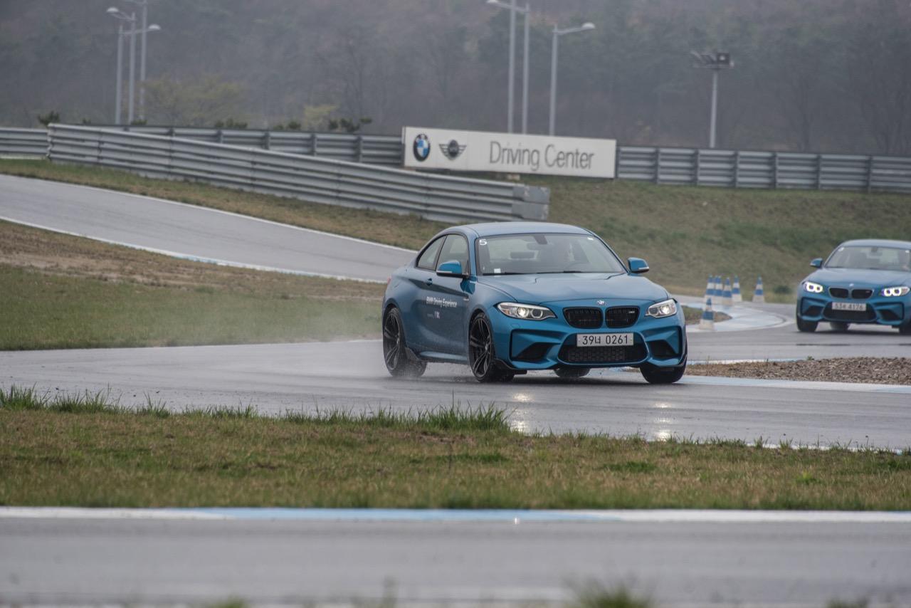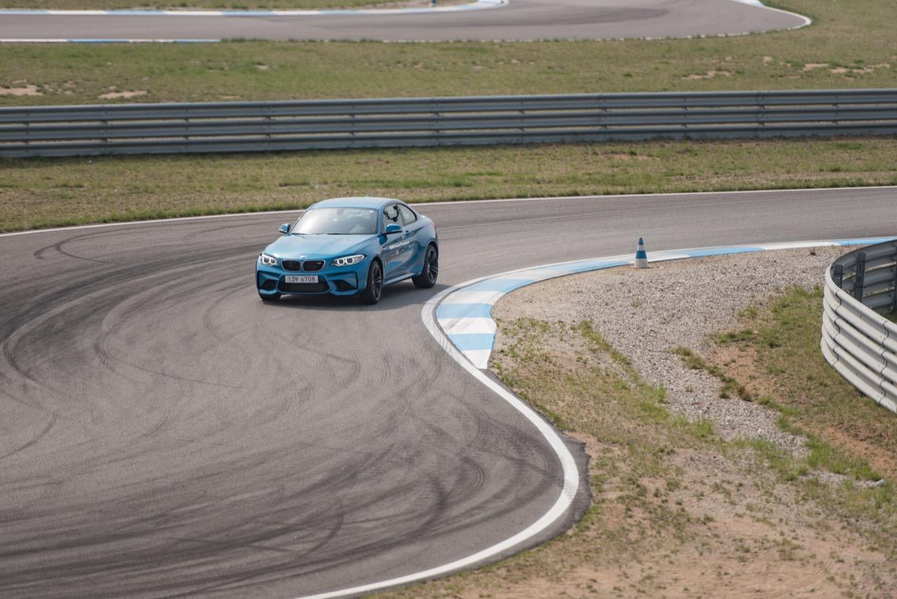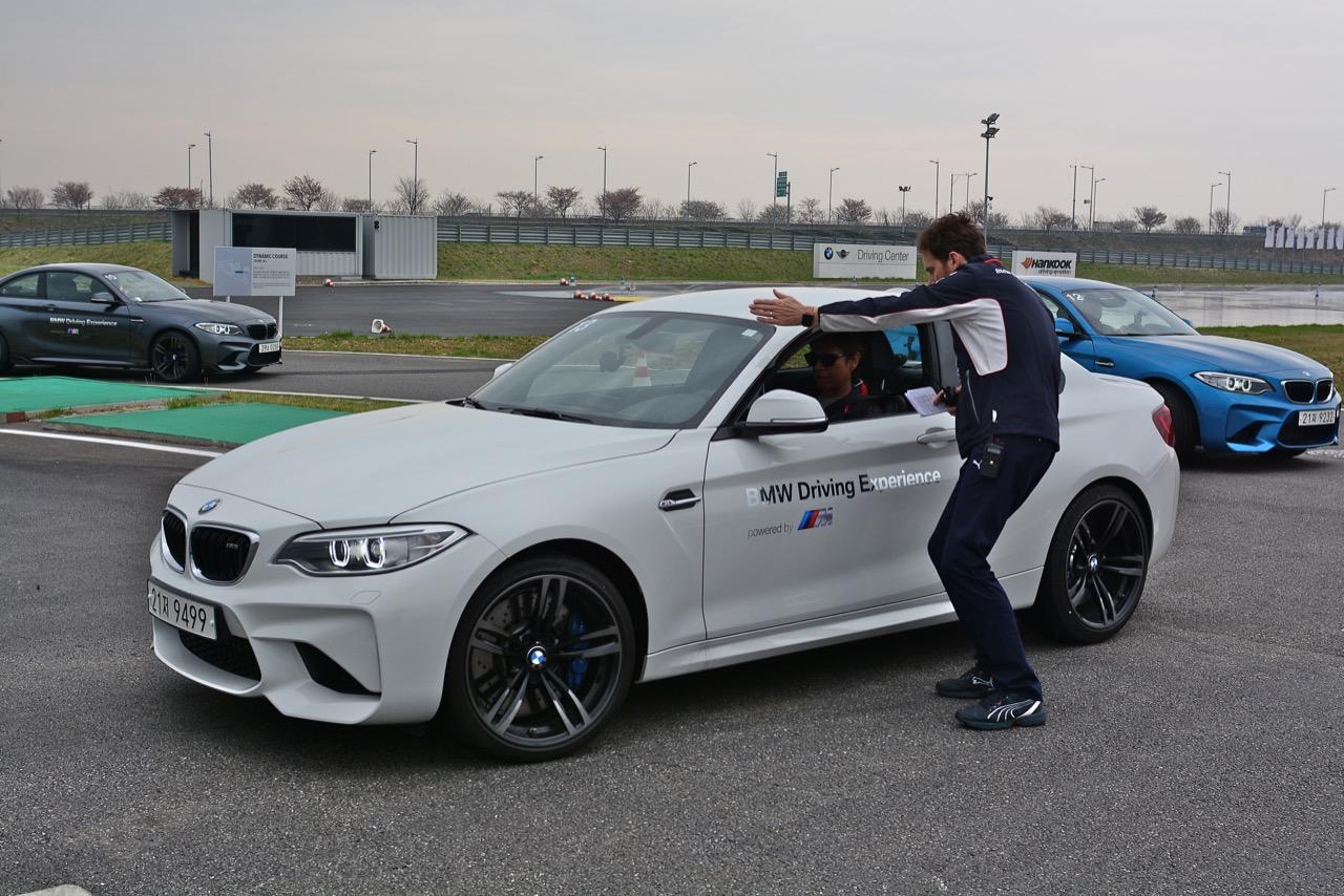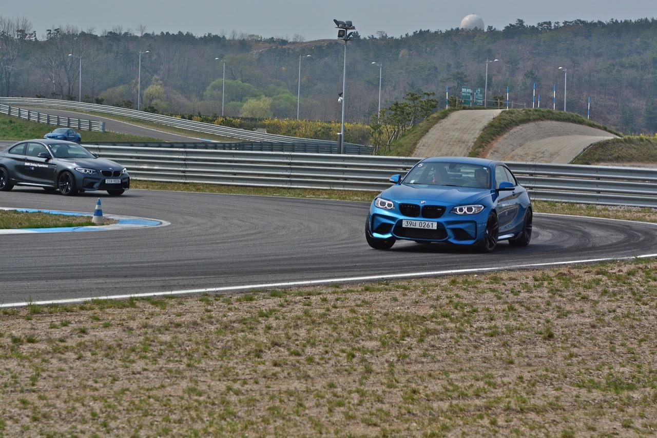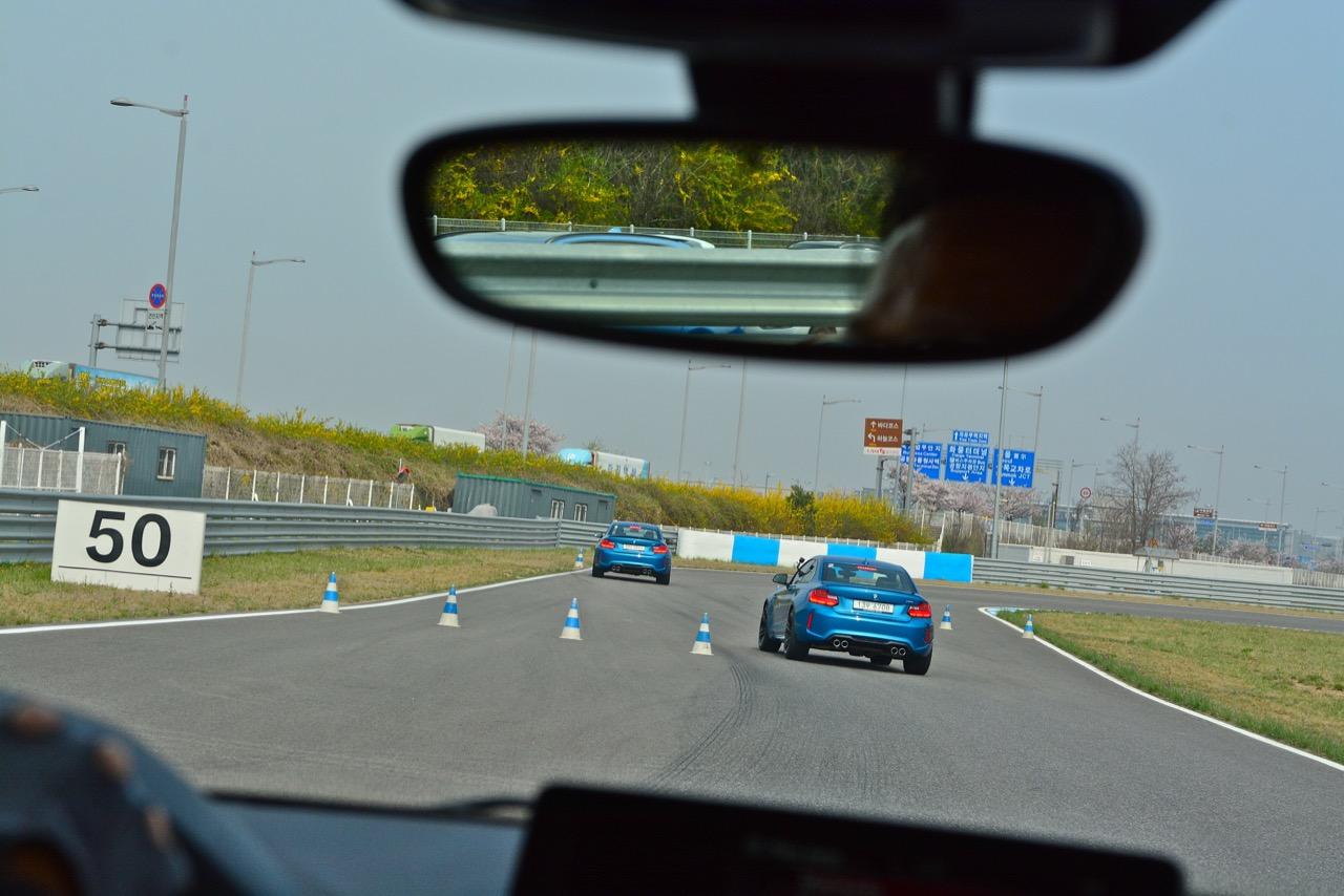 ผมเดินไปที่รถ M2 สีเทา เปิดประตูแล้วขึ้นไปนั่งในตำแหน่งคนขับ กดปุ่มสตาร์ตเครื่องยนต์ ปรับระยะเบาะและพวงมาลัยให้สอดรับกับการขับในสนามทดสอบ ปรับโหมดไปที่ Sport Mode โยกคันเกียร์ M-DCT แล้วยกเท้าออกจากแป้นเบรกหมุนพวงมาลัย M servotronic โดยขับตาม M2 คันนำ ซึ่งเป็นรถ instructor อย่างว่านอนสอนง่าย BMW Driving Center Incheon สนามทดสอบมูลค่า 75.5 ล้านเหรียญของ BMW Group มีความยาวแค่ 2.6 กิโลเมตร แต่อุดมไปด้วยโค้งวกไปวนมาราวกับทางในสวนสนุกขนาดยักษ์ สนามแห่งนี้จำลองโค้งโหดๆ ในสนามแข่งทั่วโลก ซึ่งมีทั้งโค้งรูปตัวเอส และโค้งยูเทิร์นยาวเหยียดกับรันออฟที่น้อยนิดไม่เหลือเผื่อที่ทางสำหรับการกระทำที่ผิดพลาด