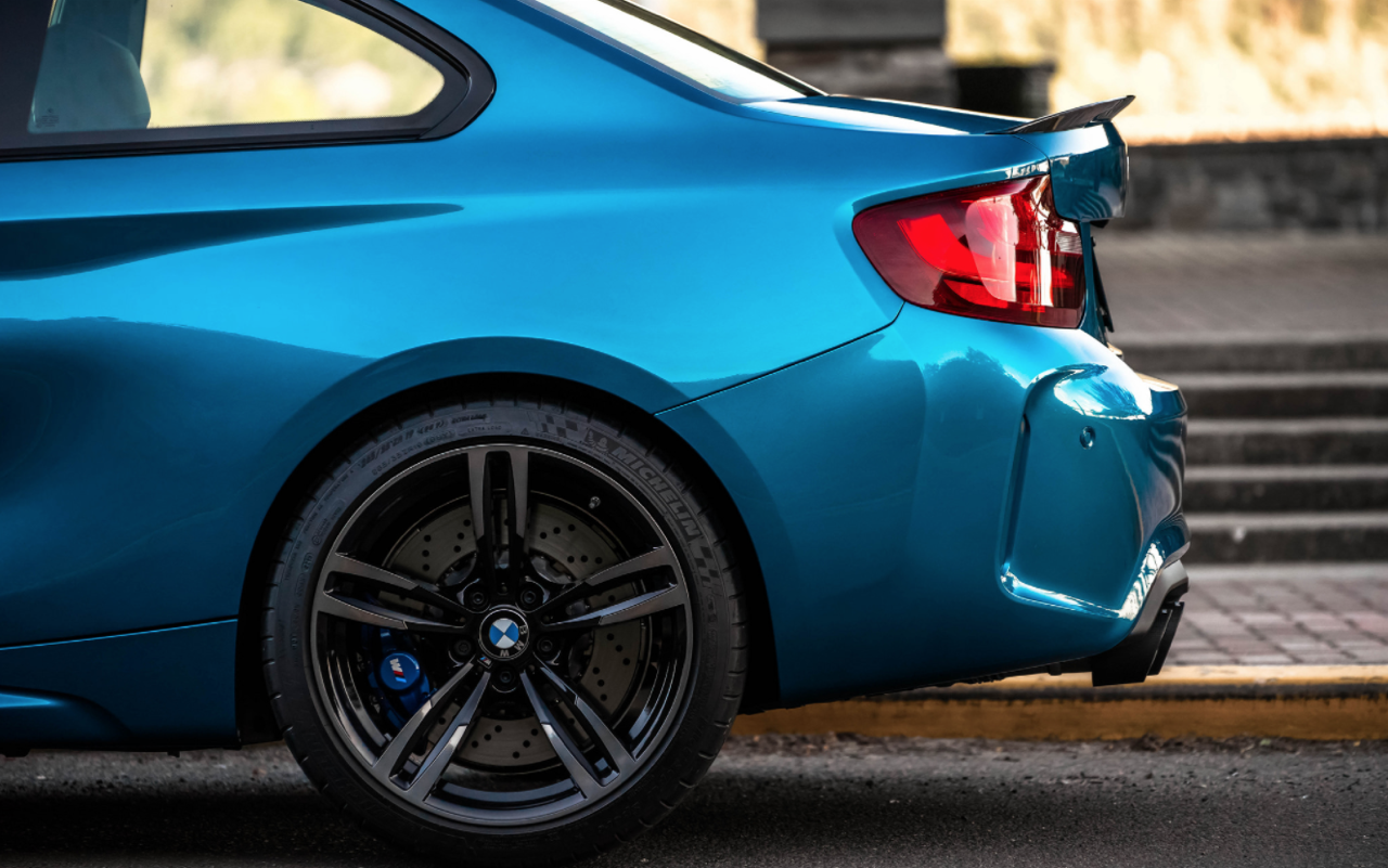 เนื่องจากมีราคาแค่ 5.8 ล้านบาท BMW M2 จึงไม่มีชิ้นส่วนคาร์บอนไฟเบอร์เหมือน M4 ที่มีราคาทะลุ 10 ล้านบาท ระบบห้ามล้อหรือเบรก ด้านหน้าใช้จานดิสแบบเหล็กหล่อพร้อมคาร์ลิปเปอร์เบรกแบบ 4 พอต ส่วนเบรกหลังจัดคาร์ลิปเปอร์เล็กแค่ 2 พอต จานเบรกถูกเจาะรูเพื่อการระบายความร้อนป้องกันอาการเบรกเฟรด ผ้าเบรก M เกรดพิเศษจากโรงงานสามารถหยุดยั้งม้า 365 ตัว ให้ว่านอนสอนง่ายไม่วิ่งไปใส่กำแพงหรือรั้วในสนามทดสอบ แม้จะมีเสียงดังเวลาเบรกแต่ประสิทธิภาพของการเบรกนั้นดีเยี่ยม แถมยังมีอายุการใช้งานที่ยาวนานกว่าจานแบบคาร์บอนเซรามิก รวมถึงราคาที่ถูกกว่ามาก จานเบรกเหล็กหล่อด้านหน้าขนาด 380 มิลลิเมตร และจานเบรกหลังขนาด 370 มิลลิเมตร แผ่นดิสก์เบรกเป็นผลิตภัณฑ์ที่ผลิตจากอลูมิเนียม ช่วงล่างที่มีชิ้นส่วนน้ำหนักเบาทำจากอัลลอย ทำให้น้ำหนักใต้สปริงของเจ้า M2 ลดลงไปพอสมควรเมื่อควบรวมกับน้ำหนักที่เบาหวิวของล้ออัลลอย M ขนาด 19 นิ้ว กดคันเร่งเต็มๆ ก็แทบจะบินได้เลยทีเดียว!