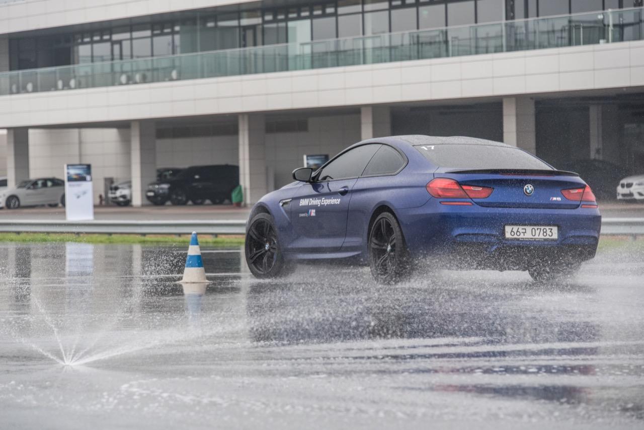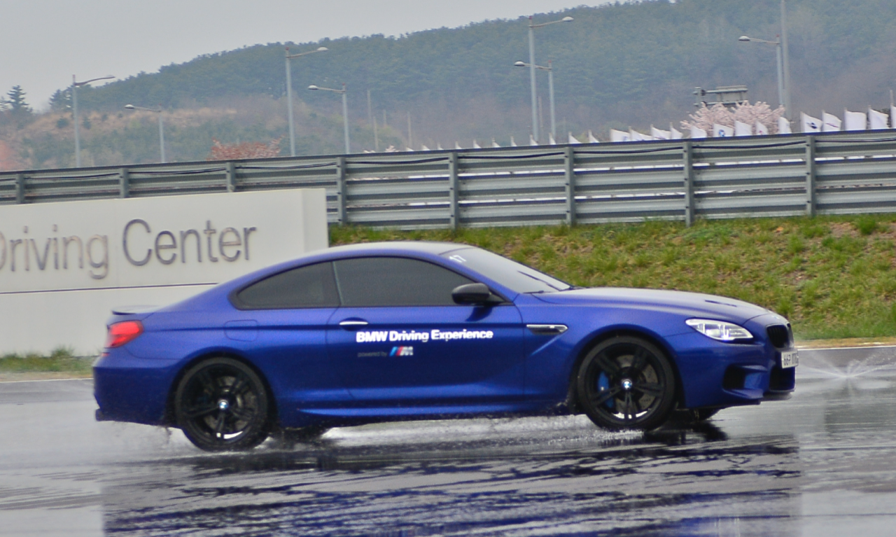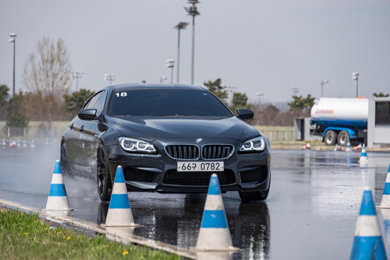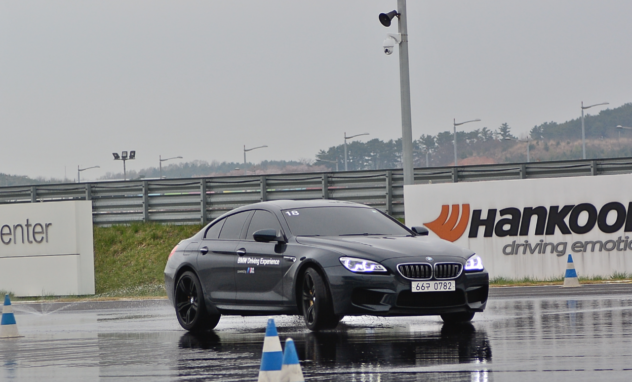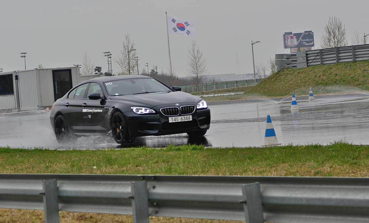 BMW M6 F13 มีความยาวเท่าๆ กับ BMW M5 F10 แต่แบนและเตี้ยมากกว่าด้วยการทำตัวเป็นรถสปอร์ตแนว GT ฐานล้อของมันยังสั้นกว่า M5 ถึง 133 มิลลิเมตร ให้การเลี้ยวที่ฉับไวกว่าเดิมก็จริงแต่ก็ยังไม่เท่ากับการเลี้ยวมุมแคบของ M2 เจ้า M6 เลี้ยวจิกโค้งแฉะๆ ที่เจิ่งนองไปด้วยน้ำในสนามทดสอบของ BMW ได้อย่างมั่นคง แค่ไม่ได้ปราดเปรียวเท่ากับ M ที่มีเรือนร่างเล็กกว่า การเร่งความเร็วออกจากโค้งรูปตัวยูบริเวณปลายโค้ง ทำได้แน่นอน แต่ระวังอาการท้ายปัดเมื่อแรงบิดทั้งหมดถูกเทลงไปที่ล้อคู่หลังซึ่งกำลังบดลงไปบนผิวถนนที่เปียกลื่น ครูฝึกชาวเยอรมันจาก BMW M ชี้ให้เห็นถึงอันตรายหากสภาพผิวถนนอยู่ในลักษณะที่เปียกชื้นมีฝนตก การควบคุมรถสปอร์ตกำลัง 560 แรงม้าให้อยู่กับร่องกับรอยไม่มีควาจำเป็นอะไรที่จะต้องขับให้เร็วจี๋ท่ามกลางตัวแปรที่ไม่เป็นใจ แม้ระบบช่วยทรงตัวจะทำงานตามหน้าที่ได้รับมอบหมาย แต่ก็มีขีดข้อจำกัดที่ขึ้นตรงกับความเร็ว ยิ่งเร็วเท่าไรโอกาสที่จะเกิดความผิดพลาดก็ยิ่งมากขึ้นเท่านั้น