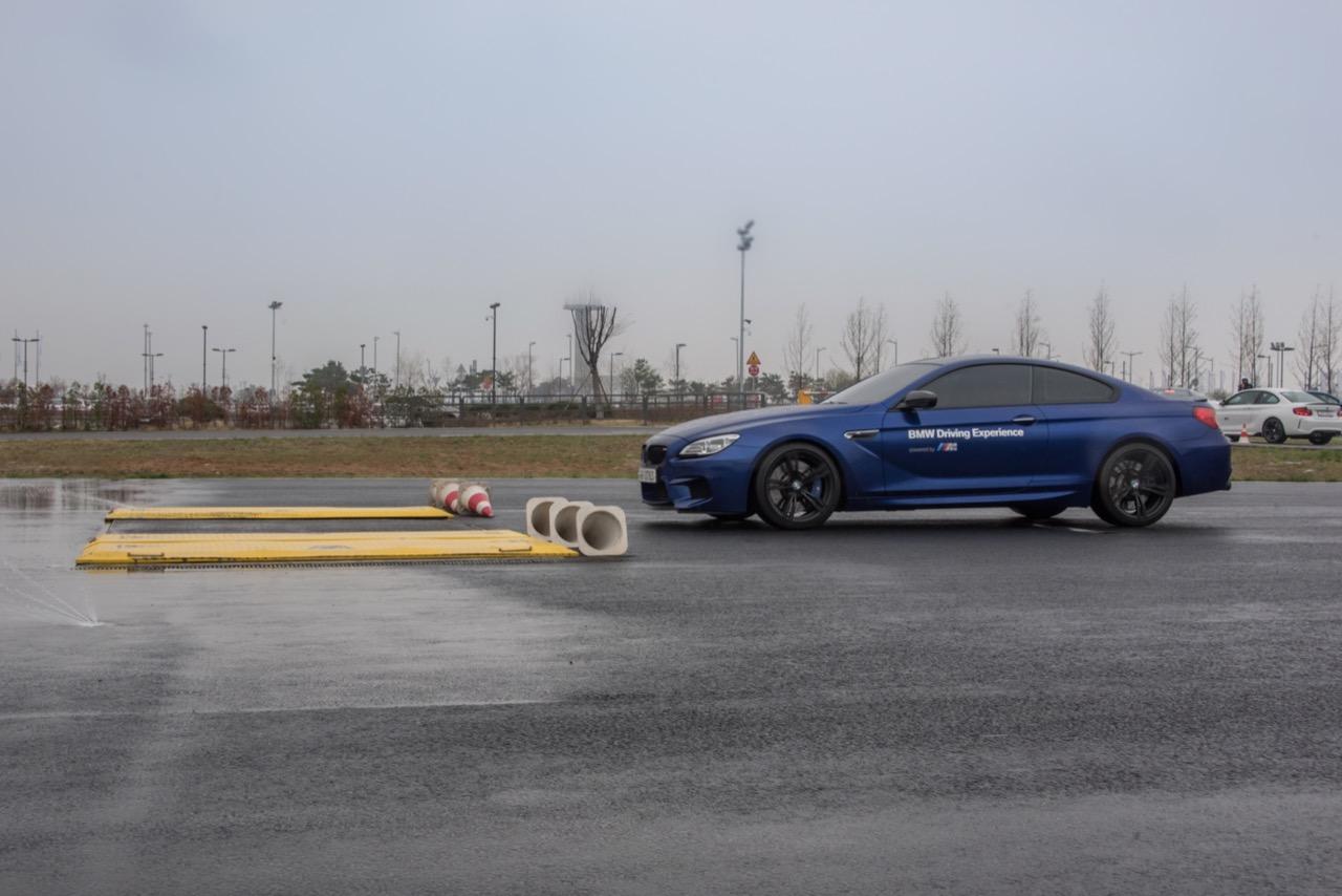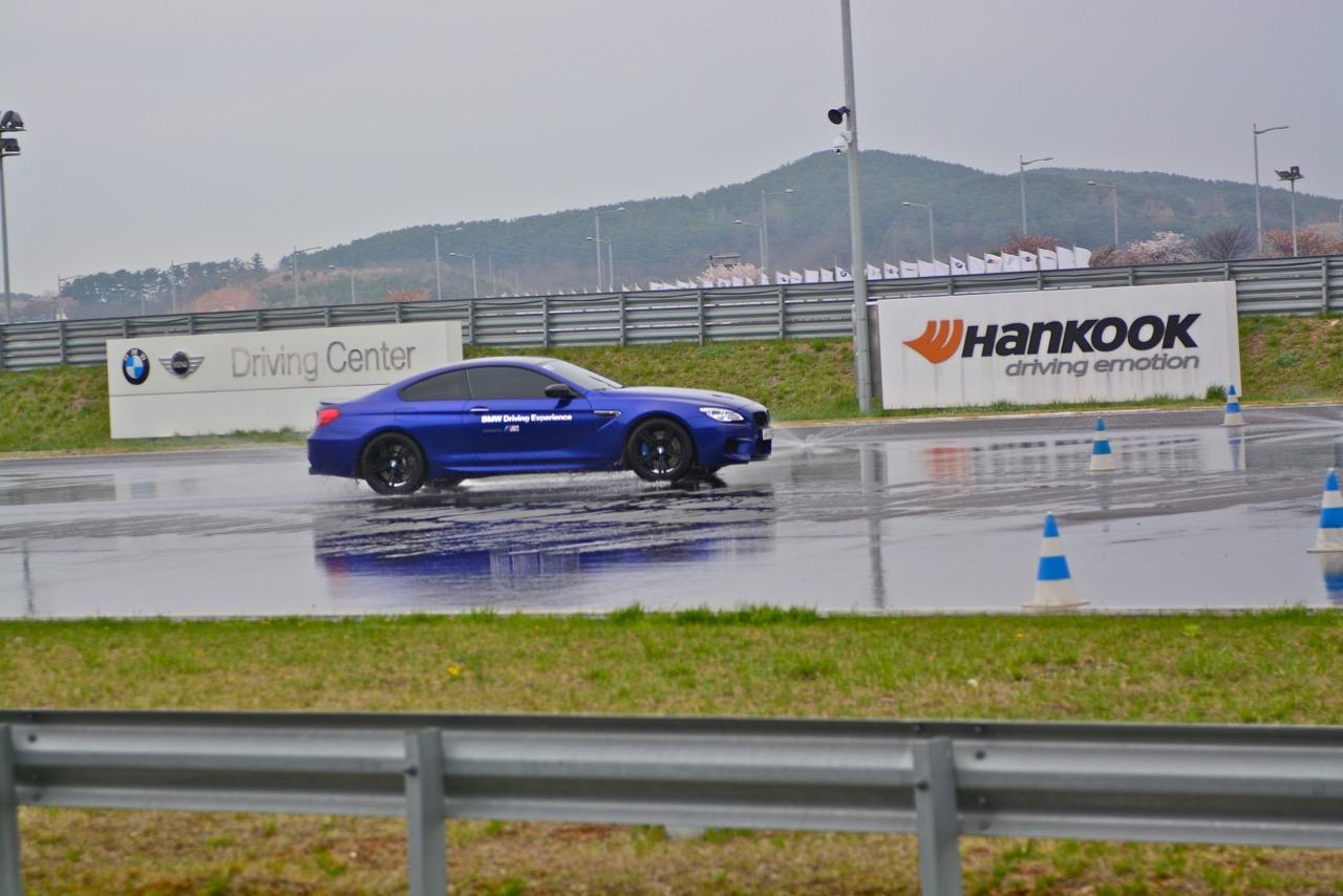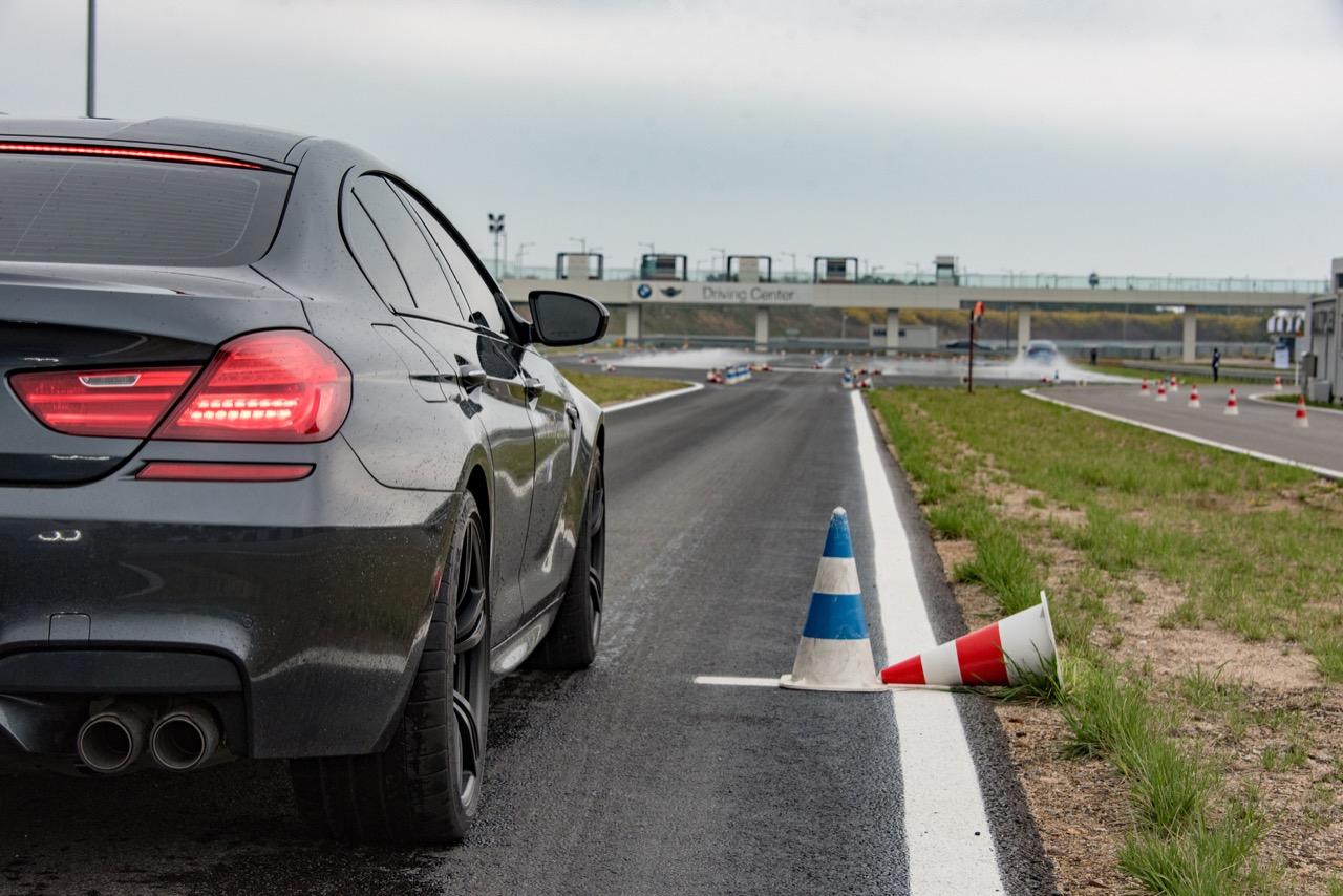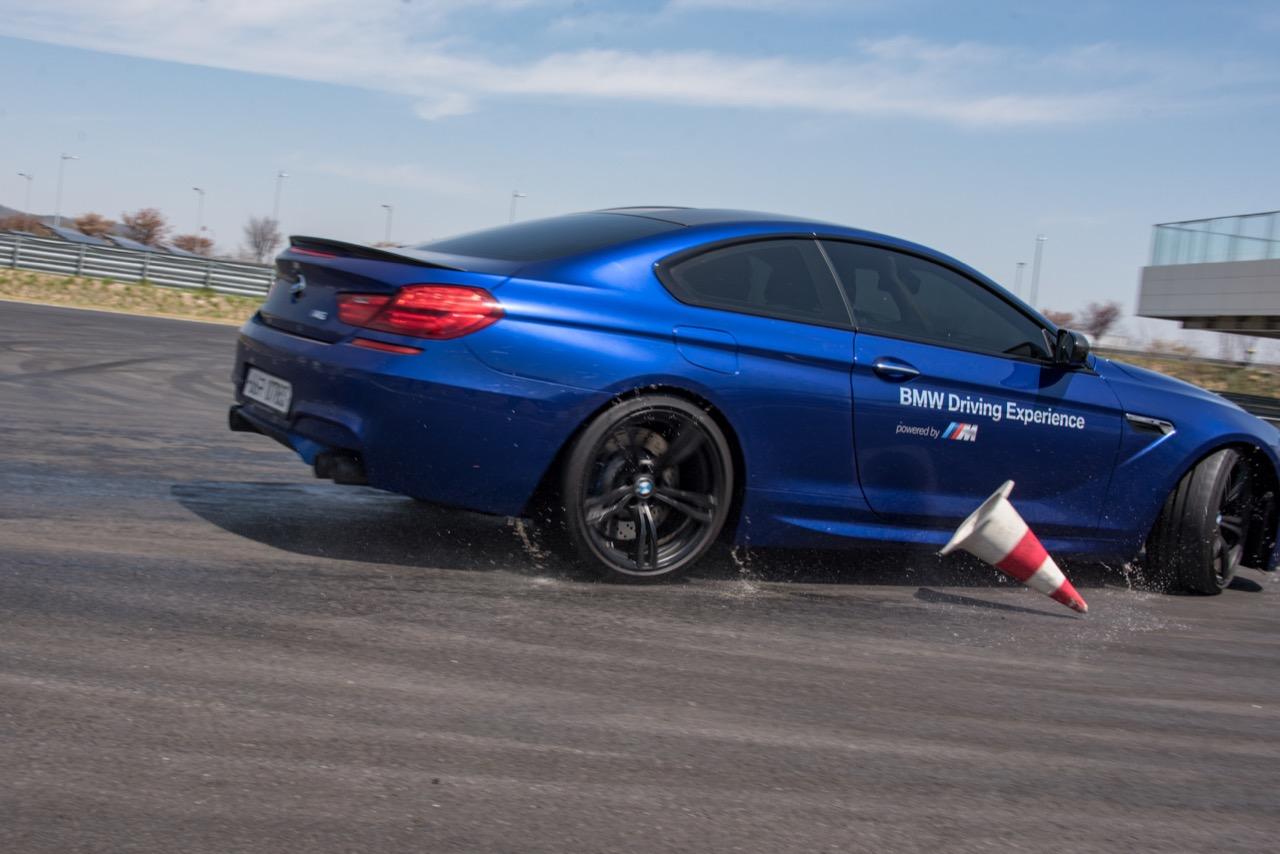 BMW M6 F13 มีความยาวเท่าๆ กับ BMW M5 F10 แต่แบนและเตี้ยมากกว่าด้วยการทำตัวเป็นรถสปอร์ตแนว GT ฐานล้อของมันยังสั้นกว่า M5 ถึง 133 มิลลิเมตร ให้การเลี้ยวที่ฉับไวกว่าเดิมก็จริงแต่ก็ยังไม่เท่ากับการเลี้ยวมุมแคบของ M2 เจ้า M6 เลี้ยวจิกโค้งแฉะๆ ที่เจิ่งนองไปด้วยน้ำในสนามทดสอบของ BMW ได้อย่างมั่นคง แค่ไม่ได้ปราดเปรียวเท่ากับ M ที่มีเรือนร่างเล็กกว่า การเร่งความเร็วออกจากโค้งรูปตัวยูบริเวณปลายโค้ง ทำได้แน่นอน แต่ระวังอาการท้ายปัดเมื่อแรงบิดทั้งหมดถูกเทลงไปที่ล้อคู่หลังซึ่งกำลังบดลงไปบนผิวถนนที่เปียกลื่น ครูฝึกชาวเยอรมันจาก BMW M ชี้ให้เห็นถึงอันตรายหากสภาพผิวถนนอยู่ในลักษณะที่เปียกชื้นมีฝนตก การควบคุมรถสปอร์ตกำลัง 560 แรงม้าให้อยู่กับร่องกับรอยไม่มีควาจำเป็นอะไรที่จะต้องขับให้เร็วจี๋ท่ามกลางตัวแปรที่ไม่เป็นใจ แม้ระบบช่วยทรงตัวจะทำงานตามหน้าที่ได้รับมอบหมาย แต่ก็มีขีดข้อจำกัดที่ขึ้นตรงกับความเร็ว ยิ่งเร็วเท่าไรโอกาสที่จะเกิดความผิดพลาดก็ยิ่งมากขึ้นเท่านั้น