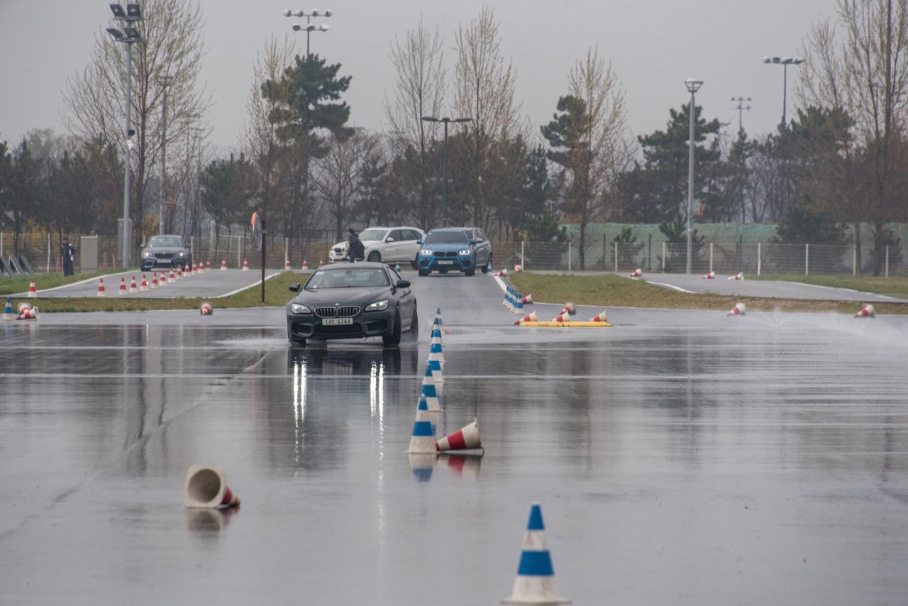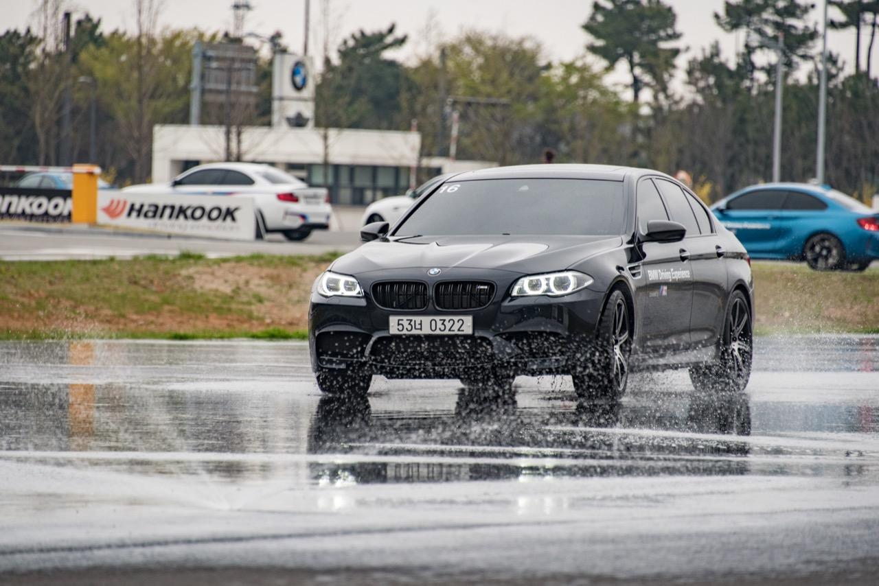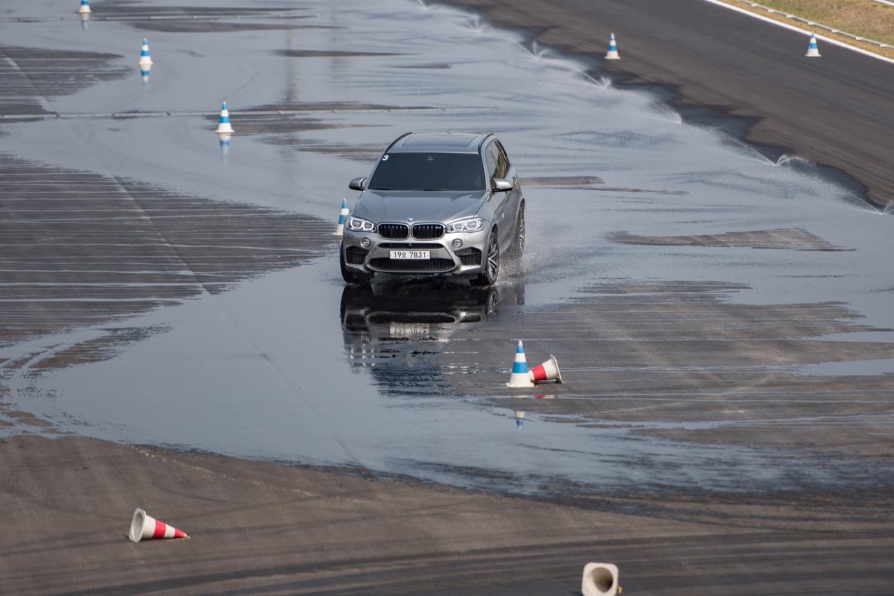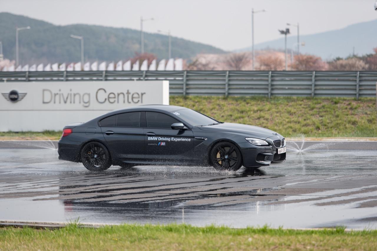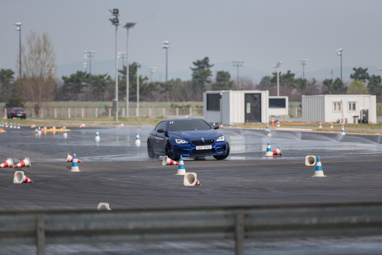 BMW M6 F13 มีความยาวเท่าๆ กับ BMW M5 F10 แต่แบนและเตี้ยมากกว่าด้วยการทำตัวเป็นรถสปอร์ตแนว GT ฐานล้อของมันยังสั้นกว่า M5 ถึง 133 มิลลิเมตร ให้การเลี้ยวที่ฉับไวกว่าเดิมก็จริงแต่ก็ยังไม่เท่ากับการเลี้ยวมุมแคบของ M2 เจ้า M6 เลี้ยวจิกโค้งแฉะๆ ที่เจิ่งนองไปด้วยน้ำในสนามทดสอบของ BMW ได้อย่างมั่นคง แค่ไม่ได้ปราดเปรียวเท่ากับ M ที่มีเรือนร่างเล็กกว่า การเร่งความเร็วออกจากโค้งรูปตัวยูบริเวณปลายโค้ง ทำได้แน่นอน แต่ระวังอาการท้ายปัดเมื่อแรงบิดทั้งหมดถูกเทลงไปที่ล้อคู่หลังซึ่งกำลังบดลงไปบนผิวถนนที่เปียกลื่น ครูฝึกชาวเยอรมันจาก BMW M ชี้ให้เห็นถึงอันตรายหากสภาพผิวถนนอยู่ในลักษณะที่เปียกชื้นมีฝนตก การควบคุมรถสปอร์ตกำลัง 560 แรงม้าให้อยู่กับร่องกับรอยไม่มีควาจำเป็นอะไรที่จะต้องขับให้เร็วจี๋ท่ามกลางตัวแปรที่ไม่เป็นใจ แม้ระบบช่วยทรงตัวจะทำงานตามหน้าที่ได้รับมอบหมาย แต่ก็มีขีดข้อจำกัดที่ขึ้นตรงกับความเร็ว ยิ่งเร็วเท่าไรโอกาสที่จะเกิดความผิดพลาดก็ยิ่งมากขึ้นเท่านั้น