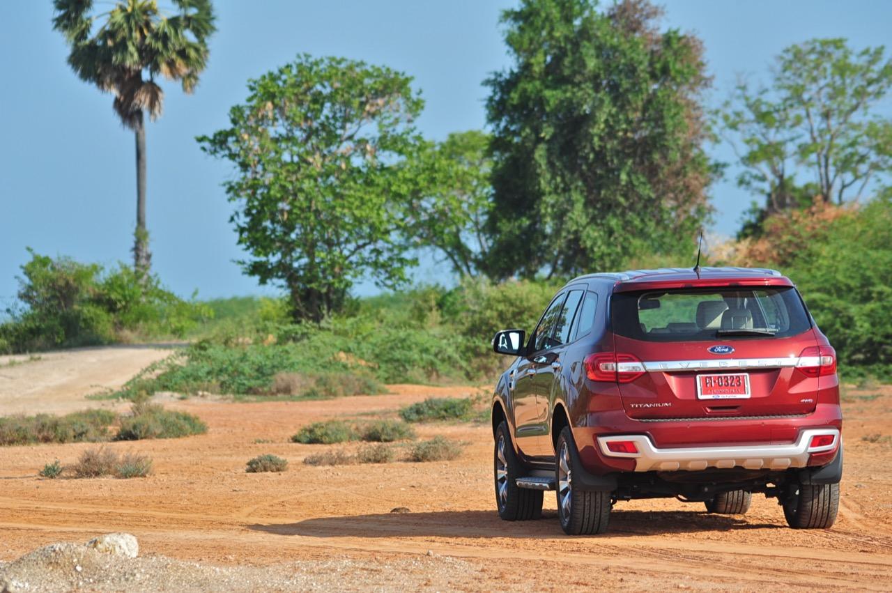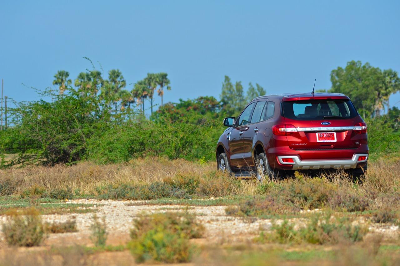 ความคล่องตัวเมื่อเอาไปขับบนทางออฟโรดแบบลุยเล็กๆ พอแค่หอมปากหอมคอก็ยังเหมือนกับ Forester 2.0 XT ราวกับแกะ แต่ส่วนผสมของช่วงล่างใน Everest 3.2L Titanium ดูจะแข็งและแน่นกว่า ทางที่เต็มไปด้วยหลุมบ่อดินลูกรังไม่มีโคลนเลนเหมาะกับยาง Goodyear Excellence grip ซึ่งออกแบบมาเพื่อการลุยทางวิบากที่ไม่โหดร้ายมากนัก หากคิดจะจัดเต็มสูบลุยทางที่มีเลนโคลนหล่มหลุมที่มีน้ำท่วมขังควรยัดยางที่มีดอกลึกมากกว่านี้ ระบบขับเคลื่อนสองล้อหลังพอจะเอาตัวรอดได้บ้างแต่ยังไงก็ยังคงเป็นรองตัวขับสี่เมื่อต้องการเอาไปลุยโหดๆ การถ่ายเทน้ำหนักอยู่ในเกณฑ์ดีแม้ตัวจะสูงโย่งก็ไม่โยกคลอนจนนั่งไม่สบาย