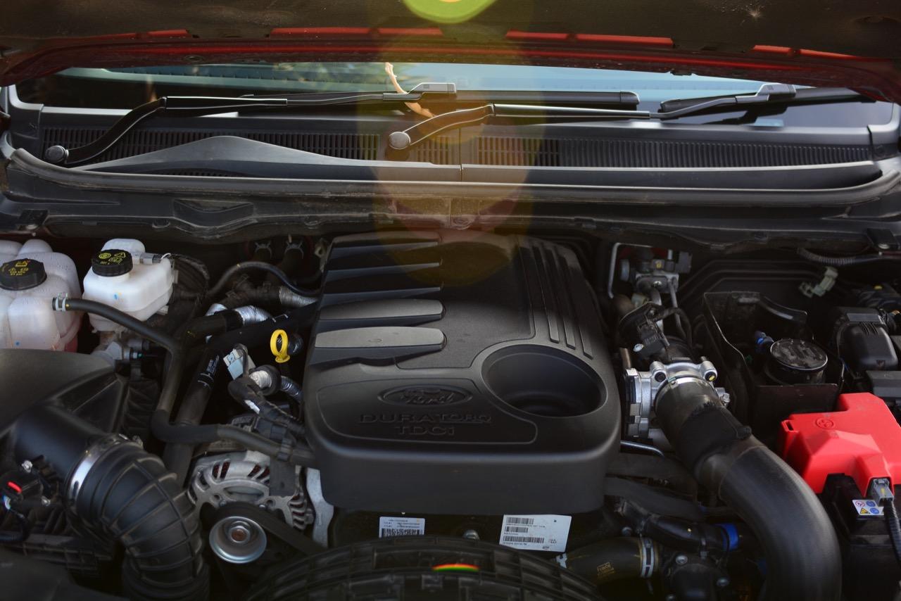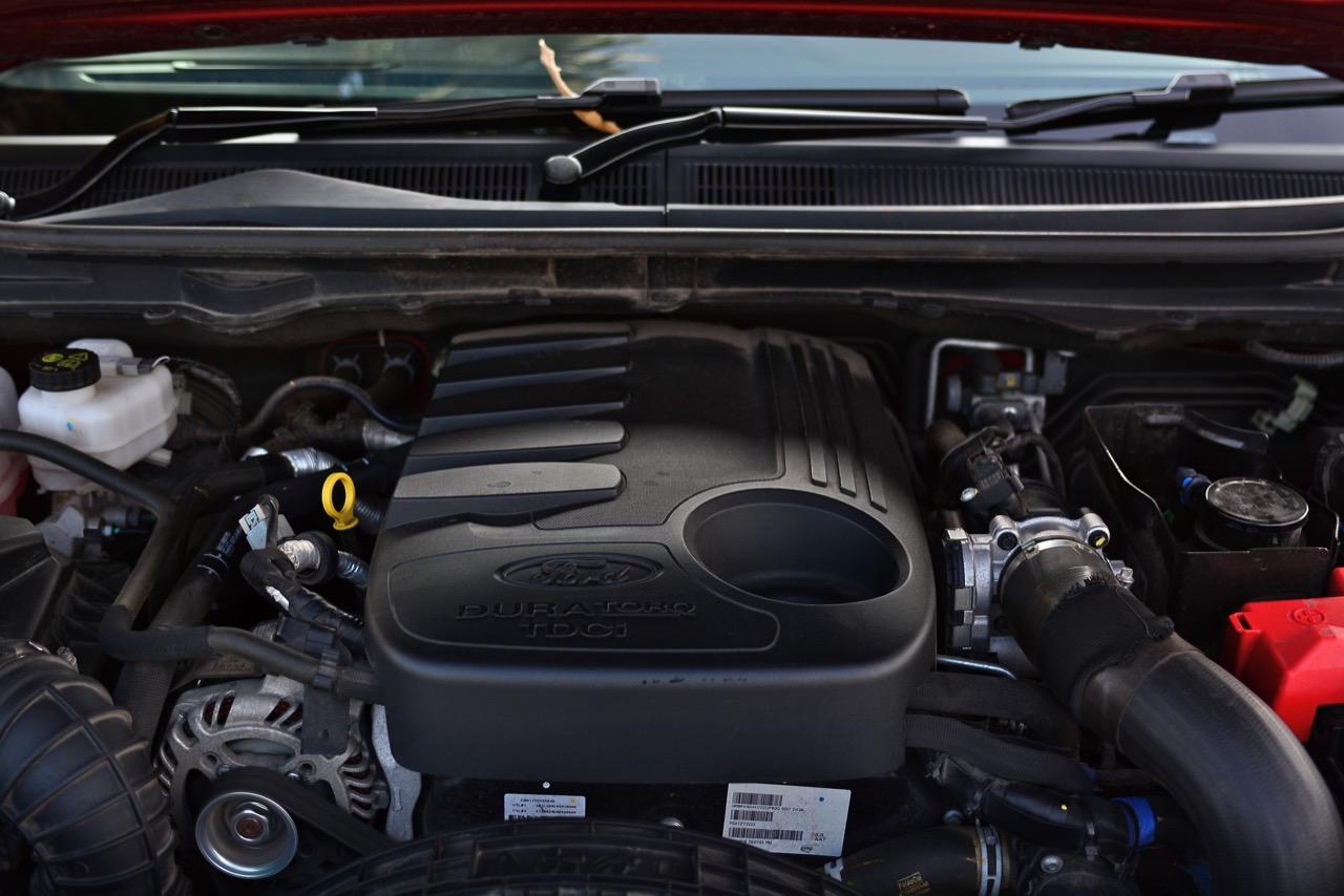 รถทดสอบ Everest 3.2 เครื่องดีเซลเทอร์โบ 5 สูบคันนี้วิ่งมาเยอะพอสมควรแต่ทุกสิ่งทุกอย่างยังคงแน่นตึ้บ เมื่อบิดกุญแจสตาร์ต เครื่องยนต์ดีเซล 5 กระบอกสูบ ขนาด 3 ลิตรติดขึ้นมาพร้อมเสียงเครื่องที่ดังกว่ารุ่น 2.2 เล็กน้อย แรงสั่นสะเทือนจากการทำงานของเครื่องยนต์ดีเซลลดลงทำให้การเดินเบาอยู่กับที่นิ่งใช้ได้ รถทดสอบคันนี้วิ่งมาแล้วถึง 14,890 กิโลเมตร ถือว่ามากสำหรับรถทดสอบที่จัดให้สื่อมวลชนได้ทดลองขับ แม้จะวิ่งพ้นรันอินมานานหลายเดือนแล้วแต่ทุกสิ่งทุกอย่างของมันยังคงแน่นตึ้บ ไม่ว่าจะเป็นการเปิด-ปิดประตู ห้องโดยสารไม่มีเสียงแปลกปลอมเสียดสีกันของชิ้นงานที่ใช้ตกแต่ง การเป็นรถทดสอบของสื่อนั้นจะต้องถูกขับใช้งานอย่างหนักทั้งวิ่งบนถนนปกติรวมถึงการวิ่งบนทางแบบออฟโรด เจ้า Ford Everest 3.2 Titanium รุ่นขับเคลื่อนสองล้อหลังยังแน่นไม่มีอาการที่ส่อไปในทางที่ย่ำแย่ออกมาให้เห็น การเดินเบาทำได้นิ่งใช้ได้ มีแรงสั่นสะเทือนนิดเดียวแถวๆ ไฟหน้า นอกนั้นยังคงนิ่งสนิททุกอณู พวงมาลัยก็ยังไม่มีการสั่นสะท้านแม้จะจอดเดินเบา แท่นเครื่องแท่นเกียร์ที่ดีขึ้นและมาตรการในการปรับแรงสั่นสะเทือนขณะทำงานทำให้เครื่องยนต์ Duratorq TDCi ของ Everest เดินนิ่งราบเรียบแต่ก็มีเสียงการทำงานของเครื่องยนต์ดังกว่ารุ่น 2.2 ลิตรอย่างชัดเจน