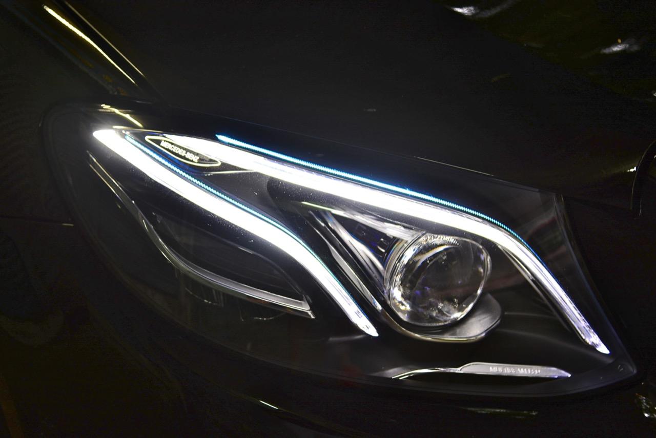 ชุดไฟหน้าสามารถส่องพื้นถนนข้างหน้ารถได้โดยอัตโนมัติ โดยมีระดับความเข้มของแสงจากหลอดไฟ LED ที่สว่างและเหมาะสมกับสภาพแวดล้อม ไม่รบกวนสายตาของผู้ขับรถยนต์คันอื่น เทคโนโลยีไฟหน้า MULTIBEAM LED สะท้อนให้เห็นถึงคุณลักษณะของรถยนต์ตระกูล New E-Class ที่ล้ำสมัยและมีความอัจฉริยะ ตัวอย่างที่เห็นได้ชัดคือการเรียงตัวของชุดไฟสำหรับการขับขี่ตอนกลางวันที่มีลักษณะโค้งเป็นวงคล้ายคิ้วของมนุษย์ รวมไปถึงการประกอบชุดโคมไฟโดยใช้วัสดุคุณภาพสูง