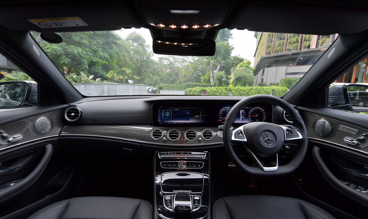 การคว้ารางวัลจากงาน Automotive Interiors Expo Awards ประจำปี 2016 ในด้านห้องโดยสารยอดเยี่ยมสำหรับรถยนต์ที่ผลิตเพื่อการจัดจำหน่ายจริง (the best interior of a standard-production automobile) และนวัตกรรมยอดเยี่ยมแห่งปี จากผลงานการออกแบบแผงควบคุมระบบสัมผัสบนคอพวงมาลัยในรถยนต์ The E-Class ห้องโดยสารของรถยนต์ The E-Class คือผลลัพธ์ของการตีความตามแนวคิด Contemporary Luxury ผ่านการออกแบบห้องโดยสารเพื่อทำให้ดูกว้างขวาง อุปกรณ์ตกแต่งคุณภาพสูง สอดคล้องกับปรัชญา Sensual Purity ของแบรนด์ E350e ได้รับการออกแบบให้เบาะที่นั่งตอนหลังสามารถพับลง แบบ 1/3 และ 2/3 เพื่อความสะดวกในการบรรจุสัมภาระ รุ่น E350e Avantgarde และ E350e Exclusive มีภายในที่ได้รับการตกแต่งในสไตล์หรูหรา เบาะนั่งหุ้มหนัง ARTICO พวงมาลัยแบบมัลติฟังก์ชั่นหุ้มหนัง nappa ในขณะที่ E350e AMG Dynamic รุ่นสูงสุดติดตั้งเบาะนั่งหุ้มหนัง nappa, พวงมาลัยมัลติฟังก์ชั่นแบบสปอร์ตท้ายตัดหุ้มหนัง nappa รุ่น E350e Exclusive และ E350e AMG Dynamic ใช้หน้าจอแสดงผลข้อมูลแบบ widescreen cockpit โดยเพิ่มความพิเศษสำหรับ E350e AMG Dynamic รุ่นสูงสุดติดตั้งระบบแสดงผลข้อมูลการขับขี่บนกระจกบังลมหน้า (Head-up Display)