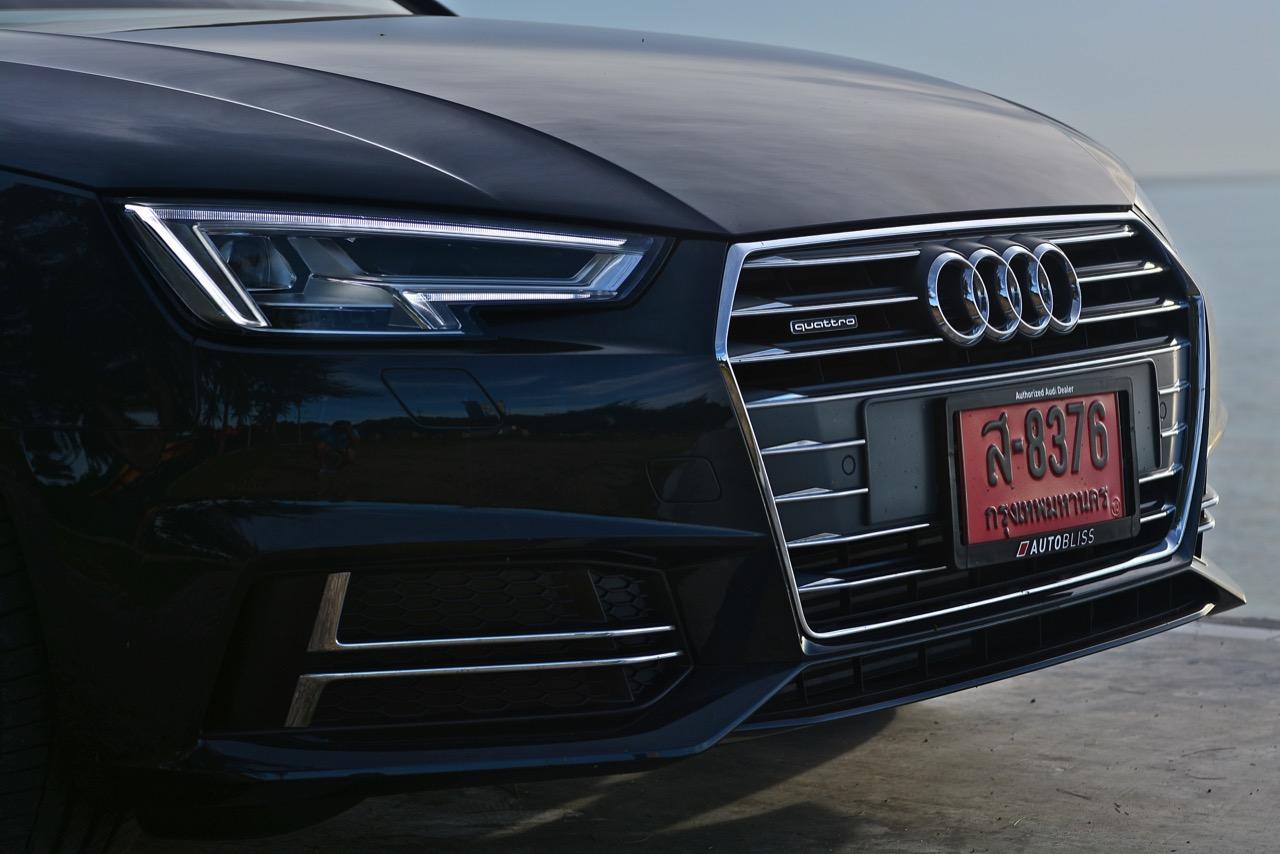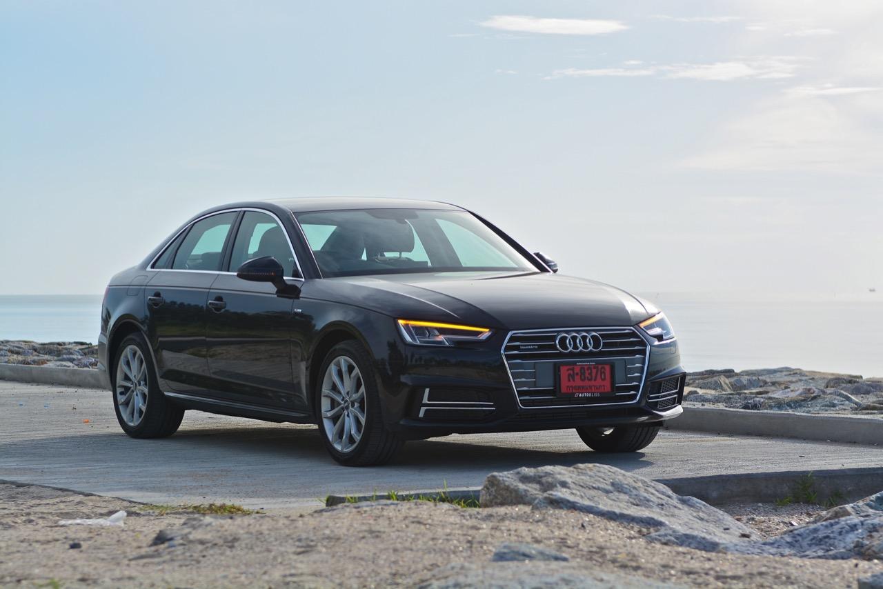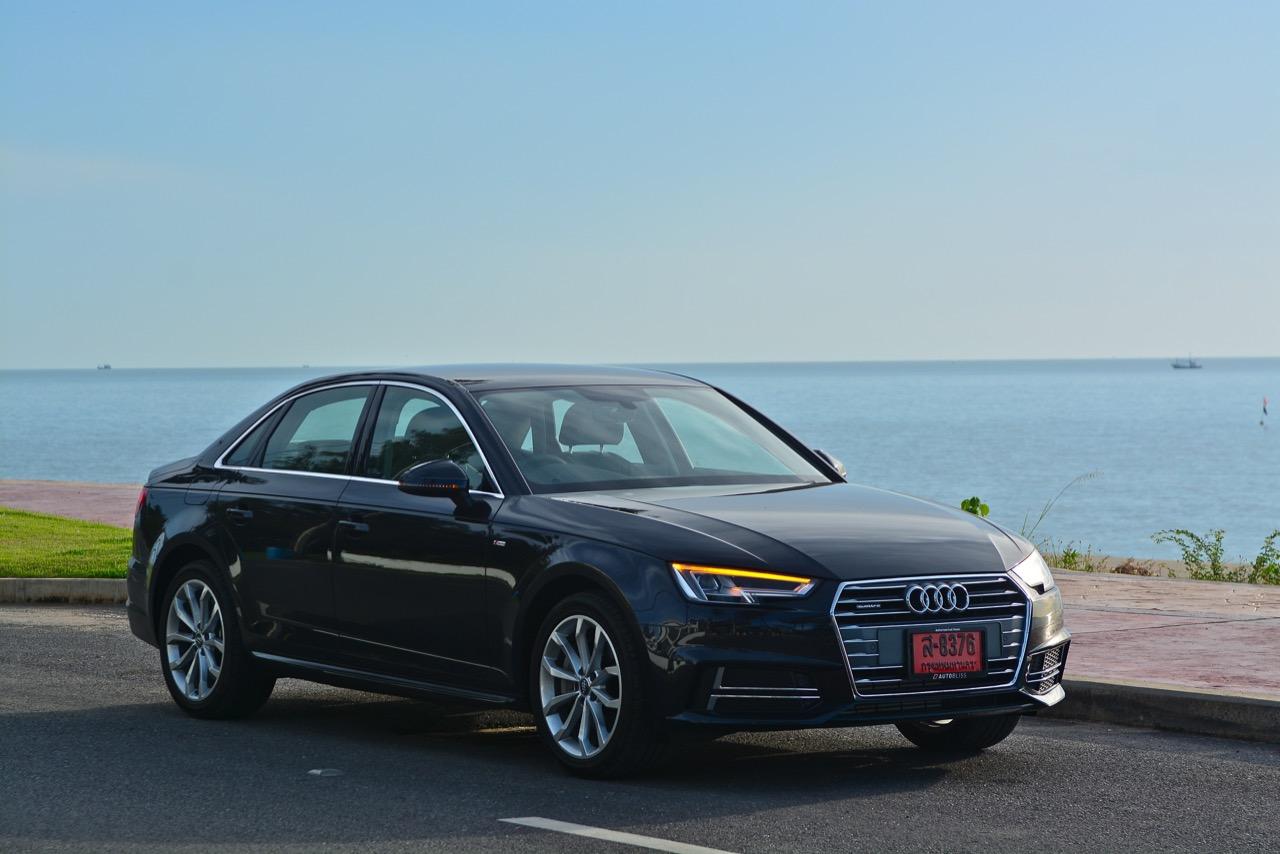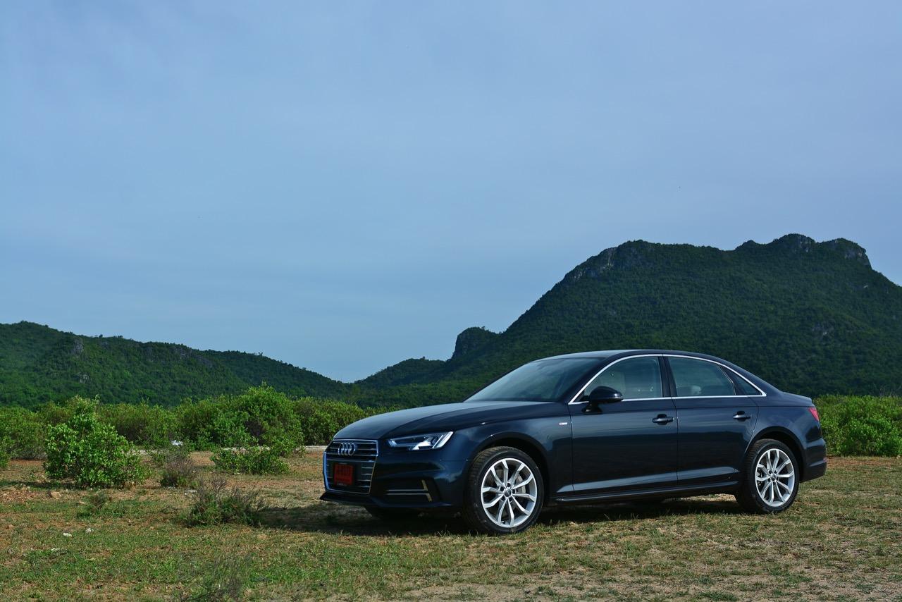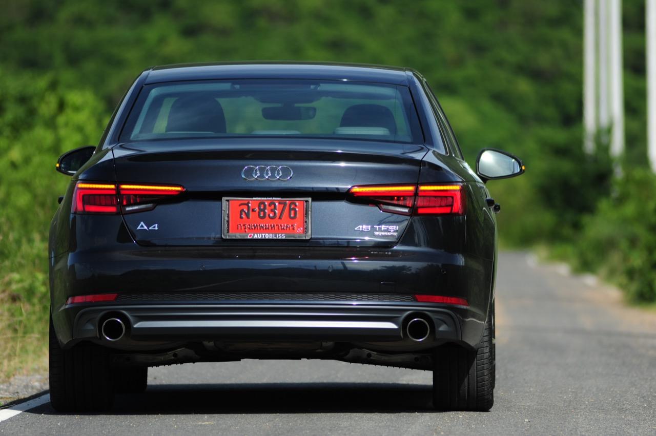 วิศวกรของ Audi ทำงานอย่างหนักเพื่อสร้างเครื่องยนต์ที่มีประสิทธิภาพมากพอสำหรับ Audi A4 โดยเฉพาะรุ่น 45 TFSI นั้น มีแรงดึงที่ดีเยี่ยมเกือบจะทุกย่านของรอบเครื่องยนต์กันเลยทีเดียว แรงดึงส่งให้รถพุ่งทะยานลิ่วๆ ไปข้างหน้าราวกับก้อนหินที่ถูกดีดออกจากหนังสติ๊ก เผลอแผล็บเดียวหากไม่มองมาตรวัดแล้วยังกดคันเร่งลงลึกอย่างต่อเนื่อง มีหวังได้โดนใบสั่งข้อหาใช้ความเร็วเกินกำหนดอย่างแน่นอน แรงบิด 370 นิวตันเมตร ที่ทะลักออกมากลับไม่ทำให้เจ้าหมอนี่กินเชื้อเพลิงมากอย่างที่คิดไว้แต่แรก เมื่อลองดูตัวเลขอัตราสิ้นเปลืองที่หน้าจอ MID ก็อยู่ที่ 9.6 กิโลเมตรต่อลิตร ทั้งๆ ที่ลากยาวอัดหนักมาตั้งแต่เส้นบายพาส ส่วนช่วงล่างก็ให้รสชาติเหมือนกับรถเยอรมันทั่วไป นั่นก็คือความหนึบแน่น ออกจะโดดเด่นกว่ารถคู่แข่งตรงที่ระบบขับเคลื่อนทุกล้อซึ่งทำให้มันเกาะจิกโค้งราวกับตีนตุ๊กแกคล้ายๆ กับ Audi A5 Coupe โดยมีกลิ่นของ BMW โผล่ออกมาบ้างเมื่อห้อเต็มสูบบนทางตรงยาว!