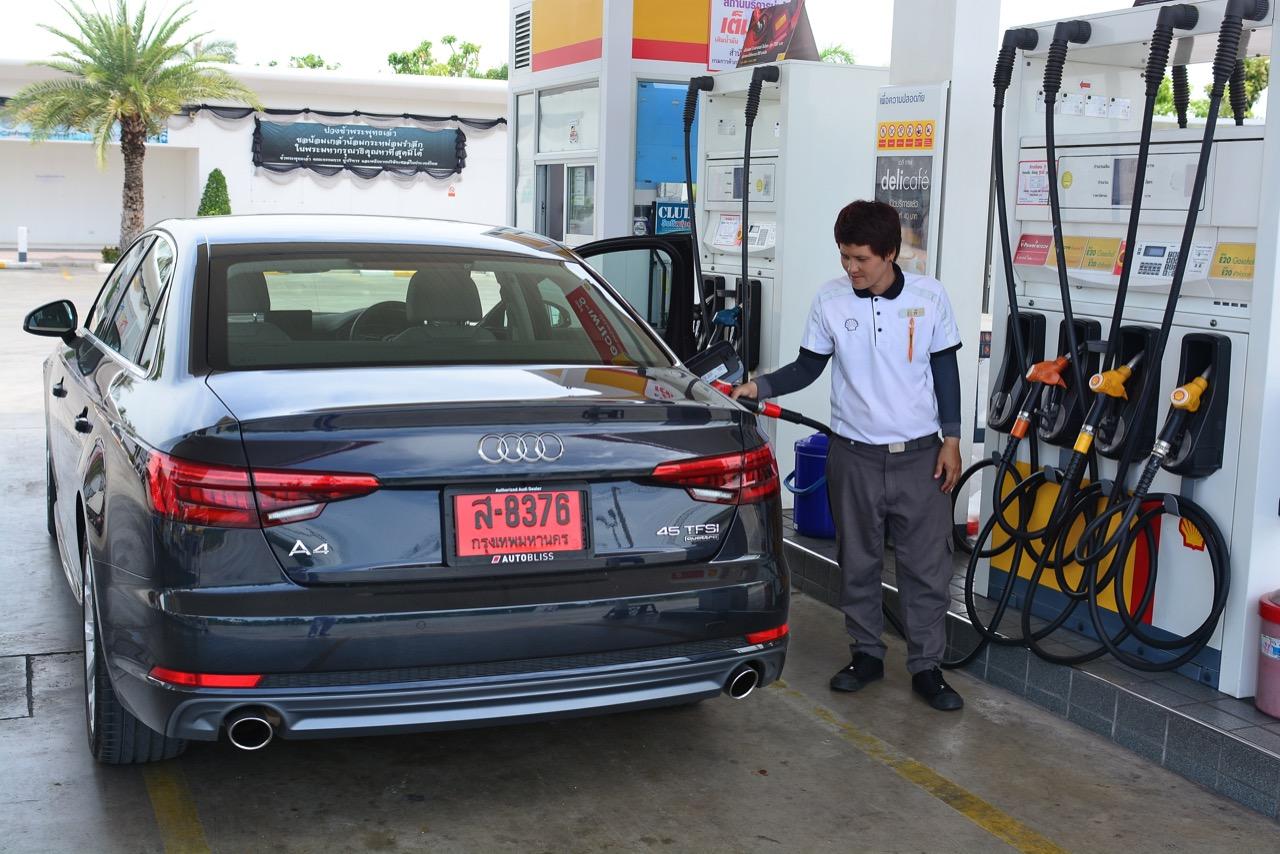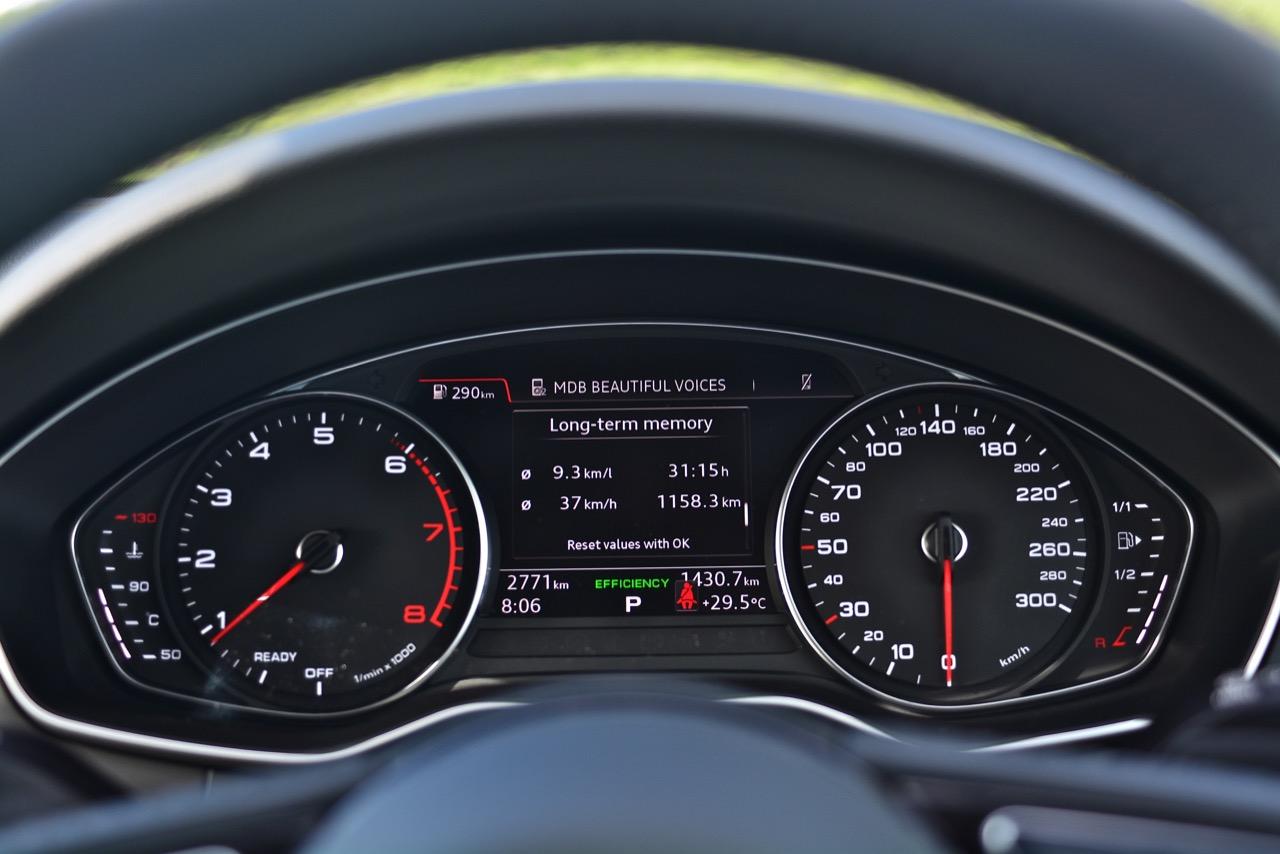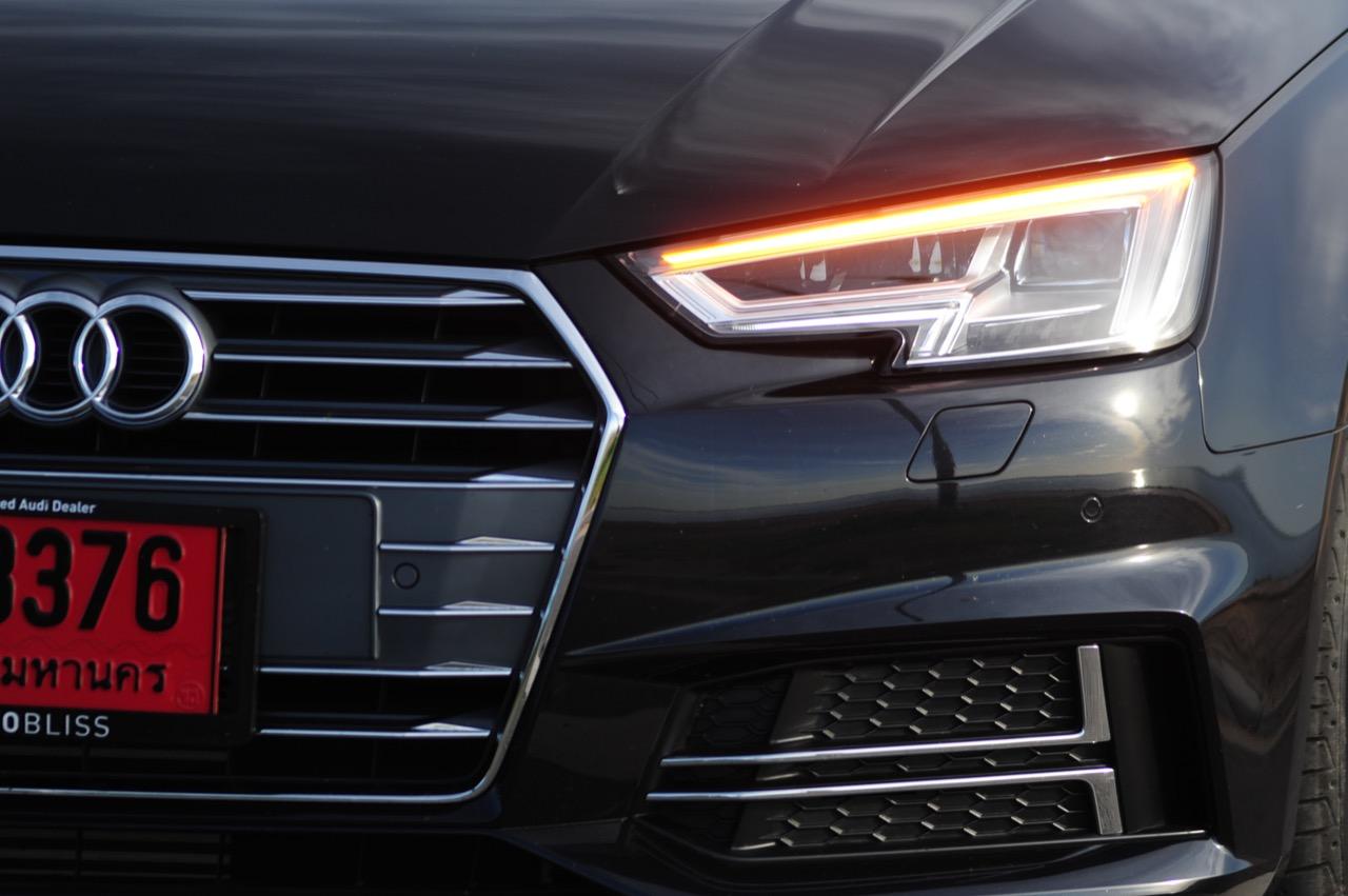 ผมรับเจ้า 4 ห่วงรุ่น A4 45 TFSI จากสำนักงานของ Meister Technik ซึ่งได้รับการแต่งตั้งจาก Audi AG ให้เป็นตัวแทนจำหน่ายอย่างเป็นทางการของรถ Audi ในประเทศไทย โดยมีระยะเวลาสั้นจู๋แค่ 4 วันในการทำความรู้จักกับมัน เจ้านี่คือศัตรูตัวร้ายของ BMW Series-3 รวมถึง Mercedes Benz C-Class ซึ่งคลอดออกมาในปี ค.ศ.2015 กว่าจะเข้ามาขายในไทยก็ปาเข้าไป 2 ปี แต่ความสดและความแรงยังคงเปล่งประกายออกมาจากตัวรถ แม้จะจอดนิ่งอยู่กับที่ก็ยังดูแรง การขับใช้งานในเมือง A4 45TFSI พร้อมระบบขับเคลื่อน 4 ล้อ Quattro ทำตัวได้น่ารักสมราคา แค่โหมดต่ำสุดหรือโหมด Efficiency ก็เหลือเฟือต่อการขับในเมือง แถมยังได้ตัวเลขอัตราสิ้นเปลืองที่โดนใจ ขับในเมืองใน A4 มีตัวเลขฟ้องมาที่จอ MID โดยสามารถทำได้ที่ 8.6 กิโลเมตรต่อลิตร ไม่ได้ประหยัดสุดเหมือนเครื่องดีเซลของ BMW 320d แต่ก็ไม่ได้กินจุอย่างที่เข้าใจกันแต่แรก การเก็บเสียงเมื่อขับใช้งานในกรุงเทพฯ อยู่ในเกณฑ์ดีสูสีกับคู่แข่งจากเยอรมนีทั้งสองแบรนด์ คันเร่งเบาหวิวตอบสนองแบบค่อยเป็นค่อยไป แต่ก็พร้อมที่จะท้ารบทันทีที่เผลอกดคันเร่งลงลึก!
