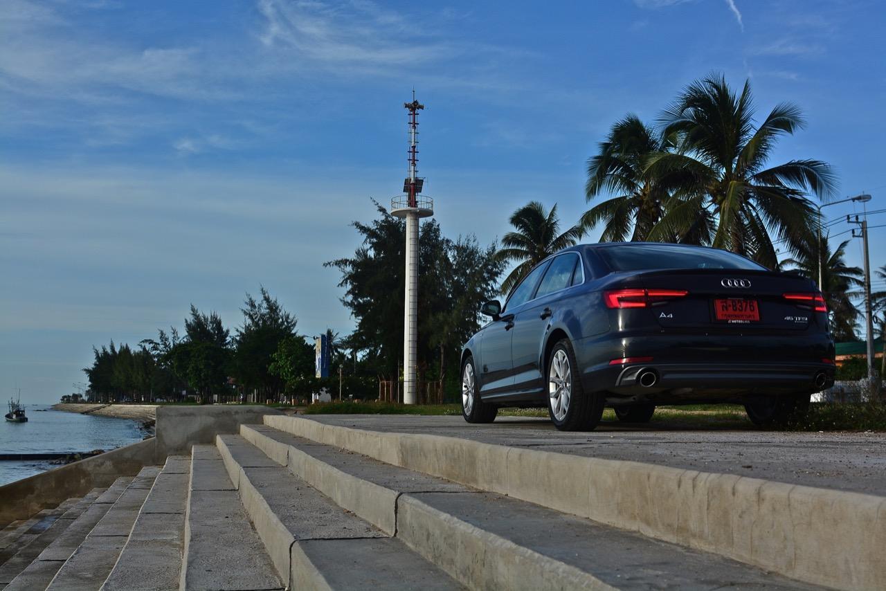 เมื่อขับออกทางไกลลากกันยาวๆ 300 กิโลเมตรไปยังปากน้ำปราณ เจ้า A4 ในโหมด Dynamic จะกลายเป็นรถซีดานบ้าพลังที่พร้อมจะปลดปล่อยความเร็วออกมาให้สัมผัสหากมีถนนที่โล่งมากพอ Dynamic Mode ปรับสภาพการควบคุมให้เปลี่ยนจากรถซีดานบ้านๆ เป็นรถสปอร์ตในชั่วพริบตา ผมสามารถทะยานไปรอบๆ ภูเขาของเมืองปากน้ำปราณได้ราวกับนักขับมืออาชีพ ที่ความเร็วสูงมันก็ยังทรงตัวได้อย่างเฉียบขาดจากระบบขับเคลื่อนทุกล้อ Quattro ที่แสดงออกถึงความมาดมั่นผ่านกลไกขบวนเฟืองที่มีความสลับซับซ้อนซ่อนเงื่อน