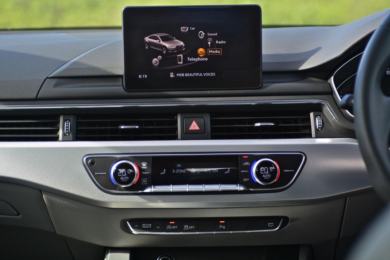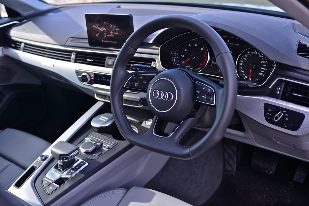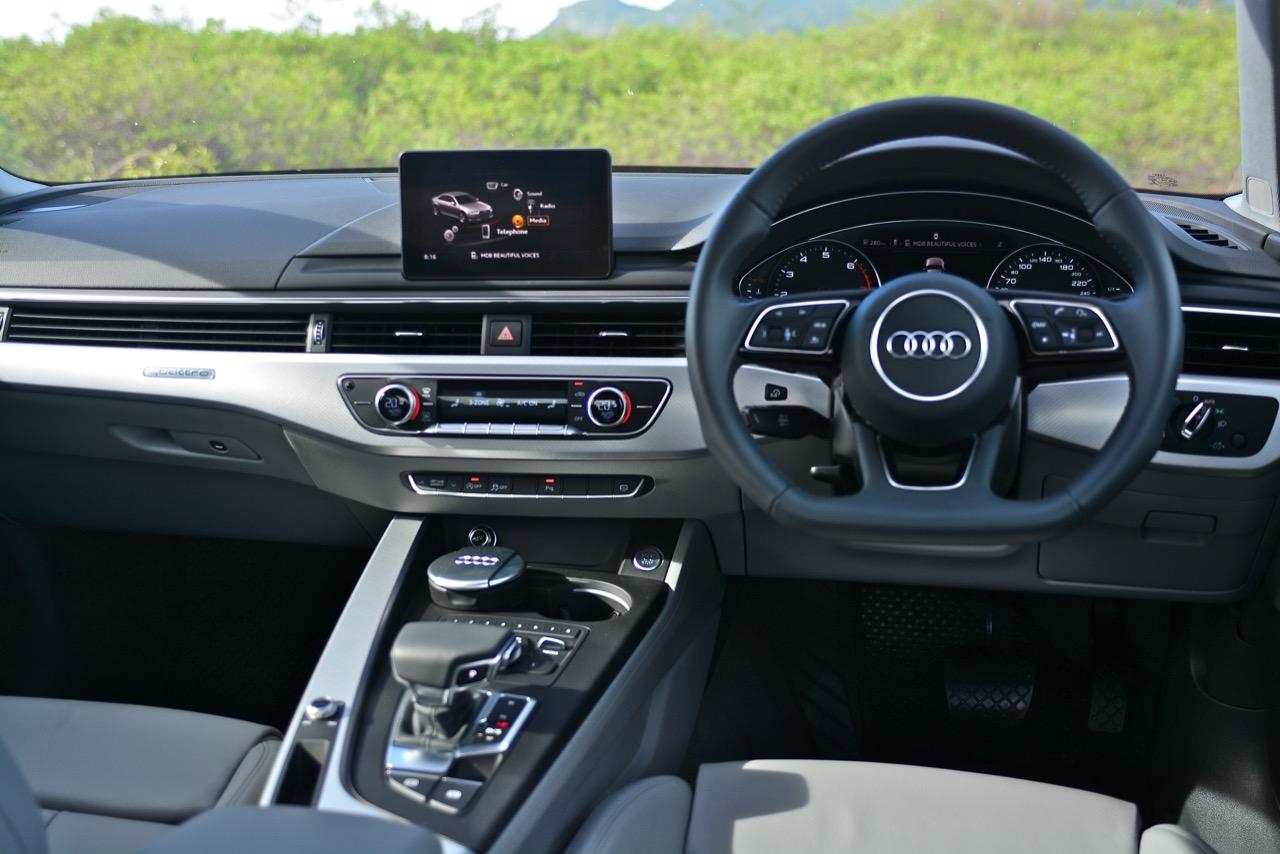 ห้องโดยสารของ A4 45 TFSI Quattro S-Line แม้จะไม่ใช่ Virtual cockpit เหมือน A5 รุ่นพี่ แต่ก็มีดีที่วัสดุและงานตกแต่งสุดประณีต อุปกรณ์ไฮเทคเพียบ ไล่จากระบบเชื่อมต่อสมารท์โฟนเวอร์ชั่นล่าสุด ปุ่มควบคุมระบบ MMI ห้องโดยสารของ A4 รุ่นล่าสุดแม้จะคล้ายกับ New A5 Coupe แต่มีความแตกต่างในบางจุดบางตำแหน่ง กลิ่นไอของ BMW โชยมาฉุนขึ้นจมูกเหมือน A5 ไม่ว่าจะเป็นงานหุ้มหนัง ชิ้นงานอัลลอย ผ้าเนื้อดีที่ใช้บุหลังคา พรมปูพื้นกับปุ่มและสวิตช์ที่มีหน้าตาคล้ายกับงานตกแต่งใน BMW