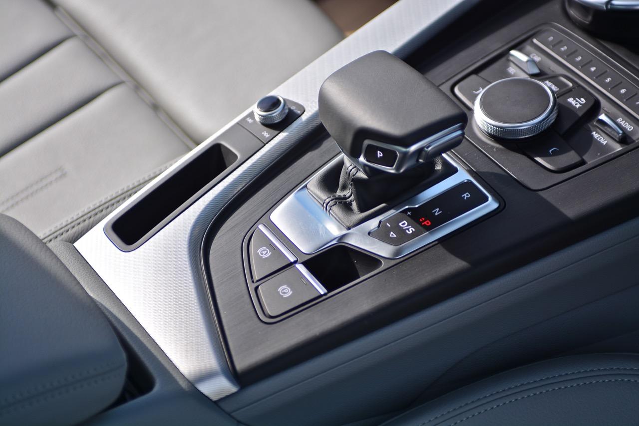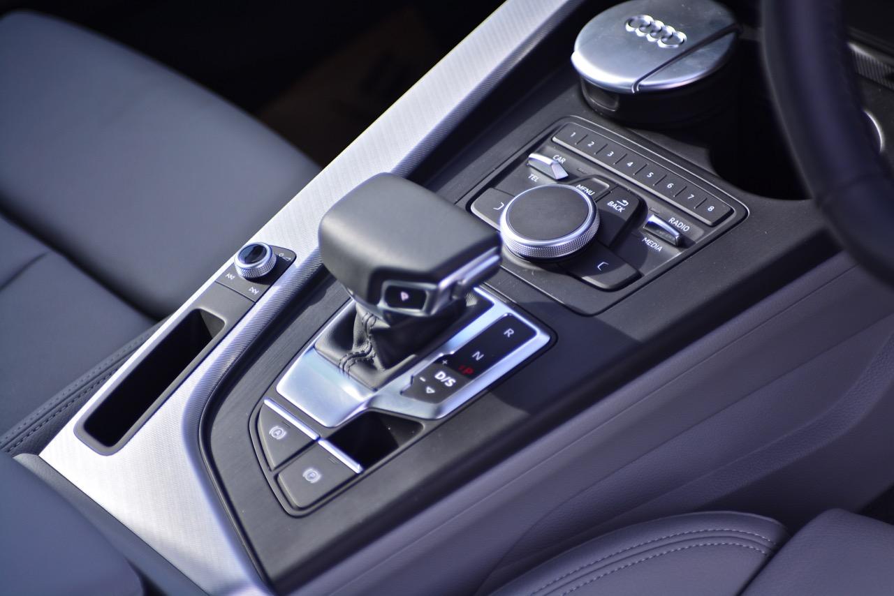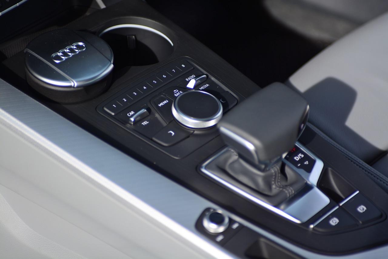 ซุ้มเกียร์ยกขึ้นจากอุโมงค์เกียร์ขนาดใหญ่ โดยทำการเอียงอุปกรณ์ทั้งหมดให้เข้าหาตัวคนขับเพื่อความสะดวกในการใช้งาน ปุ่มทรงกลมควบคุมระบบ MMI ของ Audi ยกมาทั้งยวงจากรถ A5 แม้จะทำงานได้รวดเร็วแต่ผมกลับชอบปุ่ม iDRIVE ของ BMW ซึ่งมีการออกแบบให้ปุ่มควบคุม iDRIVE เป็นสวิตช์แบบ 4 ทิศทาง สำหรับสวิตช์ Control Knob ทำงานรูปแบบเดียวกับการใช้เม้าส์ในคอมพิวเตอร์ ผู้ขับสามารถลากนิ้วเป็นตัวอักษรบนหน้าสัมผัสของแป้น Control Knob เพื่อป้อนข้อมูลให้กับระบบ MMI ได้อย่างสะดวก รองรับการทำงานทั้งในส่วนของโทรศัพท์ วิทยุ และ Multi Media ต่างๆ ระบบเครื่องเสียงจัดเต็มด้วยเครื่องเสียงชุดใหญ่บิ๊กบึ้ม ออกแบบโดยแบรนด์เครื่องเสียงชั้นนำ Bang & Olufsen ให้มิติของเสียงเพลงครบถ้วนกระบวนความ ทั้งความคมชัดกรุ้งกริ้งของทวิตเตอร์กับความหนักแน่นของเสียงเบส Audi จัดลำโพงทั้งใหญ่และเล็กมาให้ถึง 19 ตัว ไม่ต้องกลัวว่าจะไม่ดังกันเลยทีเดียว ส่วนหัวเกียร์รูปทรงประหลาดล้ำคล้ายคันเร่งของเรือยอชต์ เป็นหัวเกียร์ทรงเหลี่ยมทำจากอัลลอยพร้อมกับหุ้มด้วยหนังแท้ดูดีมีราคา ช่องวางแก้วน้ำออกแบบได้ดี โดยมีแก้วของ Audi แถมมาให้เพื่อคนชอบพกพากาแฟหรือน้ำอัดลม