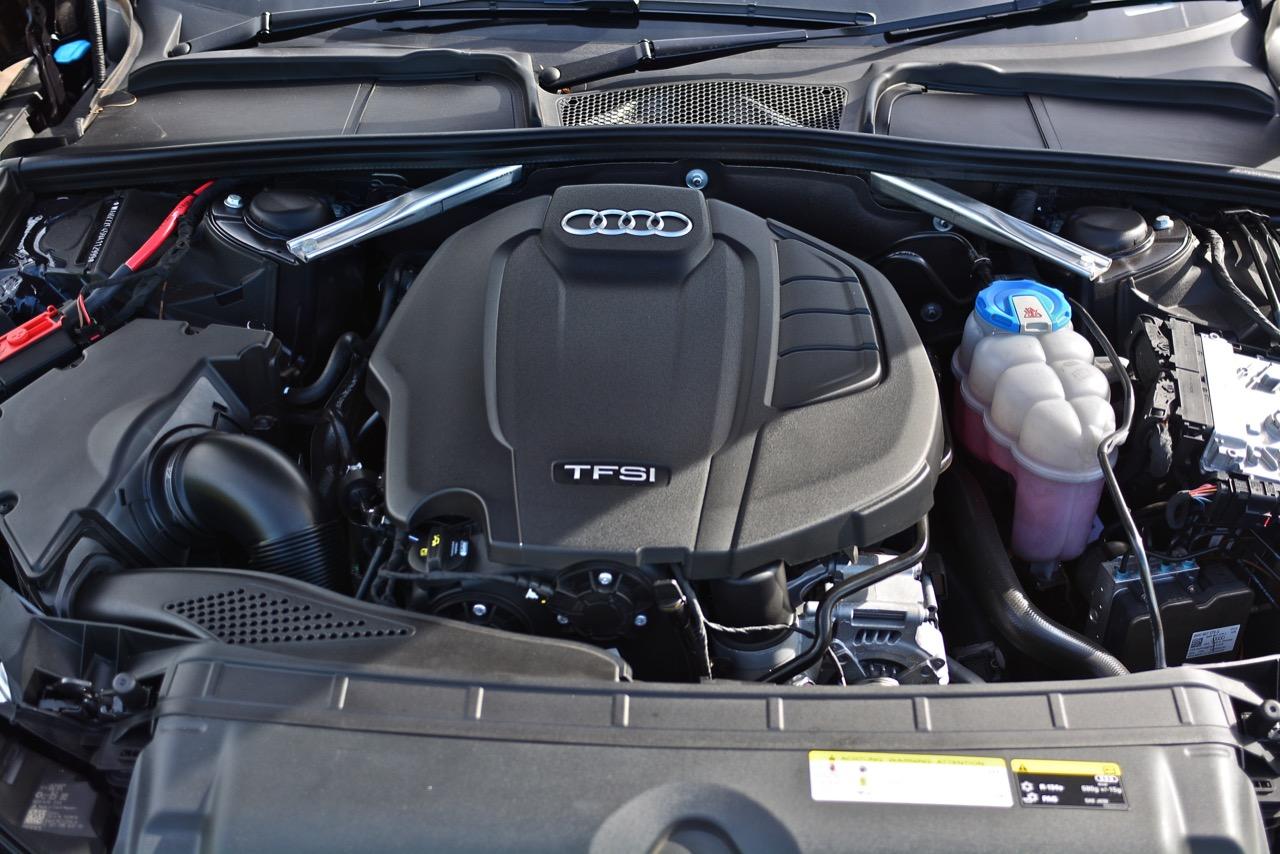 ขุมกำลังของ Audi ยุคใหม่นั้นขึ้นชื่อมากในเรื่องของความแรง Audi A4 45 TFSI Quattro S-Line วางเครื่องยนต์เบนซินแถวเรียง 4 สูบ 16 วาล์ว พร้อมระบบวาล์วแปรผัน Audi valvelift system เครื่องยนต์วางตามยาว ขับเคลื่อน 4 ล้อด้วยระบบ Quattro เครื่อง 4 สูบ อัดอากาศด้วยเทอร์โบประสิทธิภาพสูงมีกำลังมากขึ้น 17% และประหยัดขึ้น 22% เมื่อเทียบกับเครื่องยนต์ของ A4 รุ่นที่แล้ว เครื่องยนต์ของซีดานตัวกลั่นรุ่นนี้ยังใช้ระบบจ่ายเชื้อเพลิงแบบผสมผสาน Dual Injection ซึ่งอยู่ตรงกลางระหว่าง Direct Injection และ Manifold Injection ในแต่ละสูบของเครื่อง 2.0 TFSI ใช้หัวฉีดเชื้อเพลิง 2 หัว ระบบ Dual Injection จะควบรวมการทำงานโดยขึ้นตรงกับโหลดและรอบเครื่องเป็นหลัก โดยมี Direct Injection เป็นหัวฉีดฝั่งแรงดันสูง ใช้เทคโนโลยีล่าสุดของหัวฉีดแบบ Piezo สามารถฉีดจ่ายเชื้อเพลิงได้เร็ว ปลดปล่อยแรงดันสูงสุด 250 บาร์ โดยที่แรงดันในการฉีดจ่ายเชื้อเพลิงจะแปรผันไปตามโหลดของเครื่องยนต์เป็นหลัก