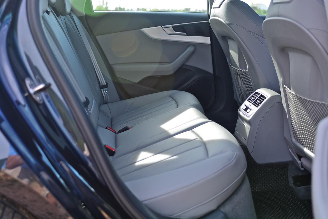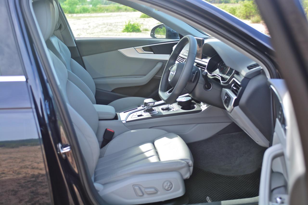 เบาะโดยสารทุกตำแหน่งของ Audi A445 TFSI หุ้มด้วยงานหนังแท้โทนสีอ่อน เบาะคู่หน้าปรับด้วยไฟฟ้าพร้อมหน่วยความจำ 2 ตำแหน่ง ซึ่งคนขับสามารถปรับเบาะให้กระชับหรือผ่อนคลายได้ตามสะดวกด้วยสวิตช์ปรับตั้งเบาะด้านข้าง เบาะผู้โดยสารตอนหลังพับได้แบบ 40-60 ช่วยเพิ่มพื้นที่ในการขนสัมภาระได้อีกเพียบ โดยเฉพาะการยัดจักรยานเสือหมอบคันโตใส่เข้าไปแบบสบายๆ
