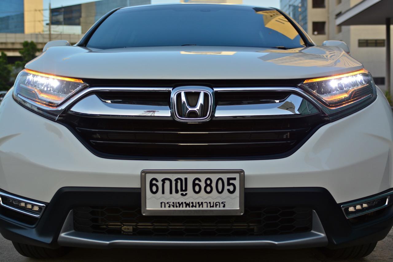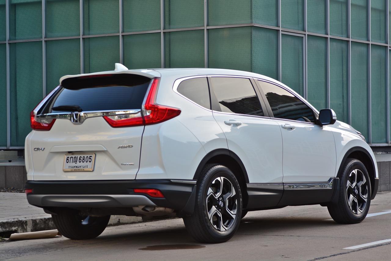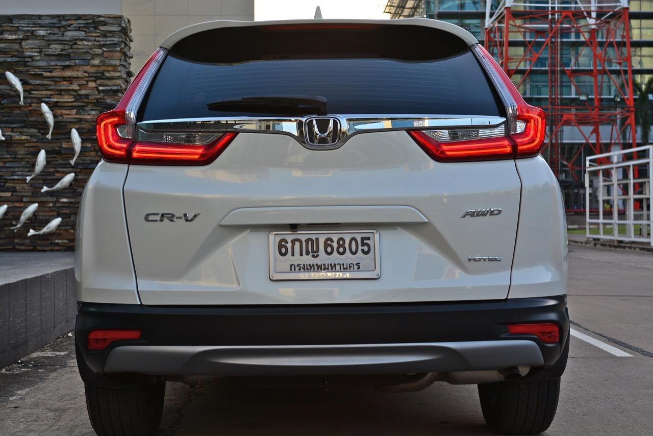 New CR-V คันที่ผมนำมาทดสอบรีวิวเป็นรุ่นท็อปสุด DT EL 4WD เครื่องยนต์ดีเซล 1.6 ลิตรเทอร์โบ ราคา 1,699,000 บาท เป็น CR-V เจนเนอเรชั่นที่ 5 ที่มาพร้อมกับความสดใหม่ของเรือนร่างโดยไม่มีชิ้นส่วนใดที่เกี่ยวข้องกับ CR-V เจน 4 แนวคิดในการพัฒนารถยนต์อเนกประสงค์แบบครอสโอเวอร์ไซส์กลางเริ่มจากความสะดวกสบายในการขับใช้งาน ความง่ายในการควบคุมและความสนุกหลังพวงมาลัย New CR-V มีมิติตัวถังที่ใกล้เคียงกับรุ่นที่แล้วแต่มีรูปแบบที่ทันสมัยขึ้น สัดส่วนความยาว 4,571 มิลลิเมตร กว้าง 1,855 มิลลิเมตร สูง 1,667 มิลลิเมตร ฐานล้อวัดจากดุมหน้าไปถึงดุมหลัง 2,662 มิลลิเมตร ระยะห่างล้อคู่หน้า 1,603 มิลลิเมตร ระยะห่างล้อคู่หลัง 1,613 มิลลิเมตร ความสูงจากพื้นถึงใต้ท้องน้อยกว่า PPV-SUV โดยมีระยะห่างจากพื้นถนนถึงใต้ท้องรถอยู่ที่ 208 มิลลิเมตร พอที่จะลุยน้ำท่วมสูง 30 เซนติเมตร แม้จะใช้เครื่องดีเซลตัวเล็กแค่ 1.6 ลิตร แต่ CR-V ใหม่รุ่นท็อปสุดนั้นยัดอุปกรณ์อำนวยความสะดวกเอาไว้บานเบอะ ทำให้น้ำหนักตัวพุ่งถึง 1,742 กิโลกรัม หนักเอาเรื่องอยู่เหมือนกันเมื่อเทียบกับรุ่นเบนซิน 2.4 ลิตรที่มีน้ำหนัก 1,613 กิโลกรัม
