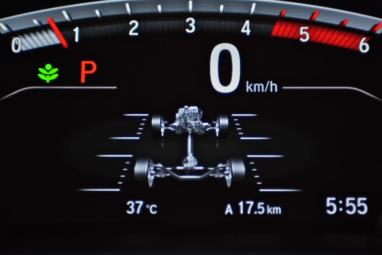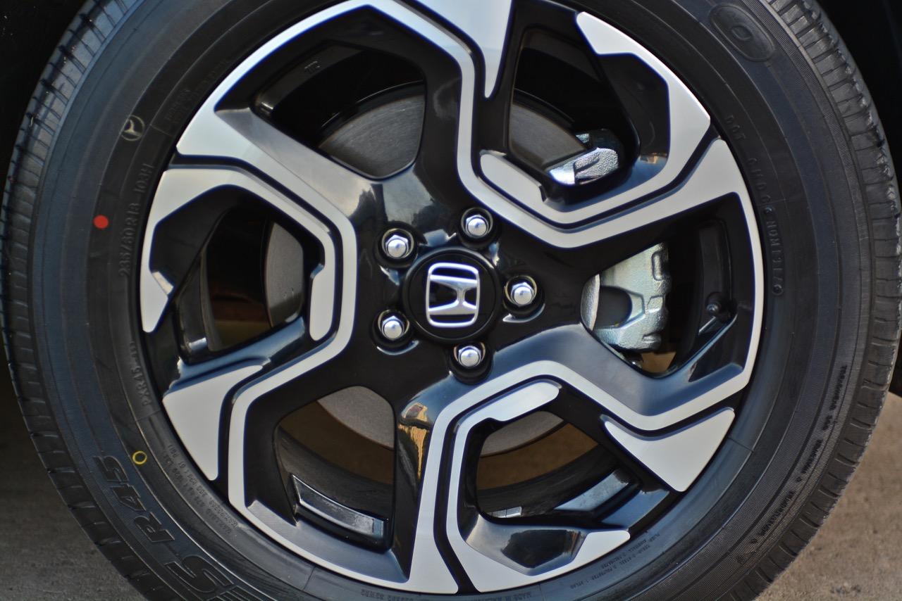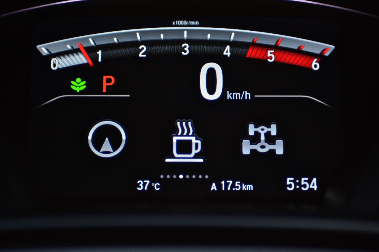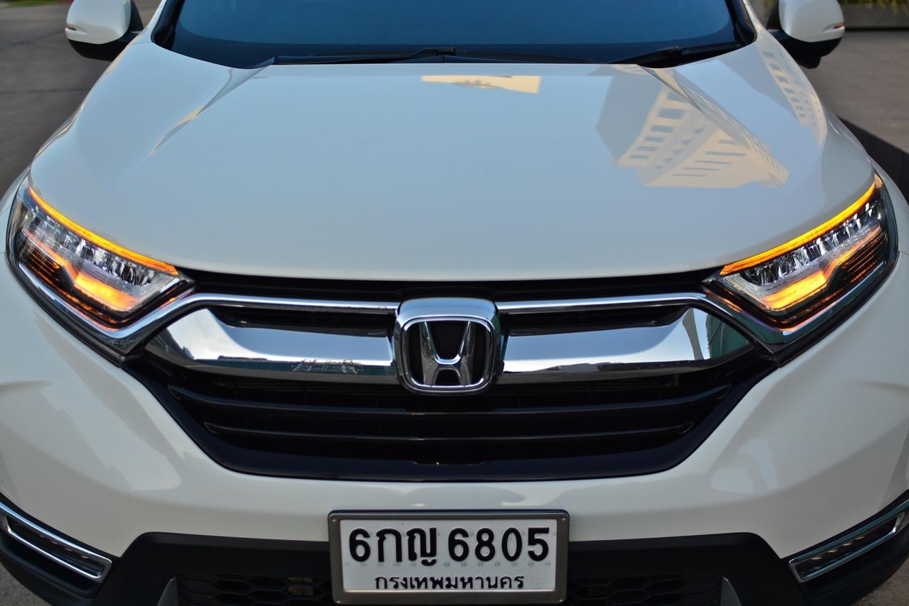 New CR-V คันที่ผมนำมาทดสอบรีวิวเป็นรุ่นท็อปสุด DT EL 4WD เครื่องยนต์ดีเซล 1.6 ลิตรเทอร์โบ ราคา 1,699,000 บาท เป็น CR-V เจนเนอเรชั่นที่ 5 ที่มาพร้อมกับความสดใหม่ของเรือนร่างโดยไม่มีชิ้นส่วนใดที่เกี่ยวข้องกับ CR-V เจน 4 แนวคิดในการพัฒนารถยนต์อเนกประสงค์แบบครอสโอเวอร์ไซส์กลางเริ่มจากความสะดวกสบายในการขับใช้งาน ความง่ายในการควบคุมและความสนุกหลังพวงมาลัย New CR-V มีมิติตัวถังที่ใกล้เคียงกับรุ่นที่แล้วแต่มีรูปแบบที่ทันสมัยขึ้น สัดส่วนความยาว 4,571 มิลลิเมตร กว้าง 1,855 มิลลิเมตร สูง 1,667 มิลลิเมตร ฐานล้อวัดจากดุมหน้าไปถึงดุมหลัง 2,662 มิลลิเมตร ระยะห่างล้อคู่หน้า 1,603 มิลลิเมตร ระยะห่างล้อคู่หลัง 1,613 มิลลิเมตร ความสูงจากพื้นถึงใต้ท้องน้อยกว่า PPV-SUV โดยมีระยะห่างจากพื้นถนนถึงใต้ท้องรถอยู่ที่ 208 มิลลิเมตร พอที่จะลุยน้ำท่วมสูง 30 เซนติเมตร แม้จะใช้เครื่องดีเซลตัวเล็กแค่ 1.6 ลิตร แต่ CR-V ใหม่รุ่นท็อปสุดนั้นยัดอุปกรณ์อำนวยความสะดวกเอาไว้บานเบอะ ทำให้น้ำหนักตัวพุ่งถึง 1,742 กิโลกรัม หนักเอาเรื่องอยู่เหมือนกันเมื่อเทียบกับรุ่นเบนซิน 2.4 ลิตรที่มีน้ำหนัก 1,613 กิโลกรัม