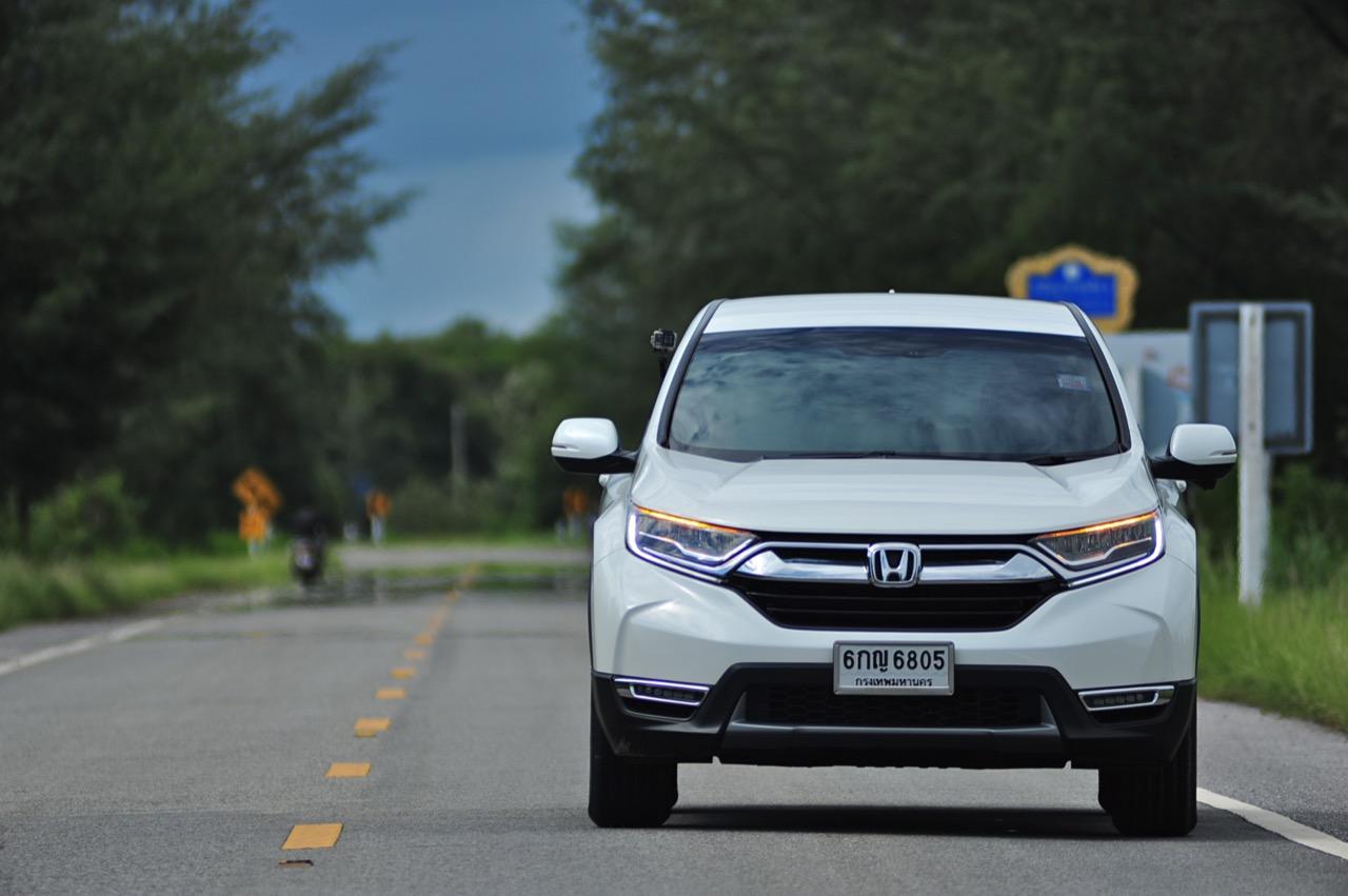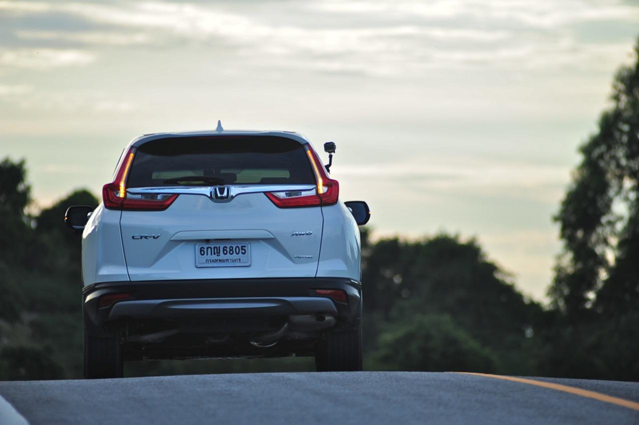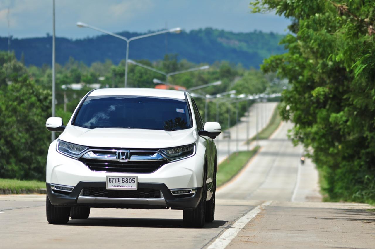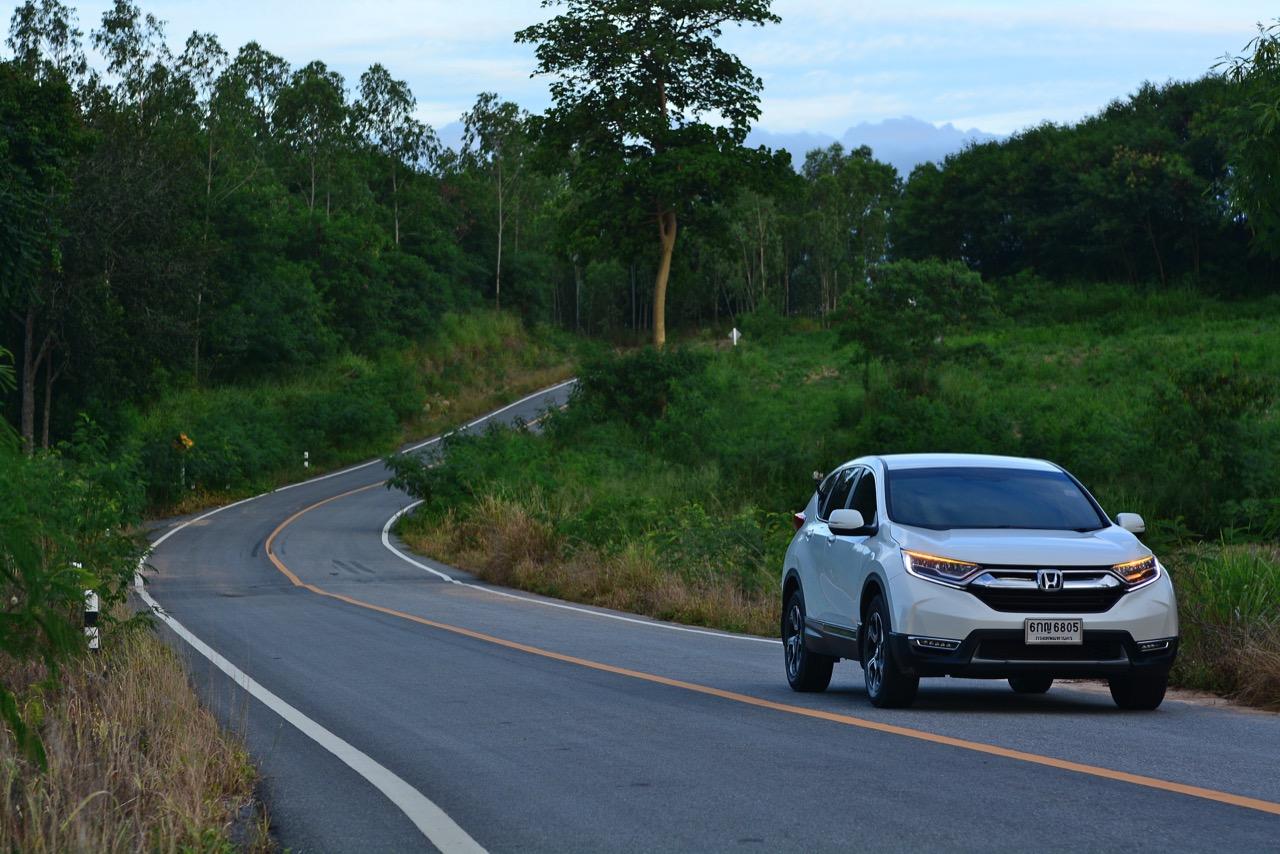 ตัวถังแบบโมโนค็อกทำให้การทรงตัวดีกว่าตัวถังแบบแชสซีออนเฟรมใน PPV-SUV ประกอบในไทย แม้ราคาจะนำโด่งแซงหน้าและแพงกว่ารถคู่แข่งบางยี่ห้อหลายแสนแต่ CR-V ไม่ทำให้รู้สึกผิดหวังเมื่อขับออกทางไกล อาการโคลงตัวหรือย้วยปรากฏออกมาน้อยมาก ขับแบบปกติไหลไปเรื่อยๆ ในย่านความเร็วเดินทางไม่เกิน 120 กิโลเมตรต่อชั่วโมงบนถนนมอเตอร์เวย์มุ่งหน้าบ้านบึงมีบางจังหวะที่ต้องใช้ความเร็วเพื่อแซงรถช้า อัตราสิ้นเปลืองแจ้งออกมาที่หน้าจอ 12.4 กิโลเมตรต่อลิตร ไม่ประหยัดแต่ก็ไม่ได้กินจุอยู่ในค่าเฉลี่ยกลางๆ พอรับได้