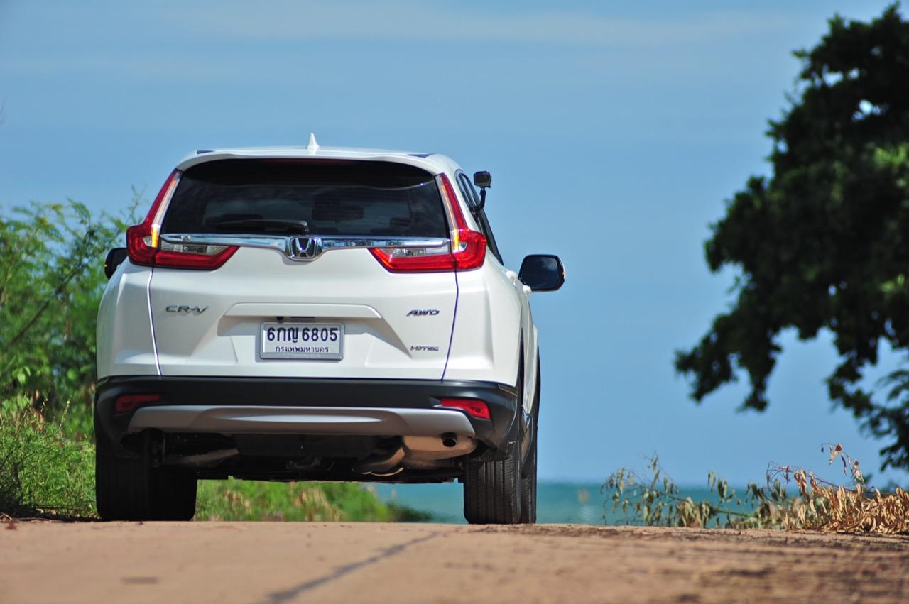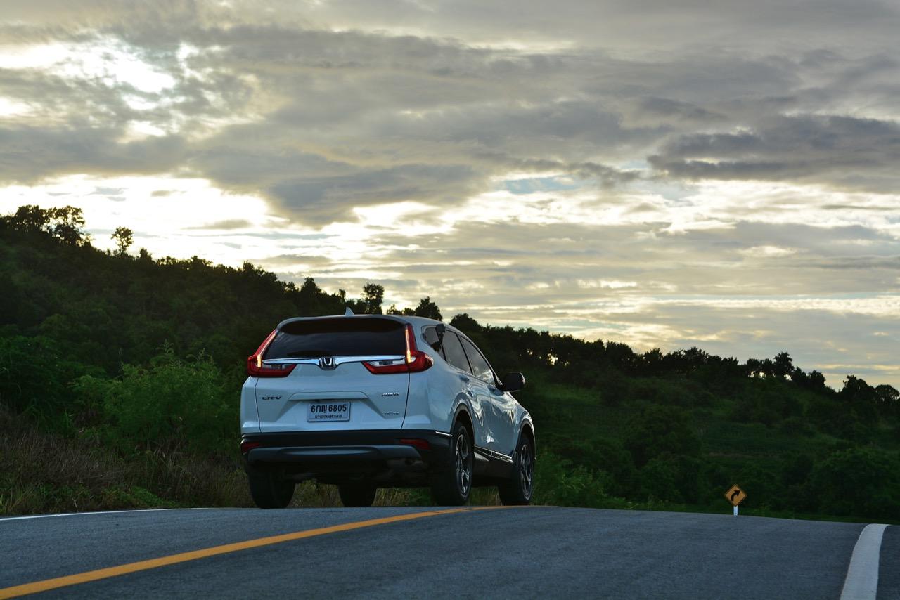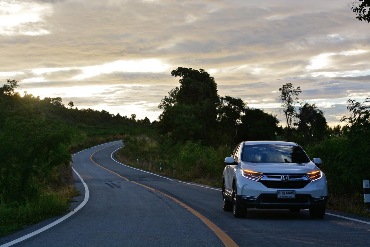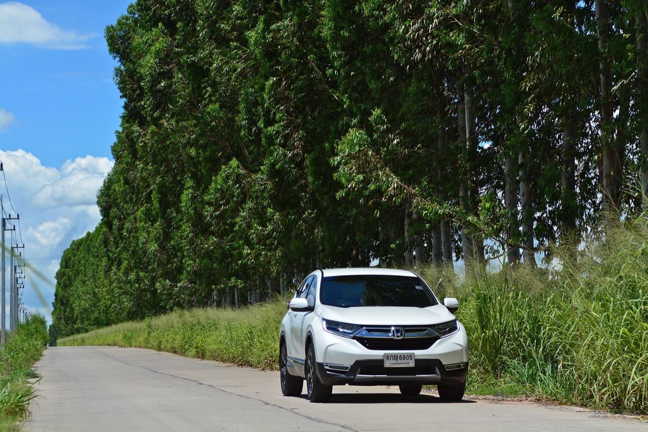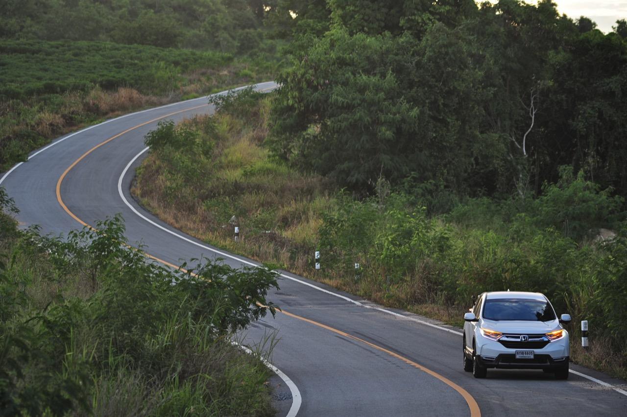 ตัวถังแบบโมโนค็อกทำให้การทรงตัวดีกว่าตัวถังแบบแชสซีออนเฟรมใน PPV-SUV ประกอบในไทย แม้ราคาจะนำโด่งแซงหน้าและแพงกว่ารถคู่แข่งบางยี่ห้อหลายแสนแต่ CR-V ไม่ทำให้รู้สึกผิดหวังเมื่อขับออกทางไกล อาการโคลงตัวหรือย้วยปรากฏออกมาน้อยมาก ขับแบบปกติไหลไปเรื่อยๆ ในย่านความเร็วเดินทางไม่เกิน 120 กิโลเมตรต่อชั่วโมงบนถนนมอเตอร์เวย์มุ่งหน้าบ้านบึงมีบางจังหวะที่ต้องใช้ความเร็วเพื่อแซงรถช้า อัตราสิ้นเปลืองแจ้งออกมาที่หน้าจอ 12.4 กิโลเมตรต่อลิตร ไม่ประหยัดแต่ก็ไม่ได้กินจุอยู่ในค่าเฉลี่ยกลางๆ พอรับได้