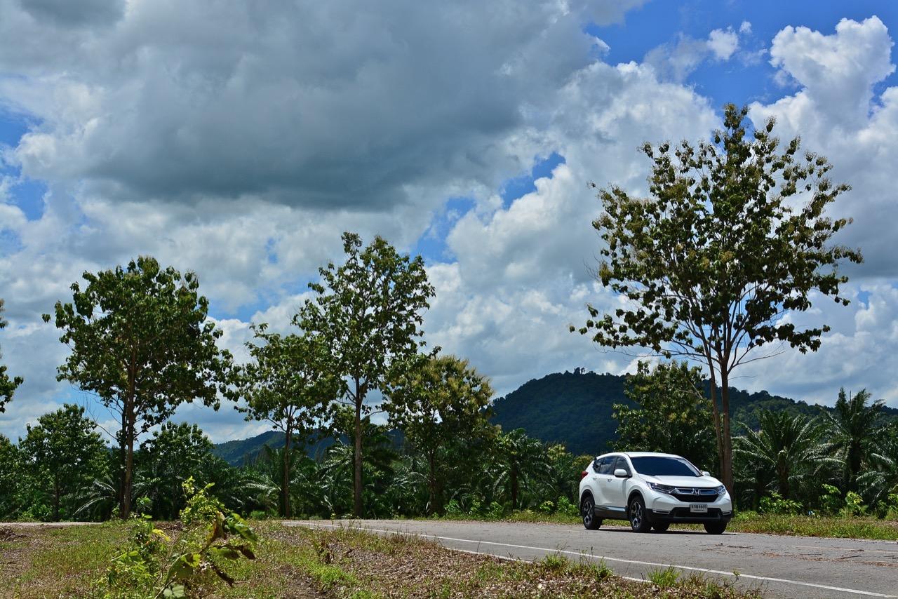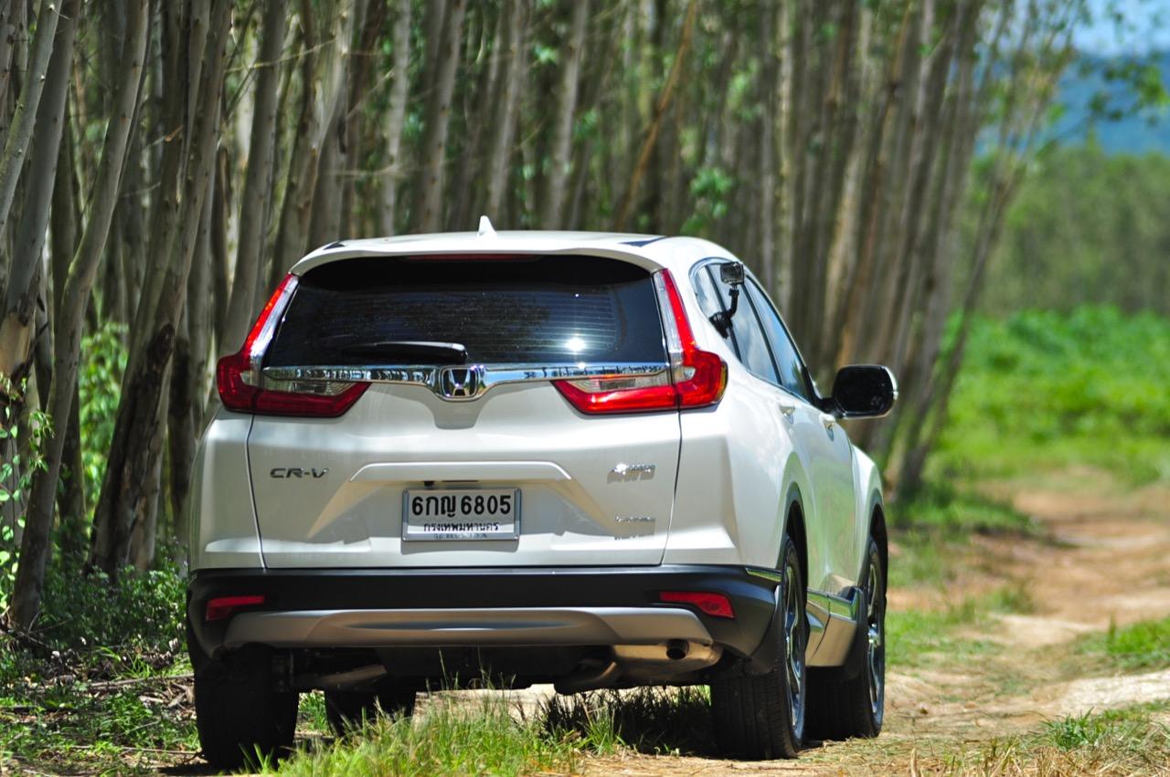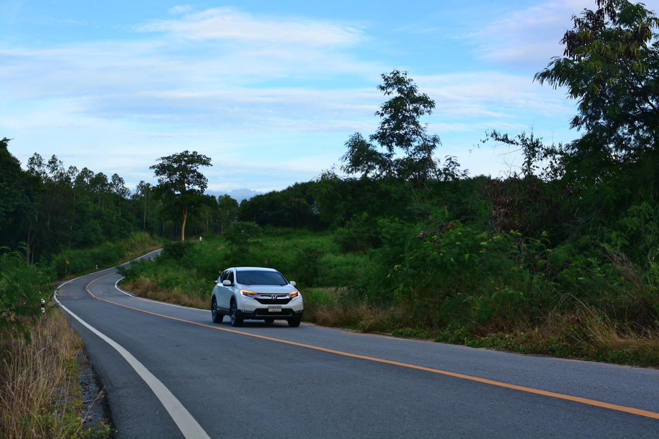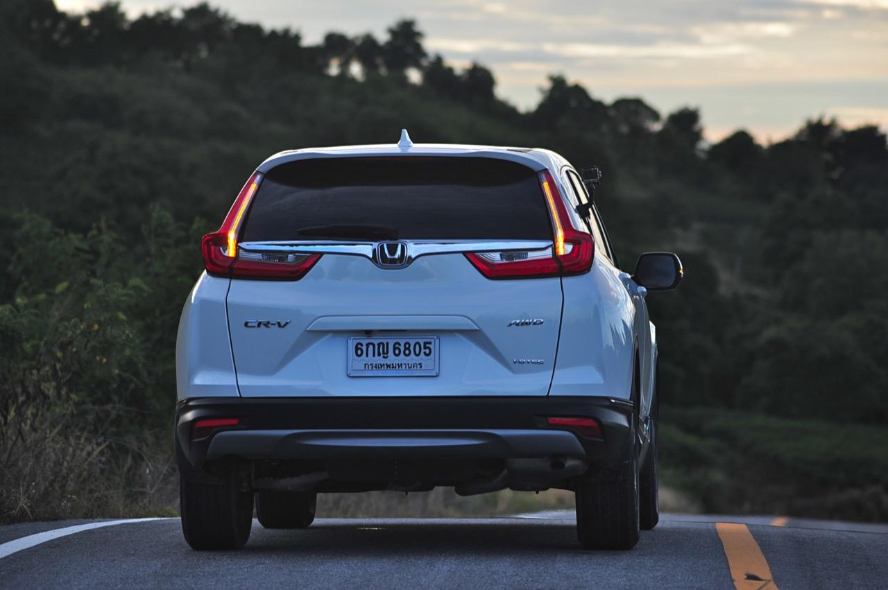 ตัวถังแบบโมโนค็อกทำให้การทรงตัวดีกว่าตัวถังแบบแชสซีออนเฟรมใน PPV-SUV ประกอบในไทย แม้ราคาจะนำโด่งแซงหน้าและแพงกว่ารถคู่แข่งบางยี่ห้อหลายแสนแต่ CR-V ไม่ทำให้รู้สึกผิดหวังเมื่อขับออกทางไกล อาการโคลงตัวหรือย้วยปรากฏออกมาน้อยมาก ขับแบบปกติไหลไปเรื่อยๆ ในย่านความเร็วเดินทางไม่เกิน 120 กิโลเมตรต่อชั่วโมงบนถนนมอเตอร์เวย์มุ่งหน้าบ้านบึงมีบางจังหวะที่ต้องใช้ความเร็วเพื่อแซงรถช้า อัตราสิ้นเปลืองแจ้งออกมาที่หน้าจอ 12.4 กิโลเมตรต่อลิตร ไม่ประหยัดแต่ก็ไม่ได้กินจุอยู่ในค่าเฉลี่ยกลางๆ พอรับได้