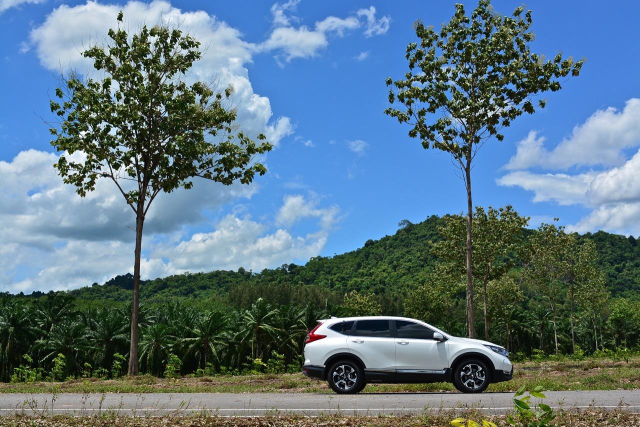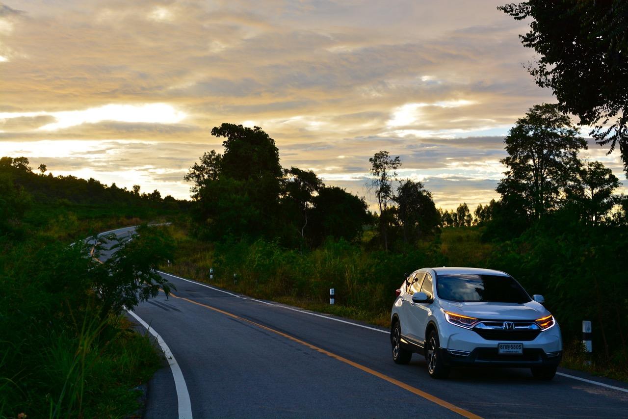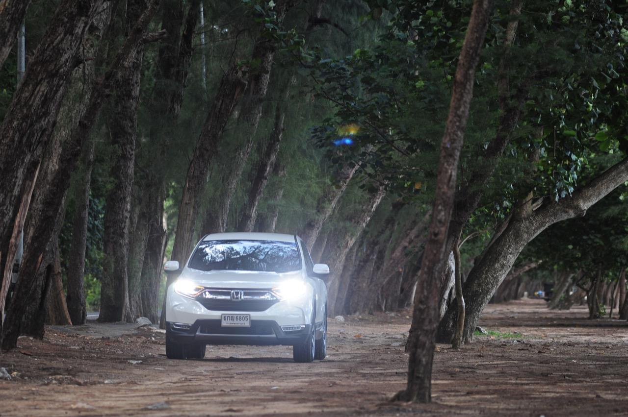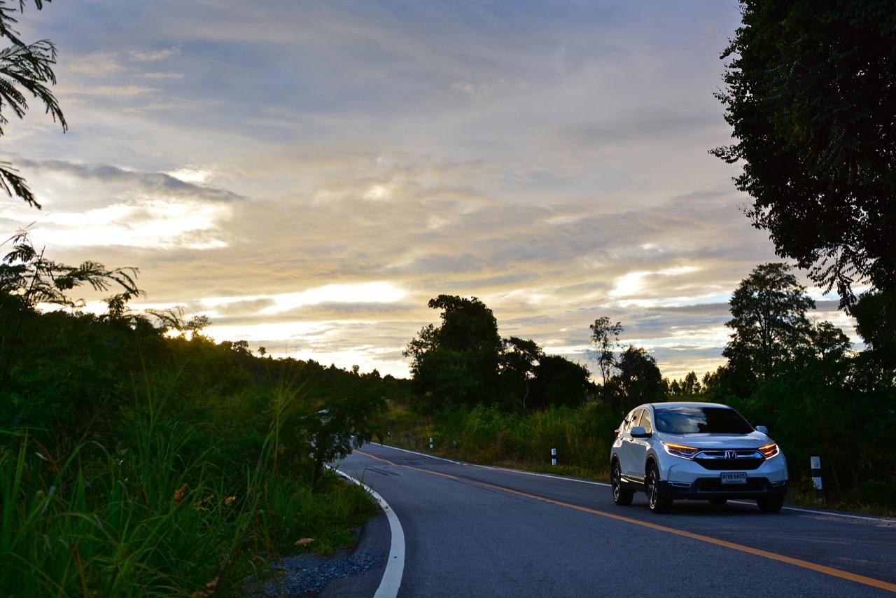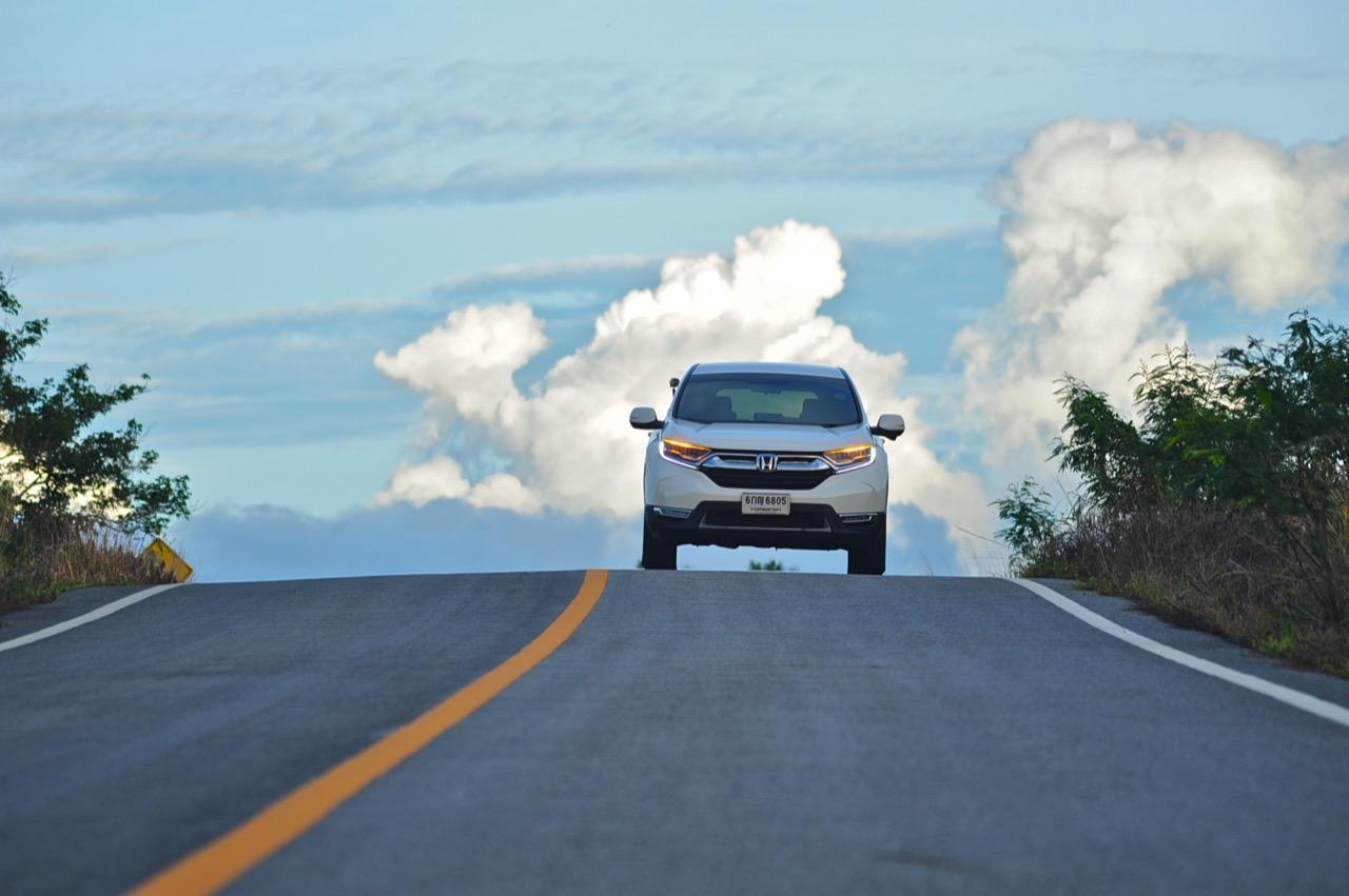 ตัวถังแบบโมโนค็อกทำให้การทรงตัวดีกว่าตัวถังแบบแชสซีออนเฟรมใน PPV-SUV ประกอบในไทย แม้ราคาจะนำโด่งแซงหน้าและแพงกว่ารถคู่แข่งบางยี่ห้อหลายแสนแต่ CR-V ไม่ทำให้รู้สึกผิดหวังเมื่อขับออกทางไกล อาการโคลงตัวหรือย้วยปรากฏออกมาน้อยมาก ขับแบบปกติไหลไปเรื่อยๆ ในย่านความเร็วเดินทางไม่เกิน 120 กิโลเมตรต่อชั่วโมงบนถนนมอเตอร์เวย์มุ่งหน้าบ้านบึงมีบางจังหวะที่ต้องใช้ความเร็วเพื่อแซงรถช้า อัตราสิ้นเปลืองแจ้งออกมาที่หน้าจอ 12.4 กิโลเมตรต่อลิตร ไม่ประหยัดแต่ก็ไม่ได้กินจุอยู่ในค่าเฉลี่ยกลางๆ พอรับได้