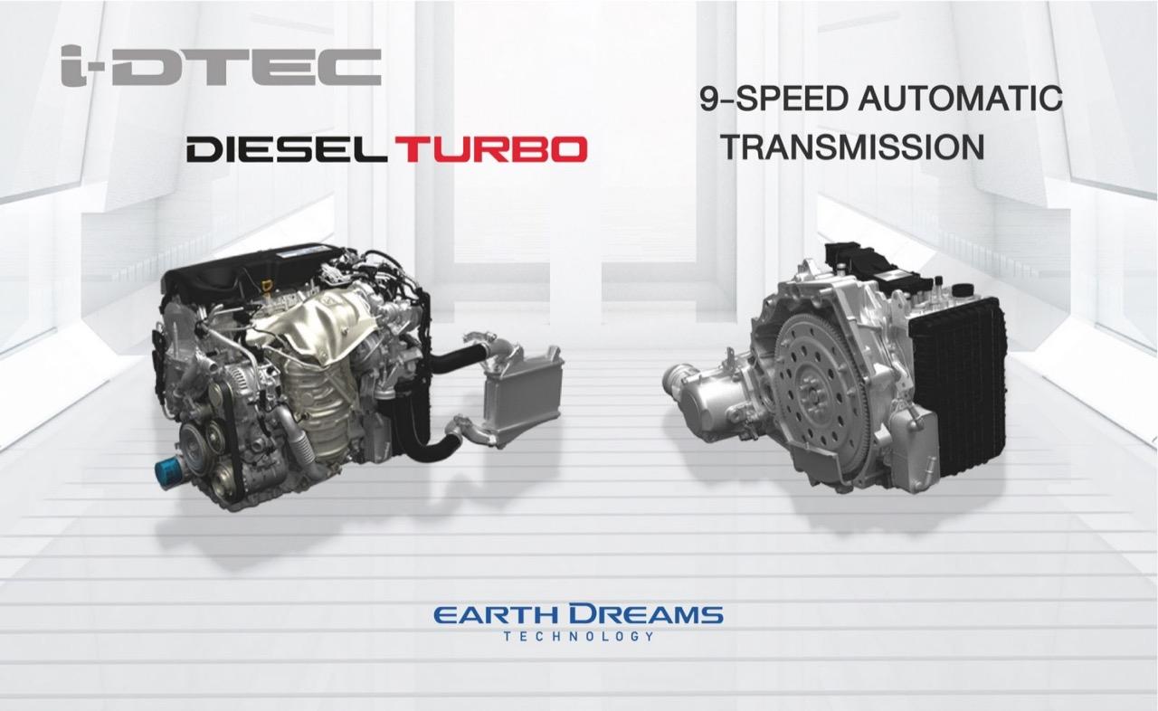 Honda New CR-V DT EL 4WD วางเครื่องยนต์ดีเซลเทอร์โบแบบแถวเรียง 4 สูบ 16 วาล์ว (4 วาล์วต่อสูบ) ดับเบิ้ลโอเวอร์เฮตแคมชาร์ป เป็นเครื่องยนต์ Earth Dreams Technology รุ่นใหม่ที่เน้นความสะอาดและความประหยัดโดยมีอัตราส่วนกำลังอัดสูงถึง 16.0:1 เครื่องยนต์ 1.6 ลิตร มีปริมาตรความจุ 1,597 ซีซี ใช้ระบบจ่ายเชื้อเพลิงแบบยิงตรงหรือคอมมอนเรล ไดเรคอินเจคชั่น ระบบอัดอากาศเทอร์โบแบบ 2 Stage Turbo ใช้เทอร์โบร้อยเรียงกันเป็นลูกปัดประกบด้านบนและล่างคอยบูสอากาศให้กับระบบไอดี เครื่องดีเซลตัวเล็กของ Honda มีความกว้างกระบอกสูบ 76.0 มิลลิเมตร ช่วงชักยาว 88.0 มิลลิเมตร ให้กำลังสูงสุด 118 กิโลวัตต์ หรือ 160 แรงม้าที่ 4,000 รอบต่อนาที แรงบิดสูงสุดจัดมาให้ถึง 350 นิวตันเมตร หรือ 35.7 กิโลกรัมเมตร ที่ 2,000 รอบต่อนาที ไม่ได้แรงแต่ก็พอตัวจากสมรรถนะในด้านแรงบิดที่ต่อเนื่องครอบคลุมแม้จะรอบไม่จัดเท่าเครื่องเบนซินเทอร์โบ เครื่องดีเซล 1.6 ลิตร ปล่อย Co2 141 กรัมต่อระยะทาง 1 กิโลเมตร ถือว่าสะอาดสะอ้านใช้ได้เลยทีเดียว