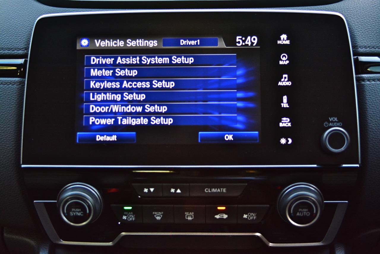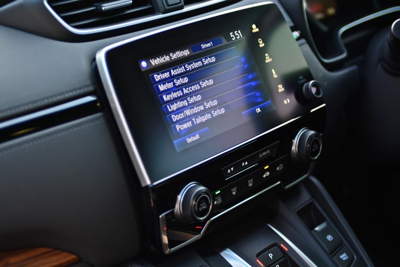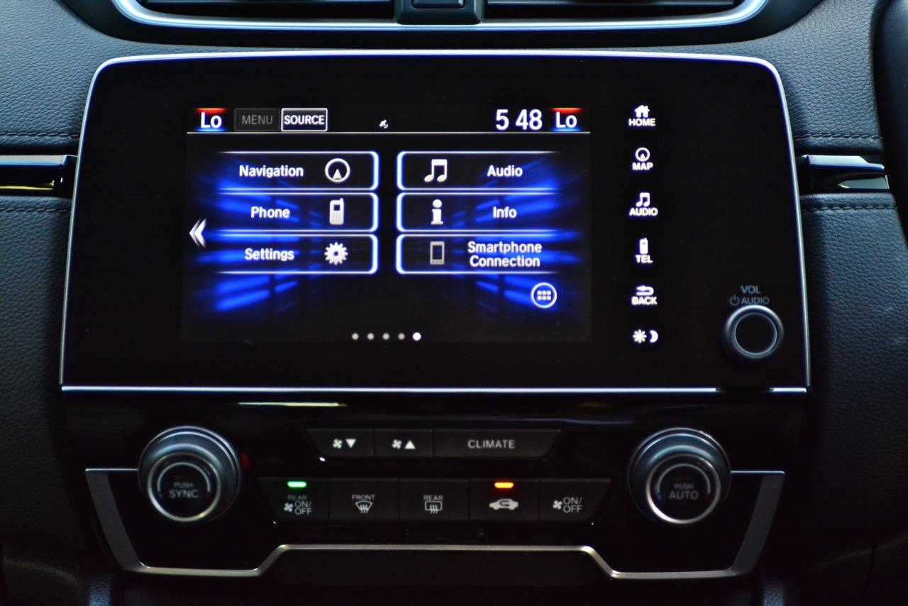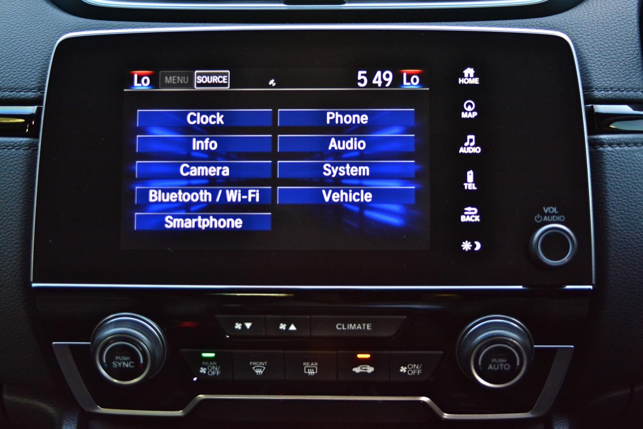 จอแสดงผลกลางขนาด 7 นิ้ว สั่งงานด้วยระบบสัมผัสลงไปที่หน้าจอมีเนวิเกเตอร์ติดมาให้ใช้บอกเส้นทางที่ไม่คุ้นเคย เป็นมอนิเตอร์ของกล้องมองหลัง ระบบเครื่องเสียงหน้าจอสัมผัสรองรับการเชื่อมต่อสารพัดสารพัน เช่น Apple Car Play แต่รองรับเฉพาะสมาร์ทโฟนบางรุ่นเท่านั้น ระบบเชื่อมต่อโทรศัพท์ไร้สายแบบบลูทูธ ลำโพงของระบบเครื่องเสียงจำนวน 8 ตัว ให้เสียงที่ไม่ได้โดดเด่นแต่ก็ไม่ได้แย่แค่พอฟังได้จะเอาดีเอาดังกว่านี้คงต้องไปติดตั้งเพิ่มเติมเอาเอง ด้านหน้าในห้องโดยสารติดลำโพงมาให้ 4 ตัว โดยลำโพง 2 ตัวจะอยู่ที่เสาหน้า (ทวิตเตอร์) อีก 2 ตัวติดตั้งที่ประตูหลัง ทวิตเตอร์อีก 2 ตัว อยู่ที่ประตูหลังเช่นเดียวกัน การใช้งานหน้าจอมอนิเตอร์แบบสัมผัสก็ไม่มีอะไรยุ่งยากเนื่องจาก Honda ยัดโปรแกรมภาษาไทยมาให้ใช้งานเหมือนเดิม