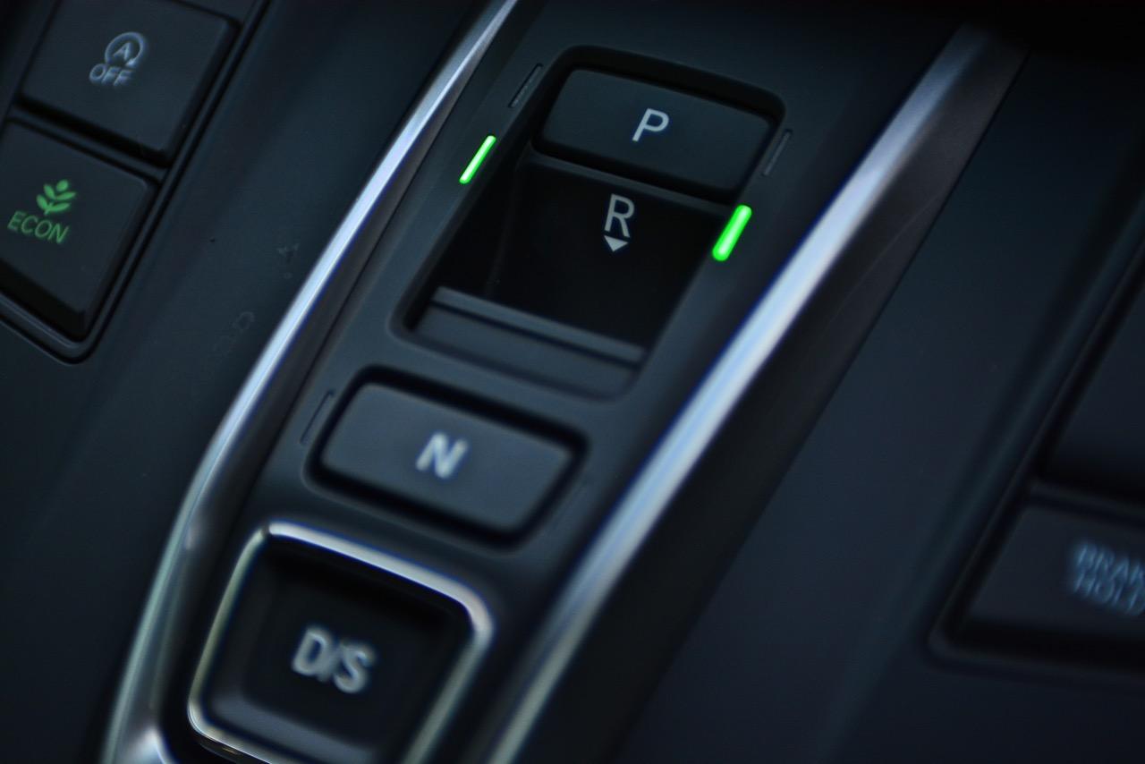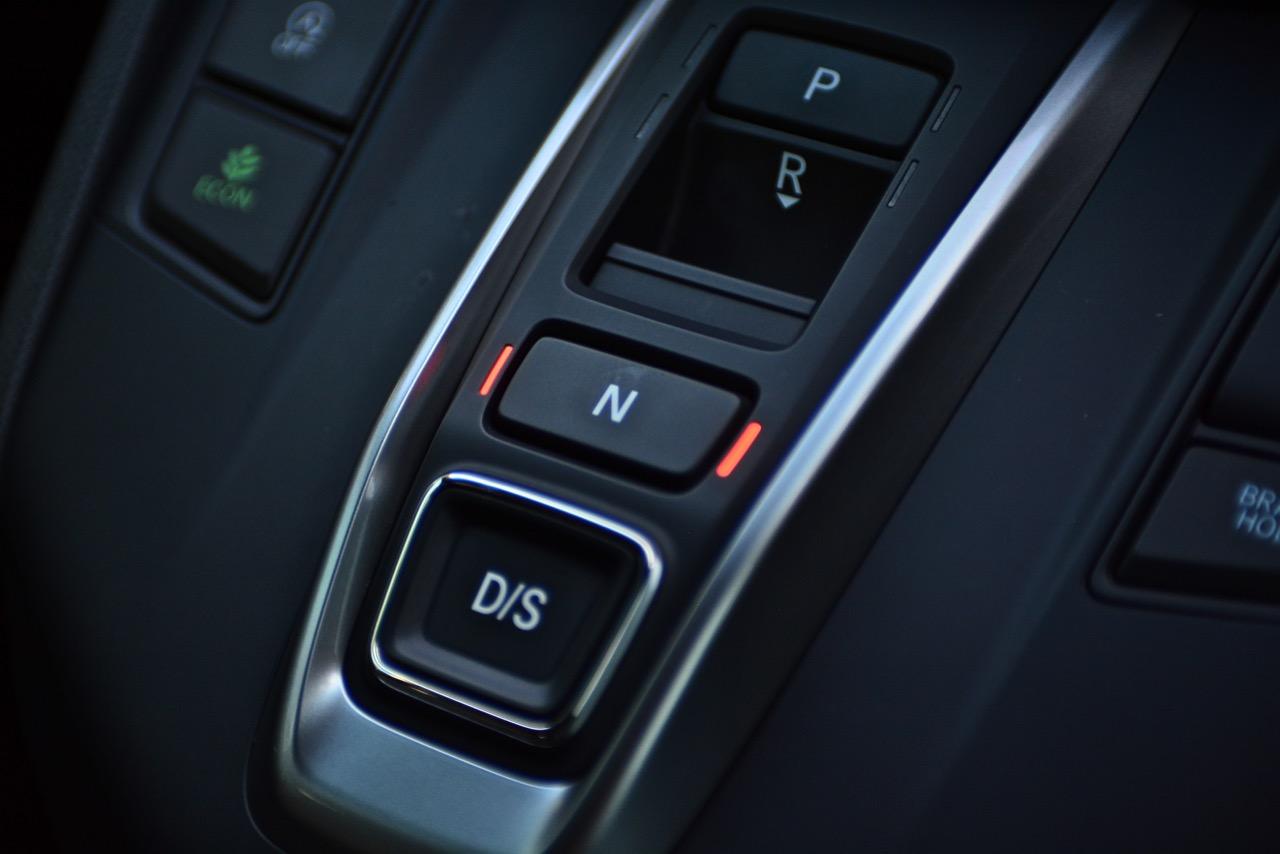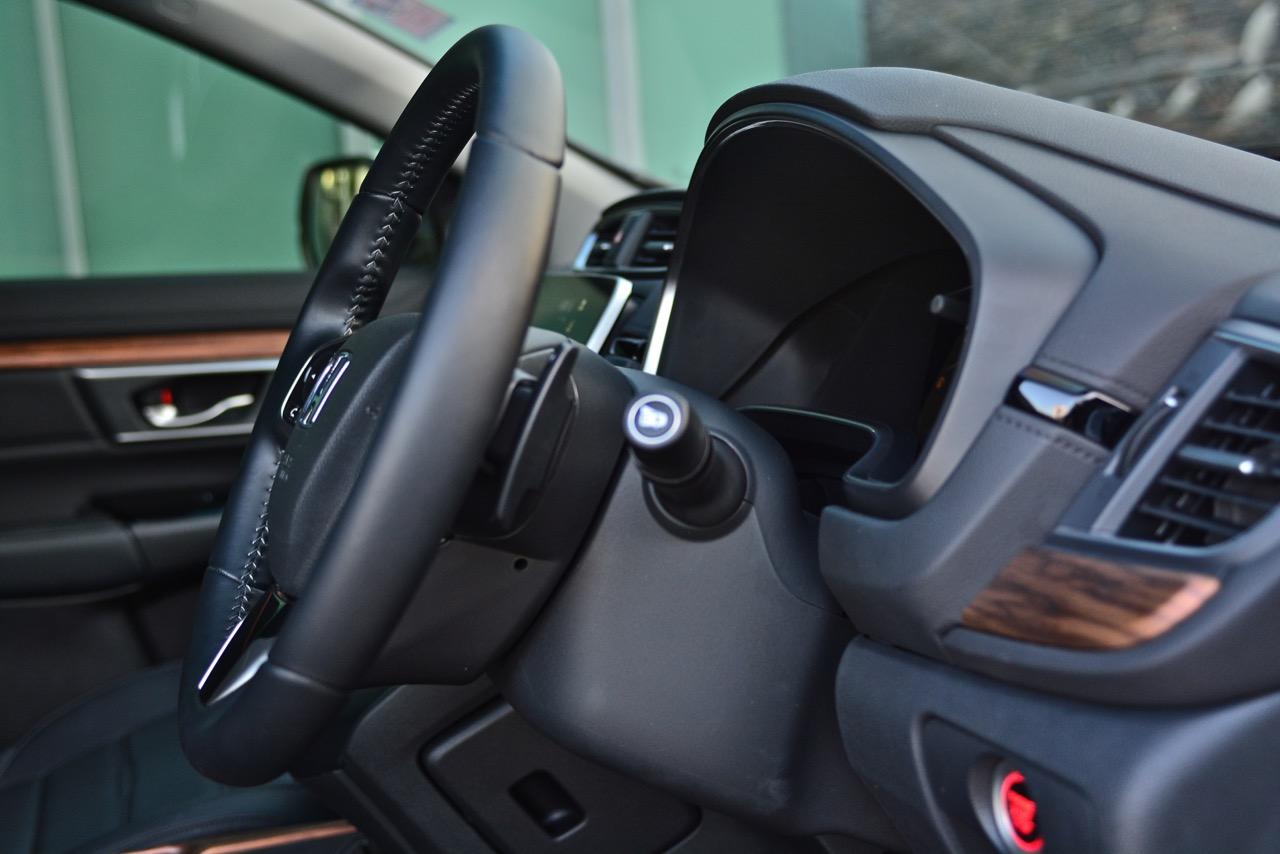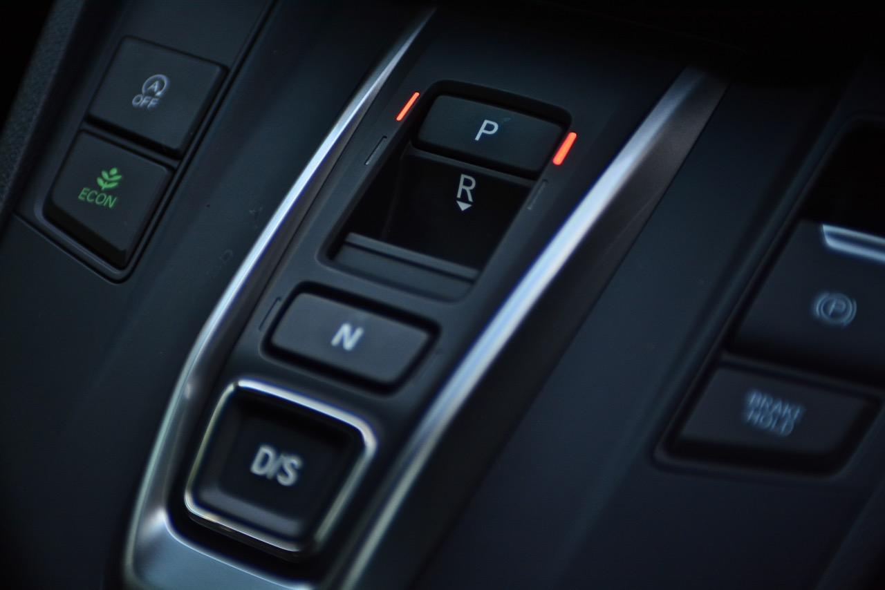 ซุ้มเกียร์ออโต้ 9 สปีดแบบใหม่ไม่มีคันเกียร์มาให้ใช้งานอีกต่อไป คันเกียร์กลายเป็นสวิตช์ P/R/N D/DS ให้เลือกกดใช้งานไม่ว่าจะเดินหน้าหรือถอยหลังก็แค่กดสวิตช์ไปยังตำแหน่งเกียร์ที่ต้องการ ข้างๆ สวิตช์ควบคุมระบบส่งกำลังมีสวิตช์ ECON สวิตช์ในระบบ Auto Start-Stop สวิตช์เบรกมือไฟฟ้าและสวิตช์ Brake Hold หากเป็นคนชอบสับเกียร์เล่นก็ไม่ต้องกังวลเนื่องจาก New CR-V รุ่นสูงสุด DT EL 4WED ติดตั้งแป้นเปลี่ยนเกียร์หลังพวงมาลัย Paddle Shift มาให้ใช้งานเหมือนกัน