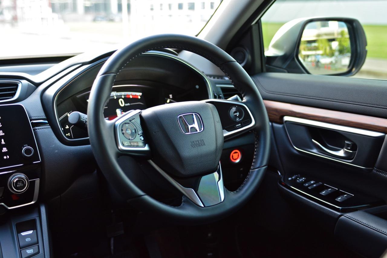 พวงมาลัยในย่านความเร็วต่ำตั้งแต่การเลี้ยวกลับลำเพื่อออกจากที่จอดแคบๆ หรือวิ่งไปบนถนนในแถบวิภาวดีมีความแม่นยำใช้ได้ พวงมาลัยไฟฟ้าดูอัลพีเนี่ยนให้ความรู้สึกของการควบคุมทิศทางดีกว่าพวงมาลัยไฟฟ้าใน CR-V เวอร์ชั่นที่แล้วอย่างเห็นได้ชัด มันให้ระยะของการหมุนกับน้ำหนักที่พอดิบพอดี ในย่านความเร็วต่ำเมื่อขับในเมืองก็มีน้ำหนักที่เบาสบายข้อมือ แต่ไม่ได้เบาหวิวเหมือนพวงมาลัยไฟฟ้าใน Honda City ซึ่งเป็นชุดบังคับเลี้ยวที่เซตน้ำหนักมาเบาเกินไป