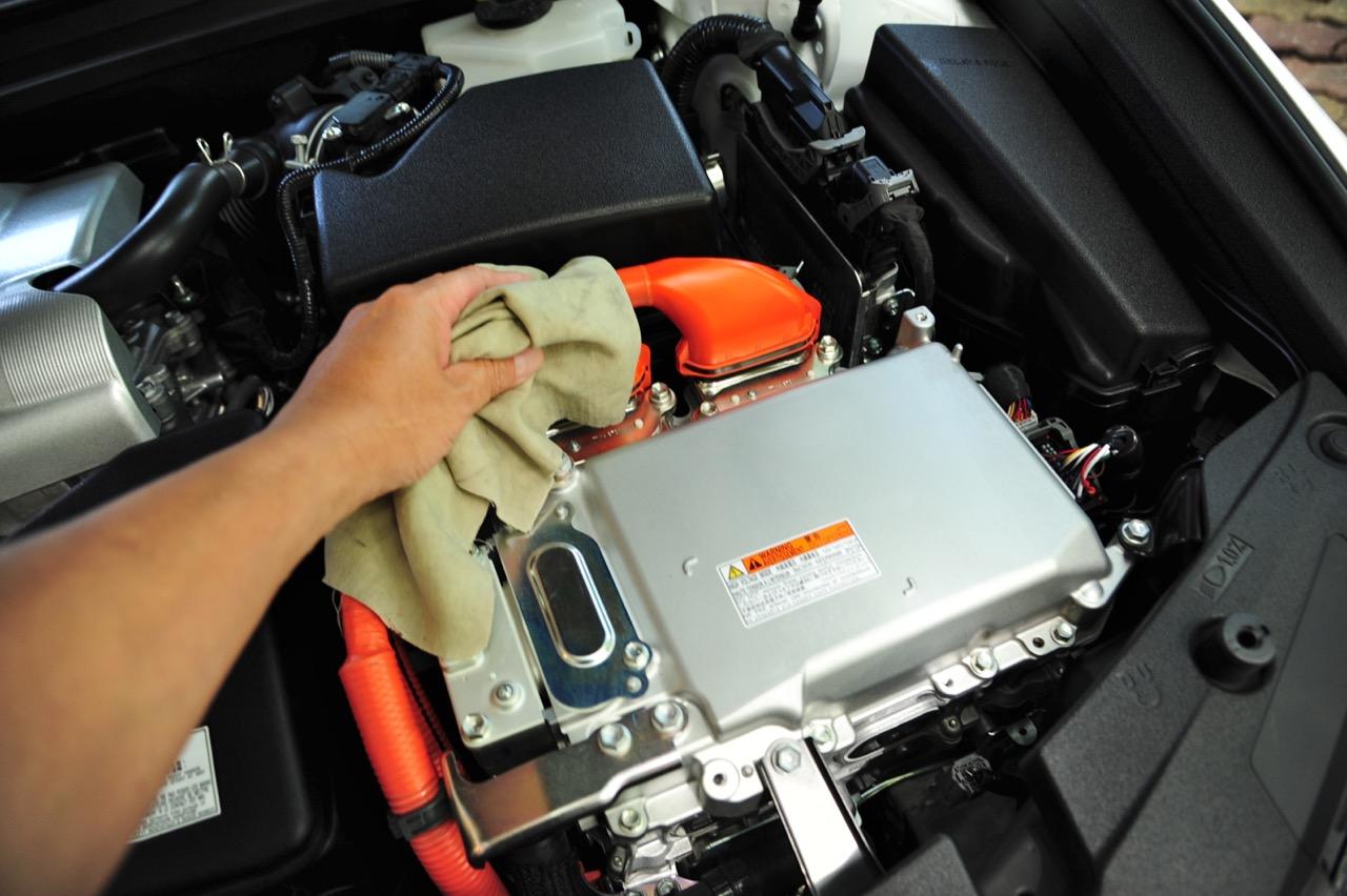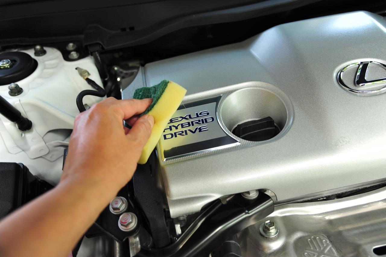 สำหรับรถยนต์ Hybrid อย่าง Lexus ES Hybrid หรือ Toyota Camry Hybrid / Honda Accord Hybrid ต้องระวังเป็นอย่างมาก แนะนำให้เช็ดแห้งสถานเดียว ห้ามเอาสายยางไปฉีดราดน้ำใส่ไปตรงๆ เครื่องยนต์ อุปกรณ์พวกตัวแปรงกระแสไฟรวมถึงท่อทางเดินต่างๆ ในรถ Hybrid เกี่ยวข้องกับระบบไฟฟ้าและไม่ชอบความชื้นเป็นอย่างยิ่ง เช็ดแห้งอย่างเดียวเท่านั้นสำหรับรถเครื่องยนต์ผสมมอเตอร์ไฟฟ้าแบบ Hybrid หากราดน้ำลงไป ความชื้นมาเยือนกล่องแปลงกระแสไฟฟ้าหรือไหลเข้าไปในสายไฟสีส้มๆ อาจก่อปัญหารุนแรงให้กับรถของคุณได้ ใช้ฟองน้ำหรือผ้าชุบน้ำหมาดค่อยๆ เช็ดจนฝุ่นหมดไป